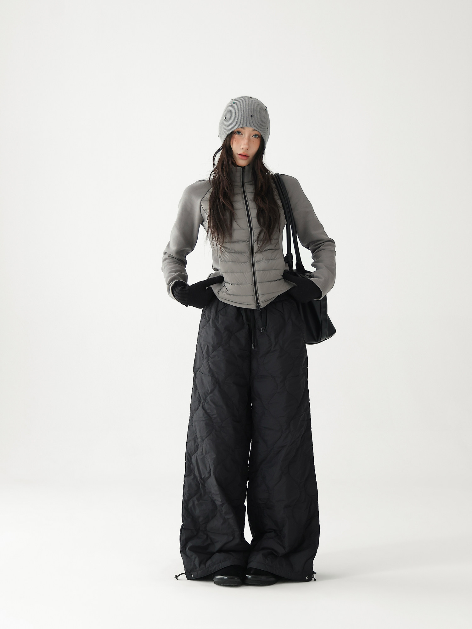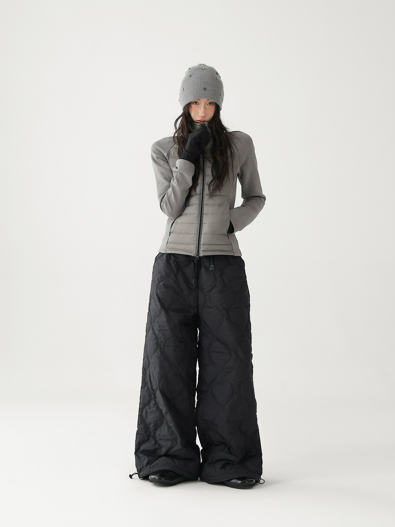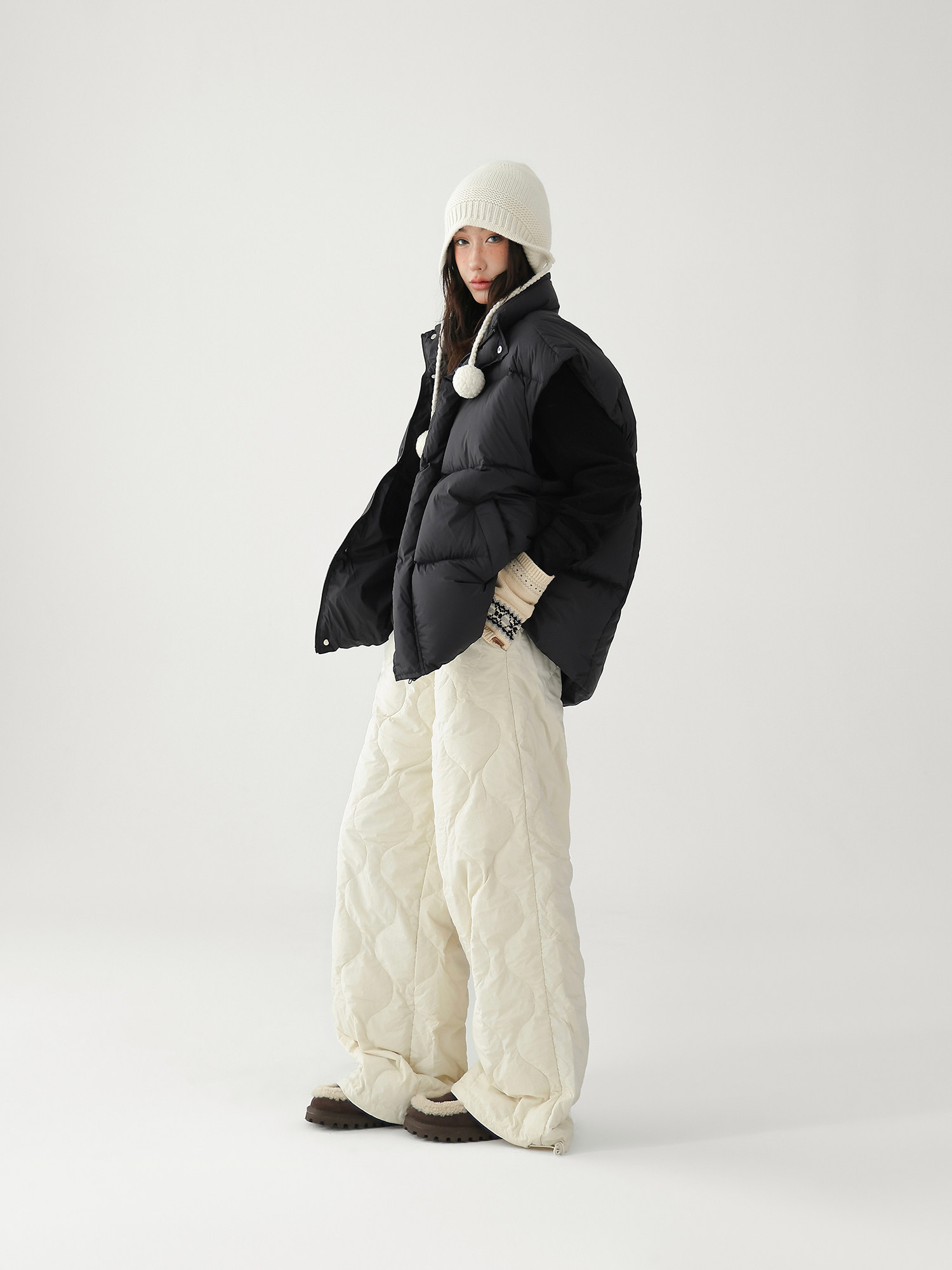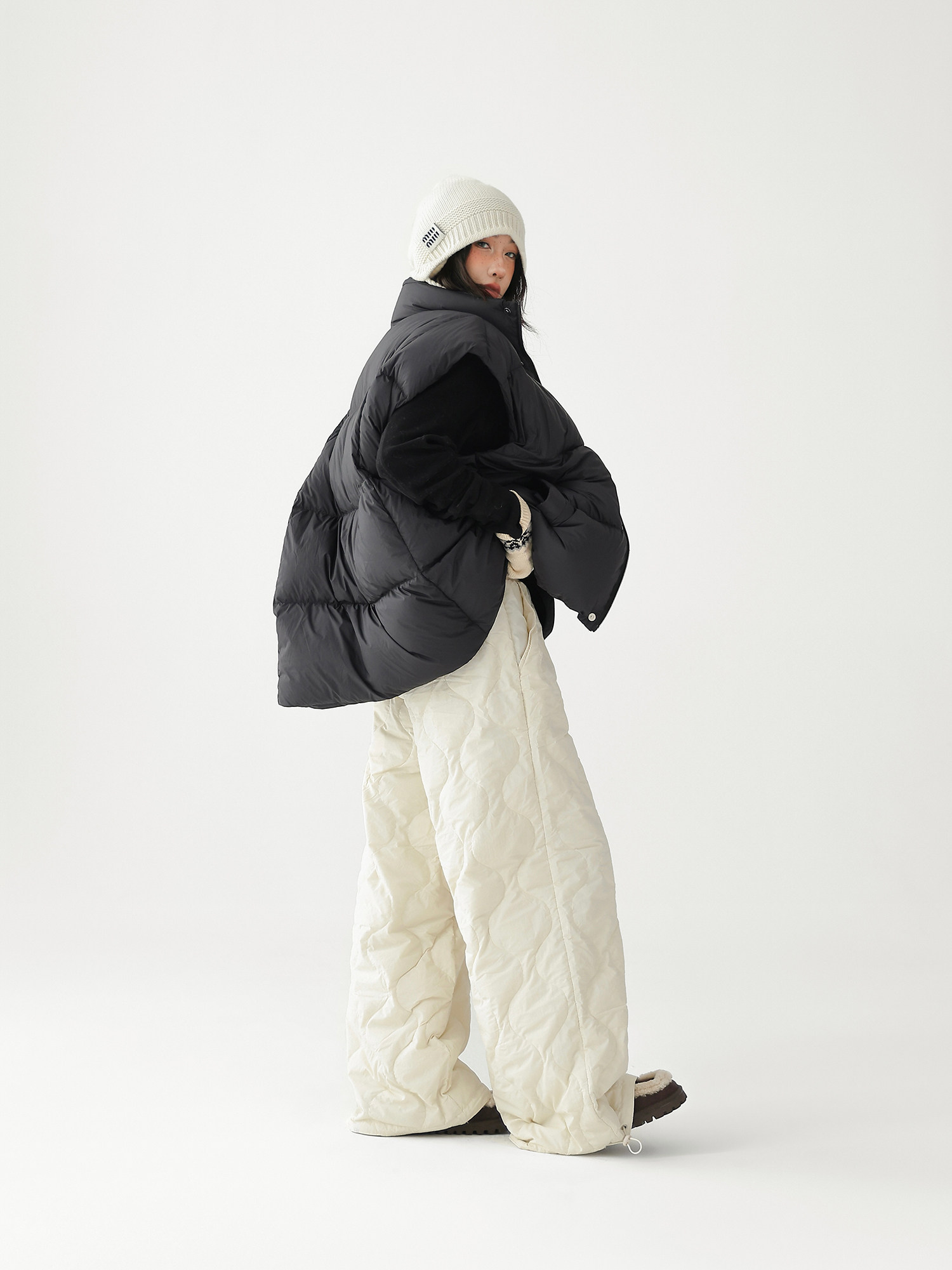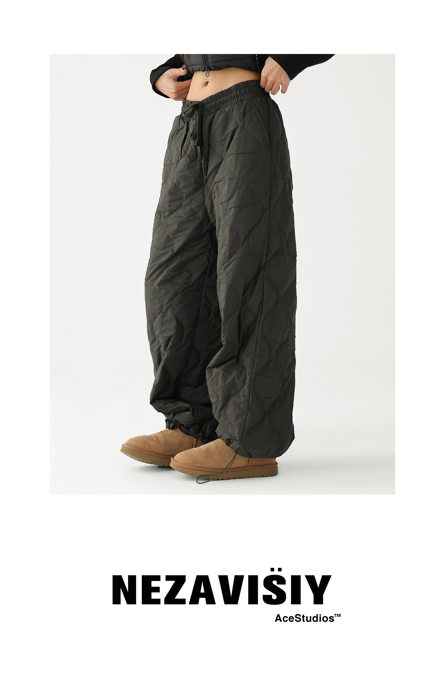 Acestudios Thickened Warm 90% White Duck down Pants Retro Diamond-Shaped Straight Loose Casual Pants Cotton Pants for Women