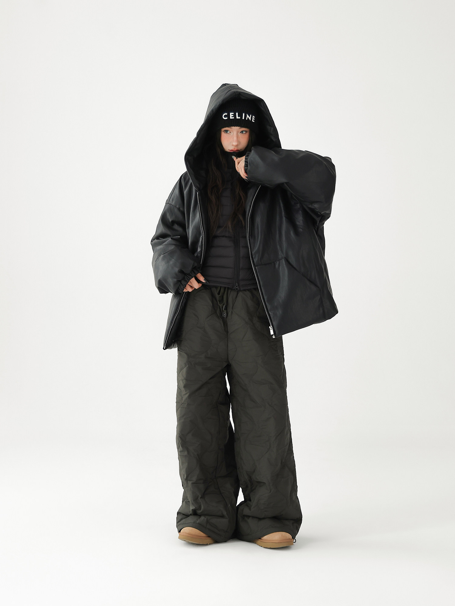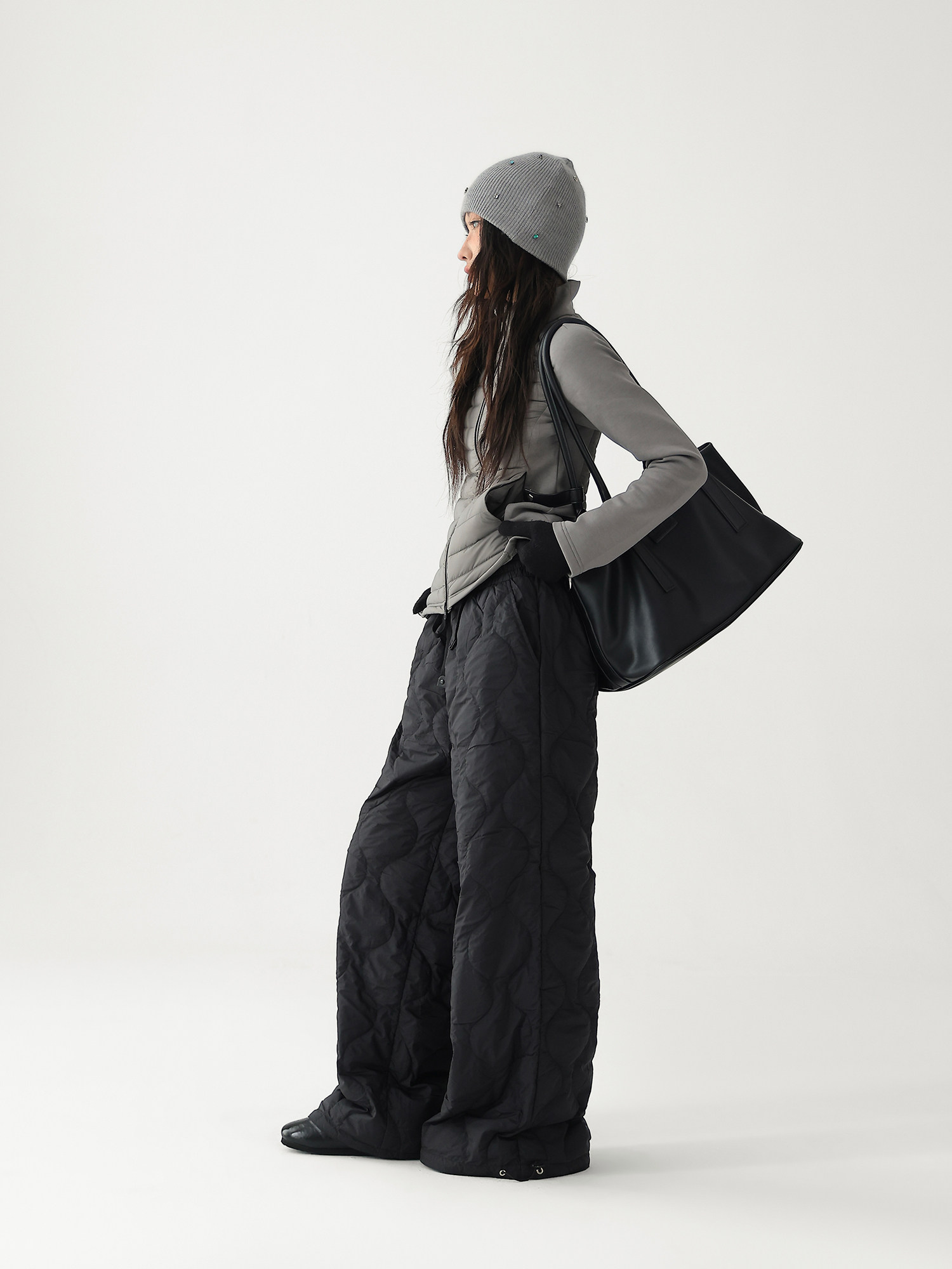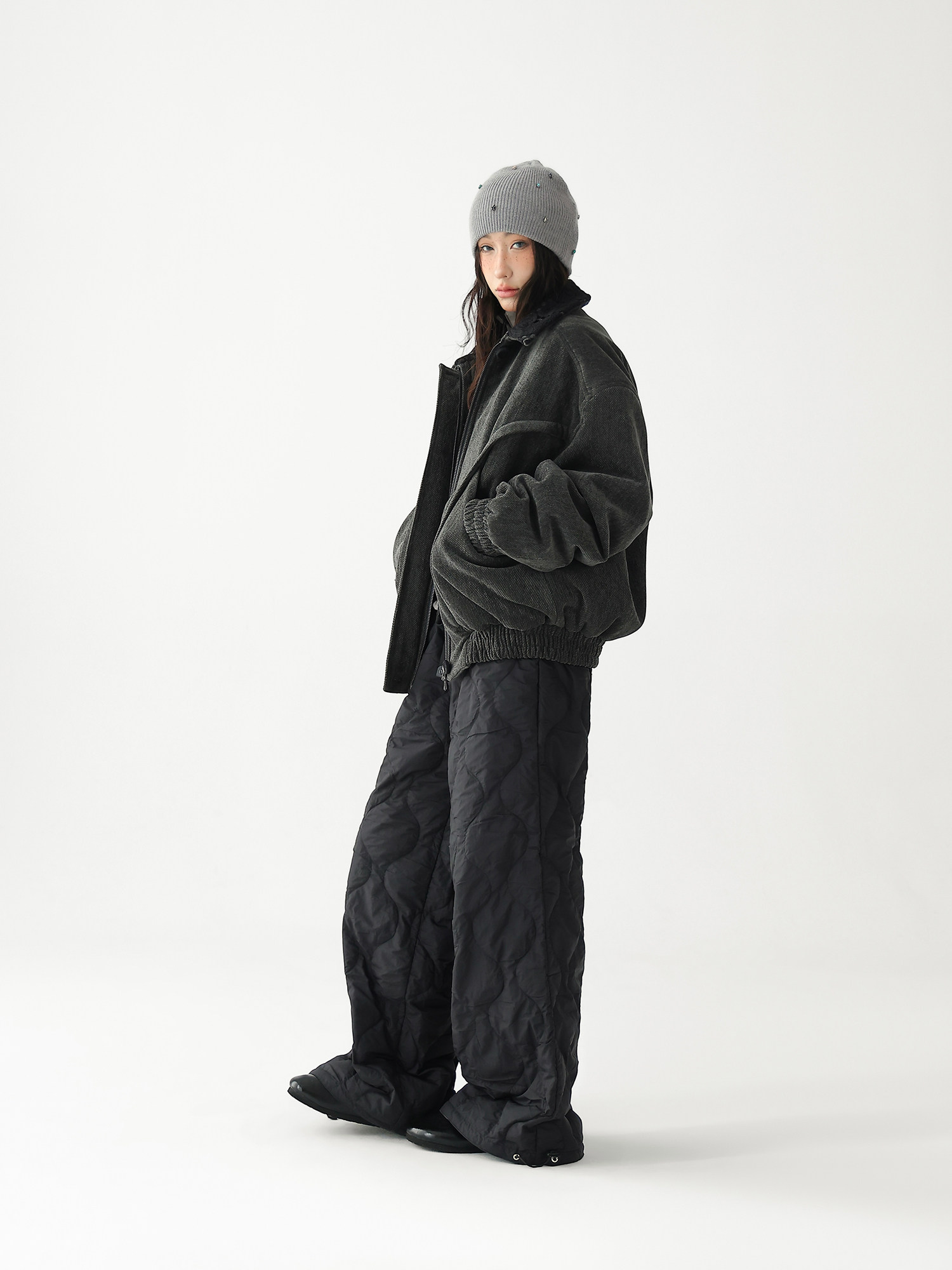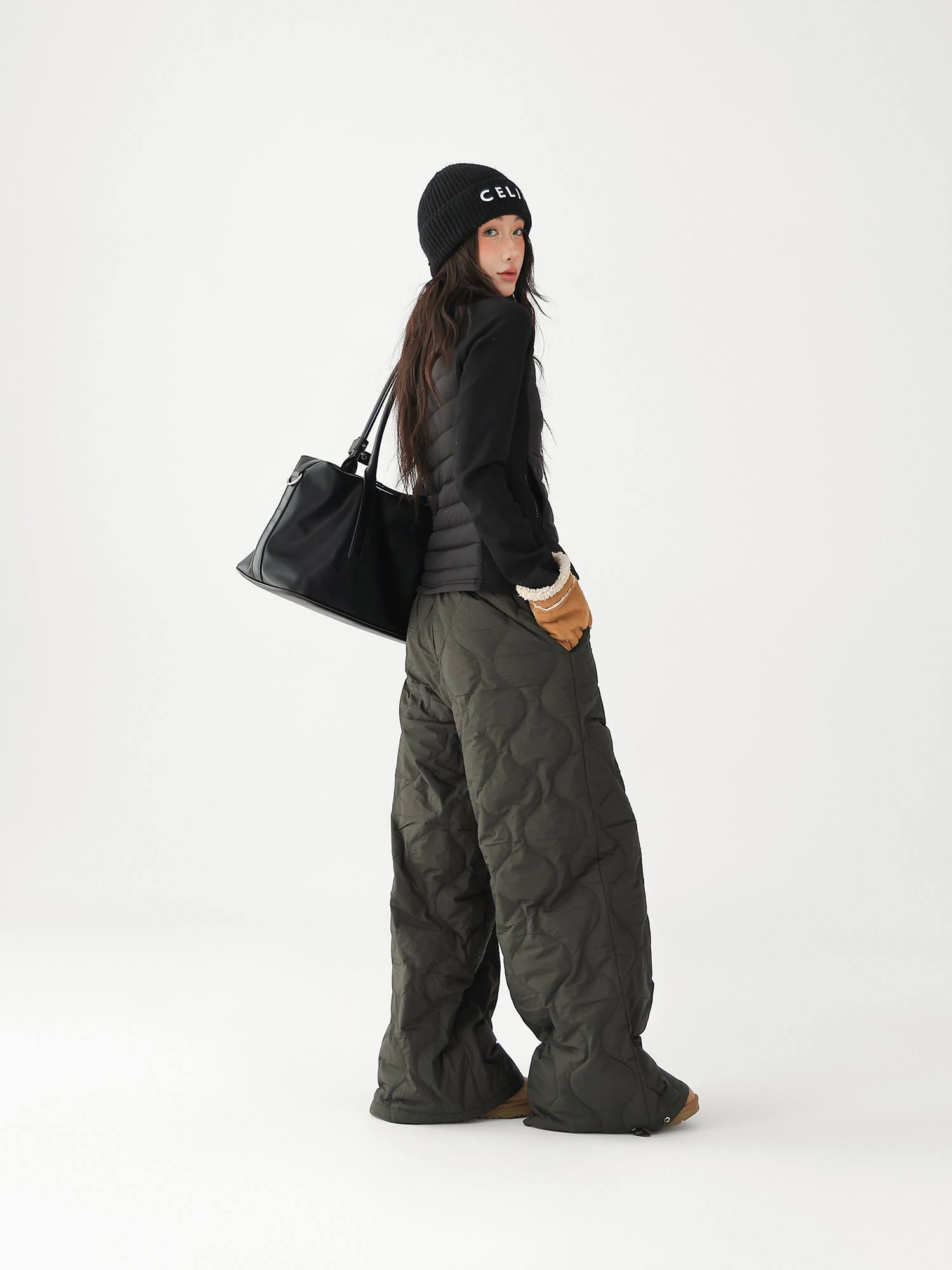 Acestudios Thickened Warm 90% White Duck down Pants Retro Diamond-Shaped Straight Loose Casual Pants Cotton Pants for Women