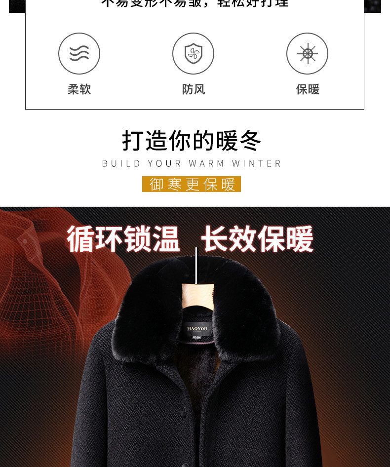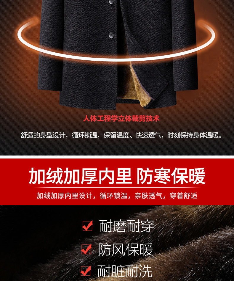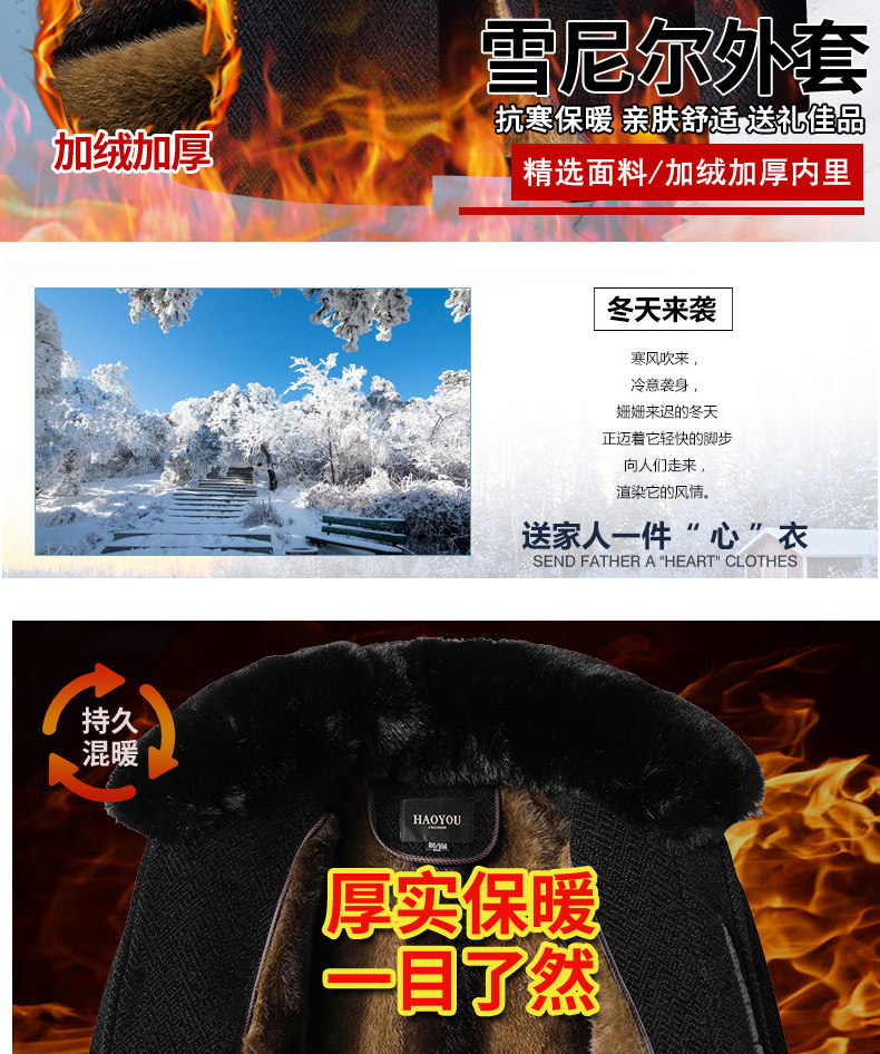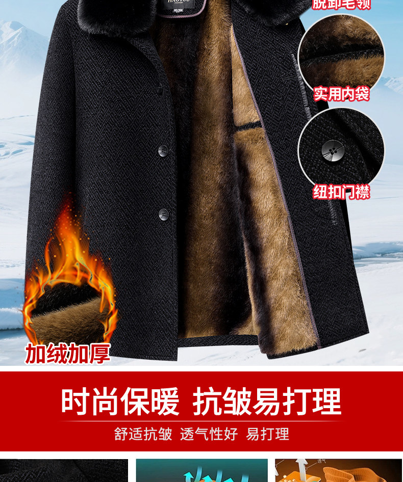 Woodpecker Dad Winter Woolen Coat with Fleece Lining, Thickened and Warm Cotton Jacket for Middle-Aged and Elderly Men, Grandpa Cotton Padded Jacket