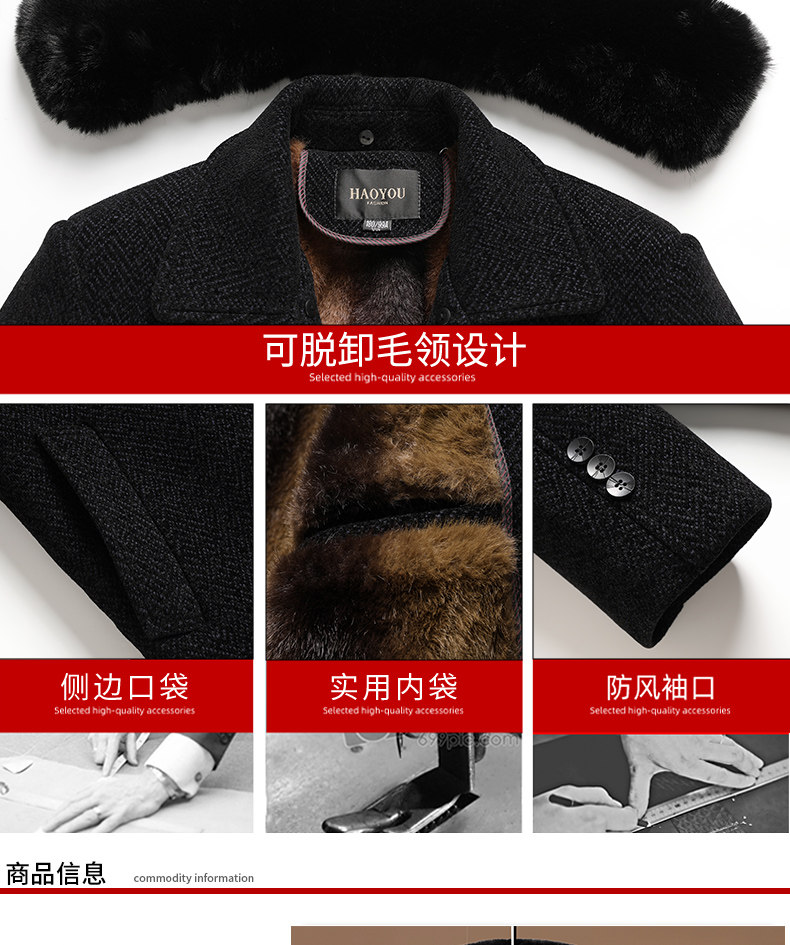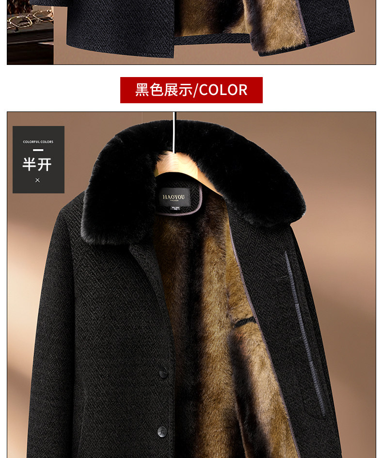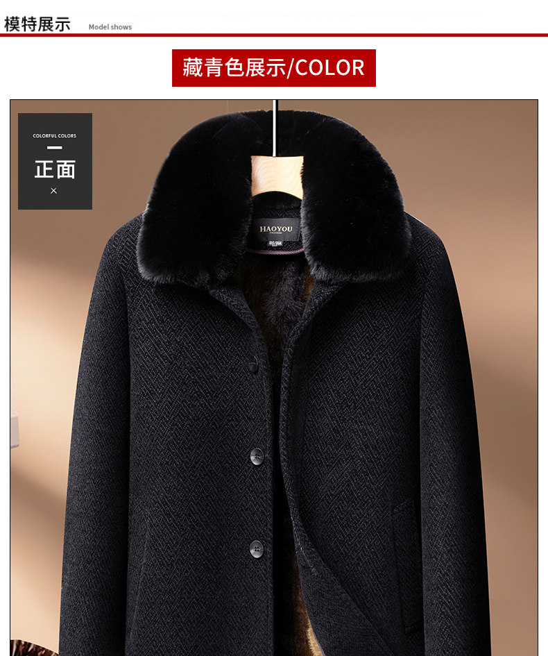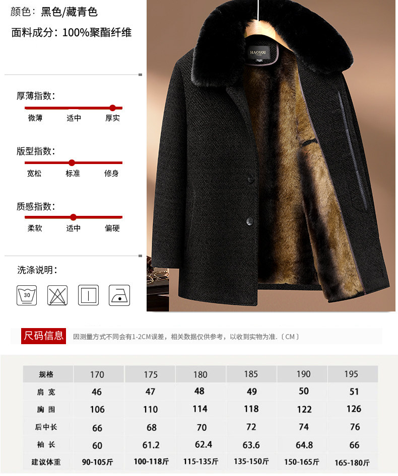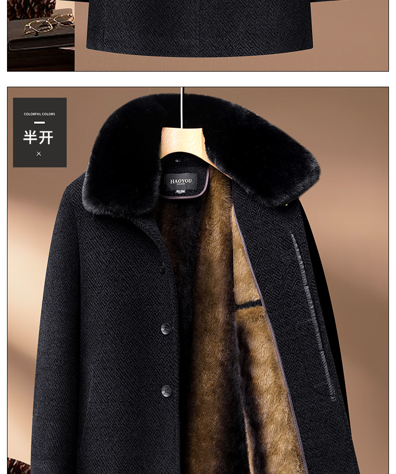 Woodpecker Dad Winter Woolen Coat with Fleece Lining, Thickened and Warm Cotton Jacket for Middle-Aged and Elderly Men, Grandpa Cotton Padded Jacket