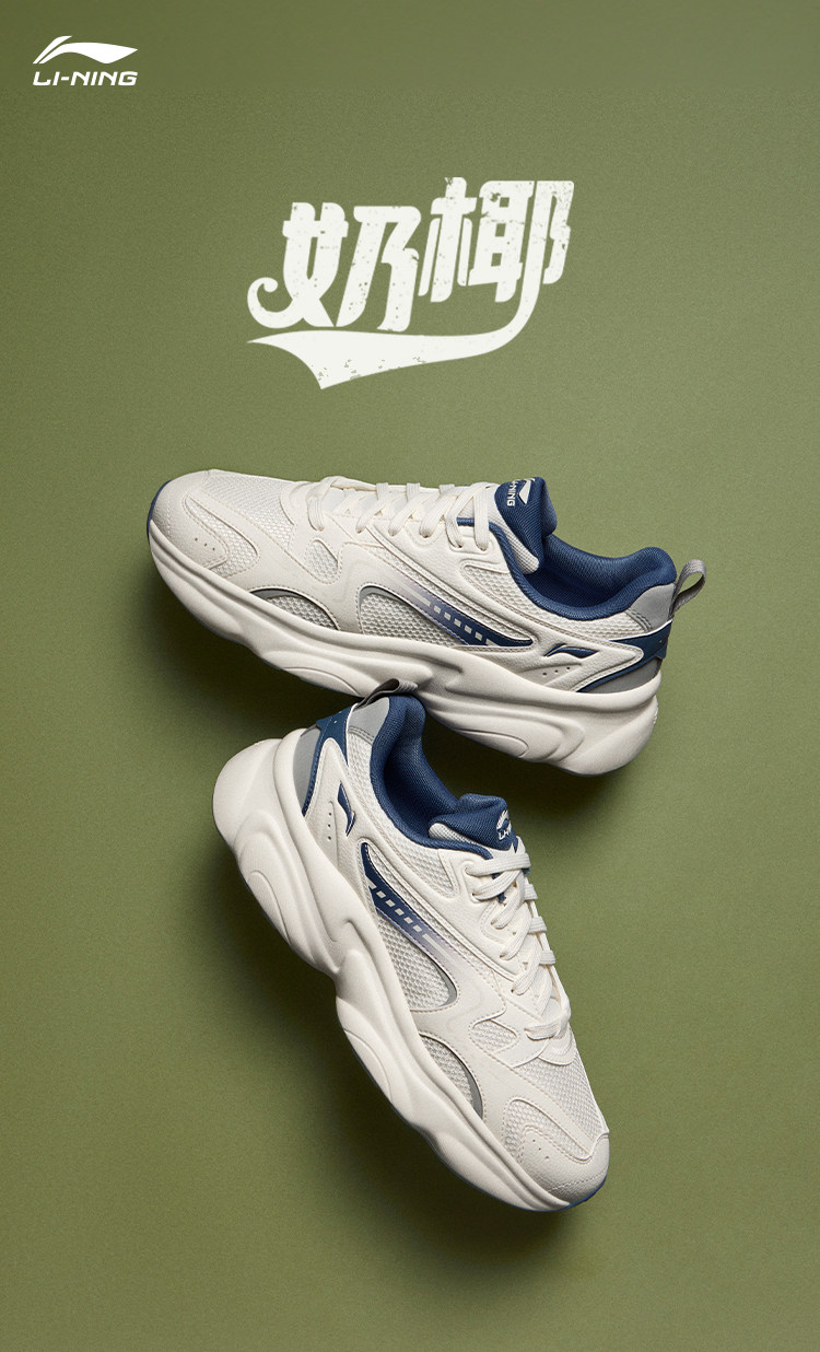 Li-Ning Milk Coconut | Men's Casual Shoes 2026 Summer New Retro Thick-Soled Rebound Dad Shoes Lightweight Sports Shoes