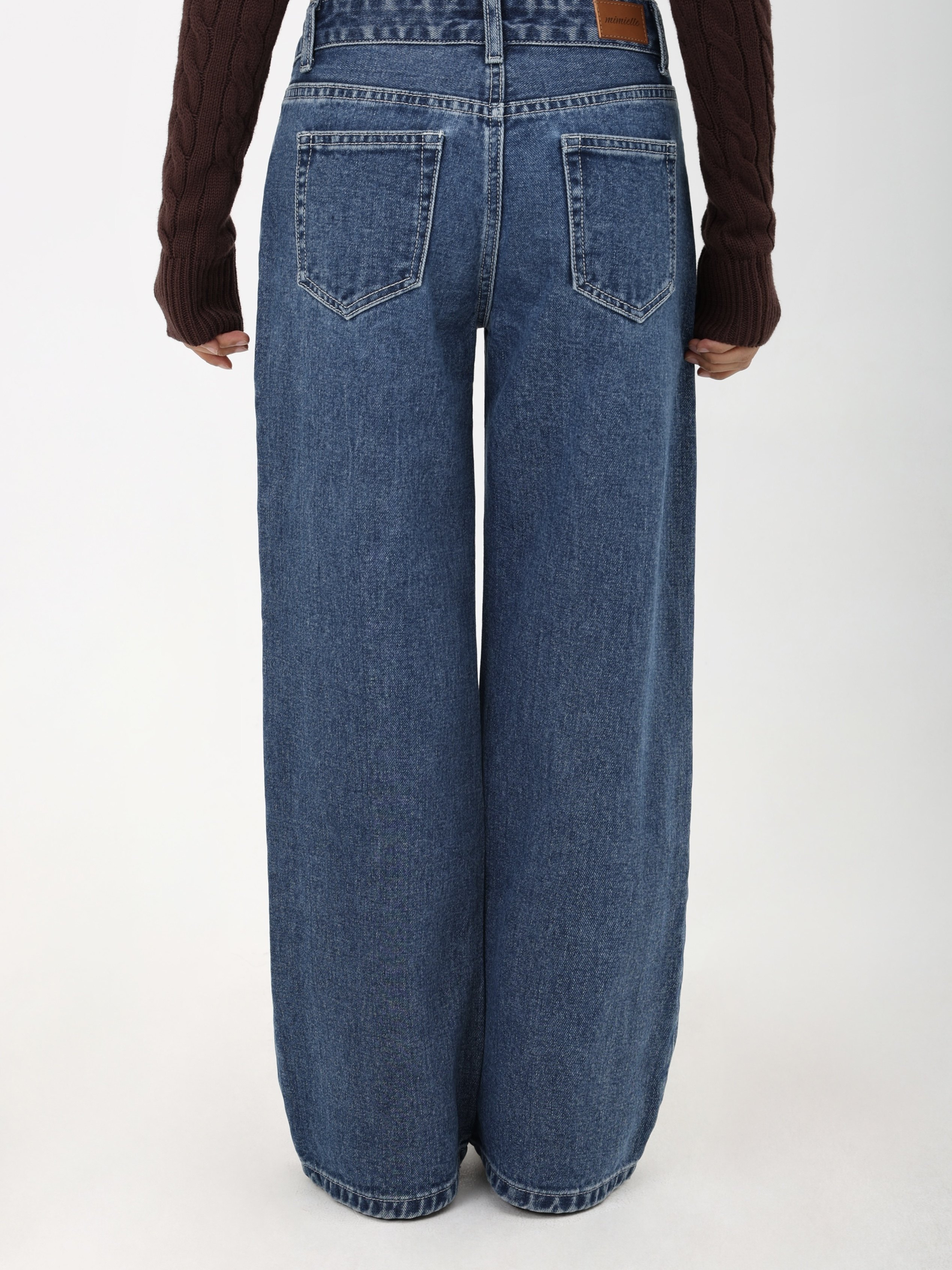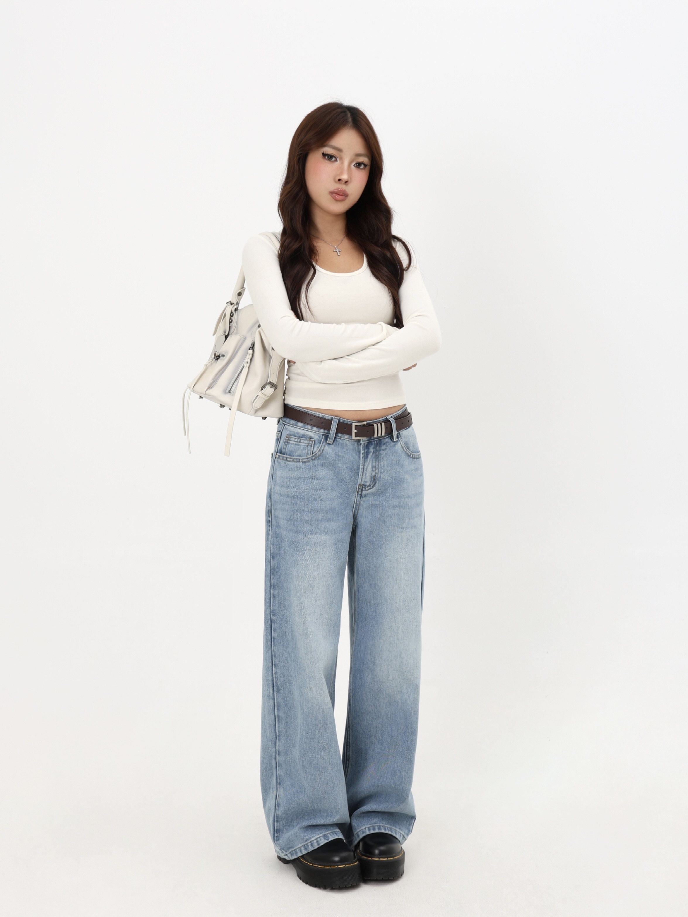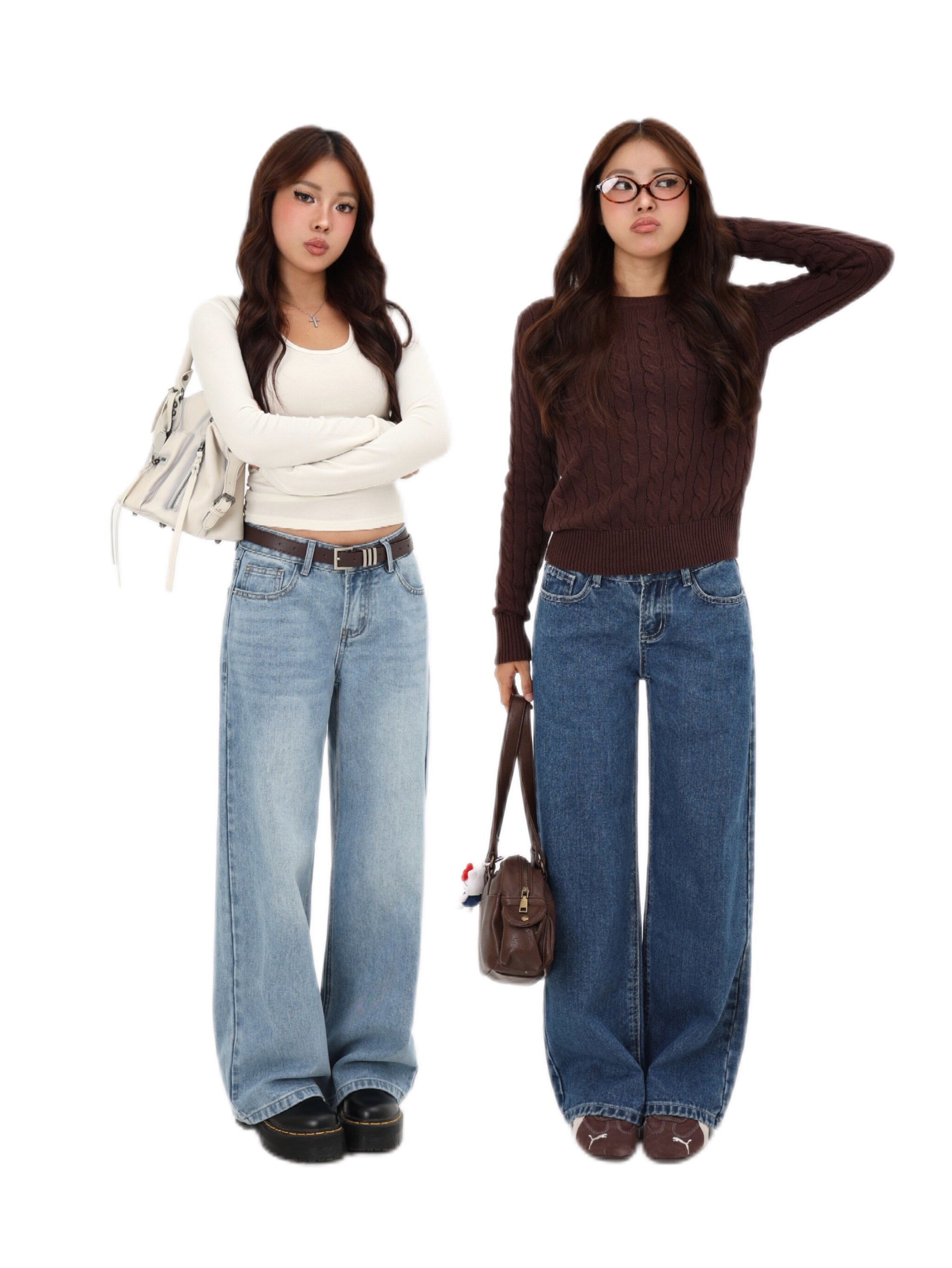 Mimiette Petite Vintage Blue Slim Straight-Leg Mid-Low Waist Jeans L87 American Simple Slimming Pants
