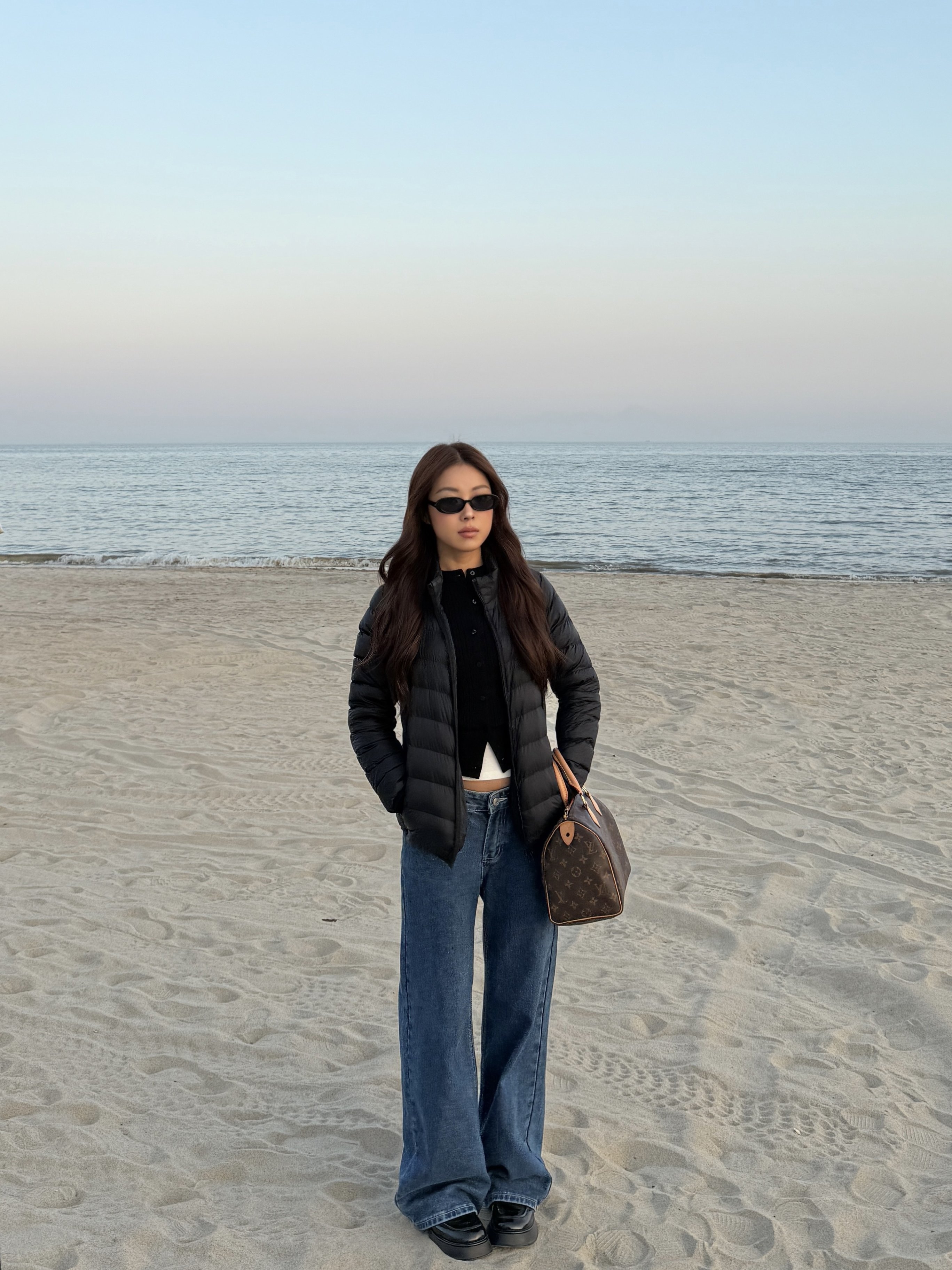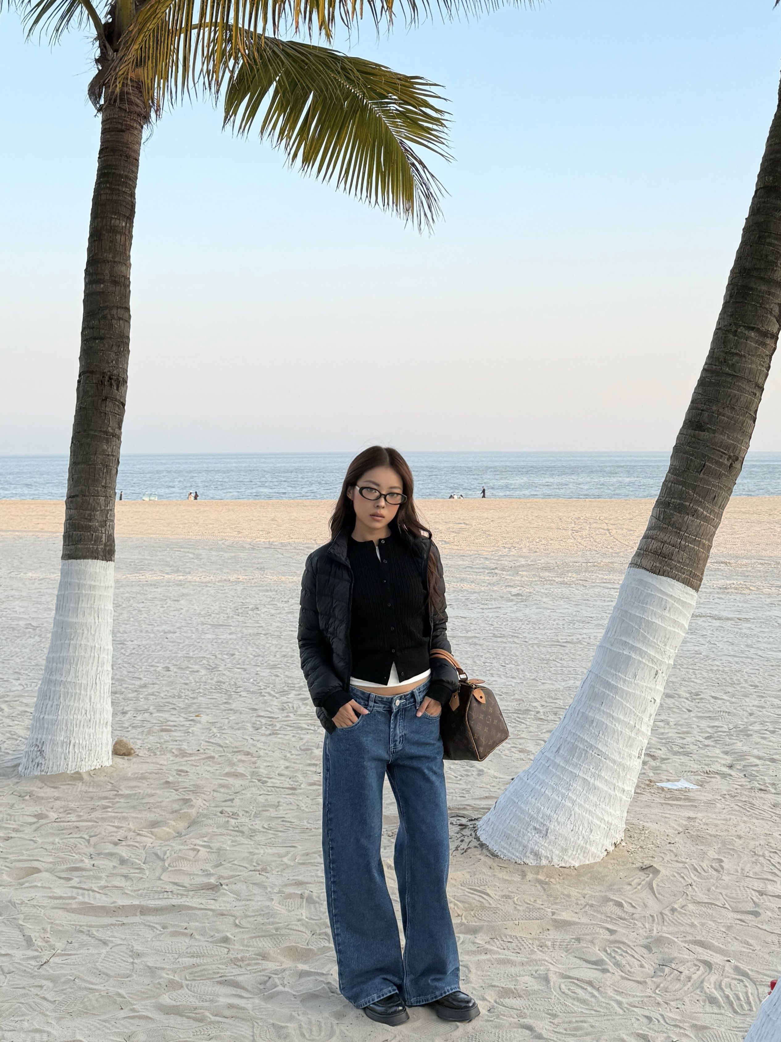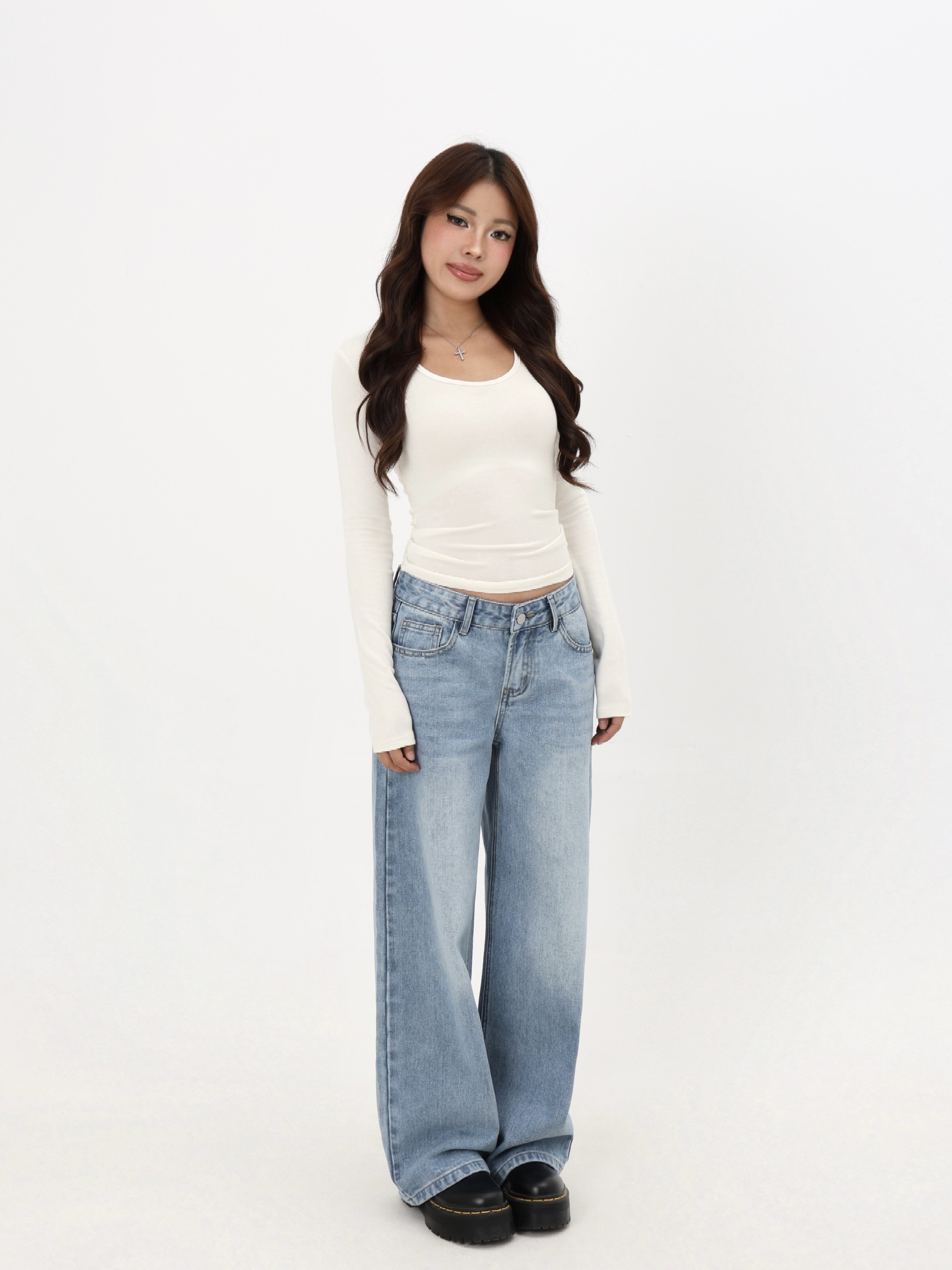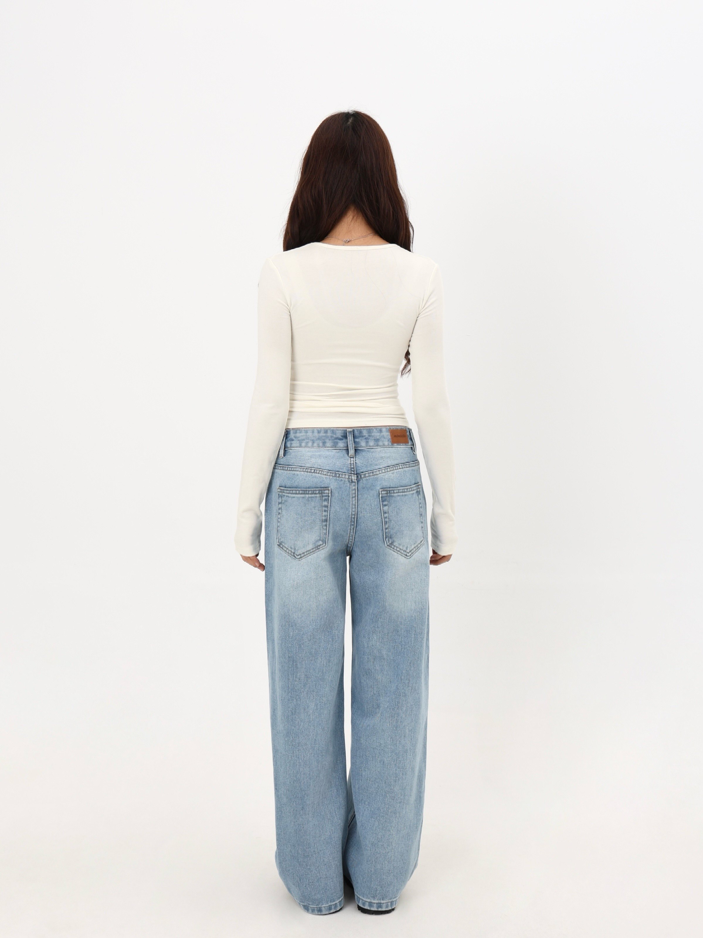 Mimiette Petite Vintage Blue Slim Straight-Leg Mid-Low Waist Jeans L87 American Simple Slimming Pants