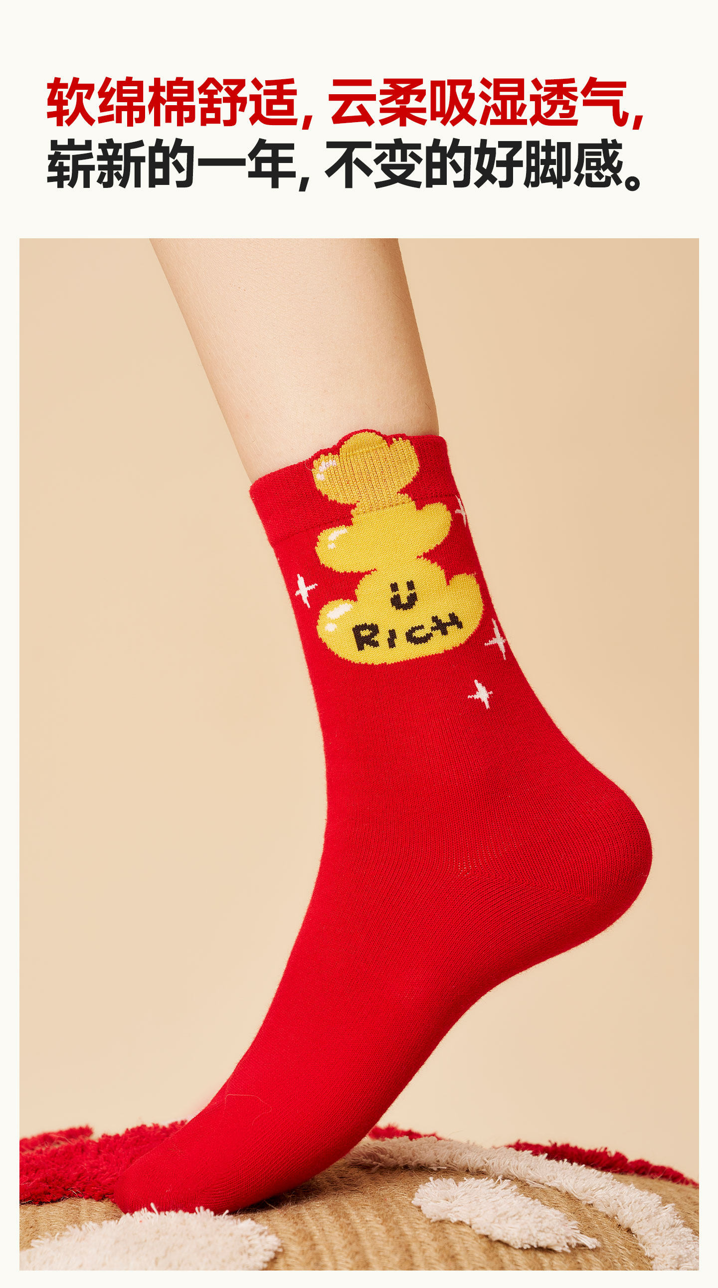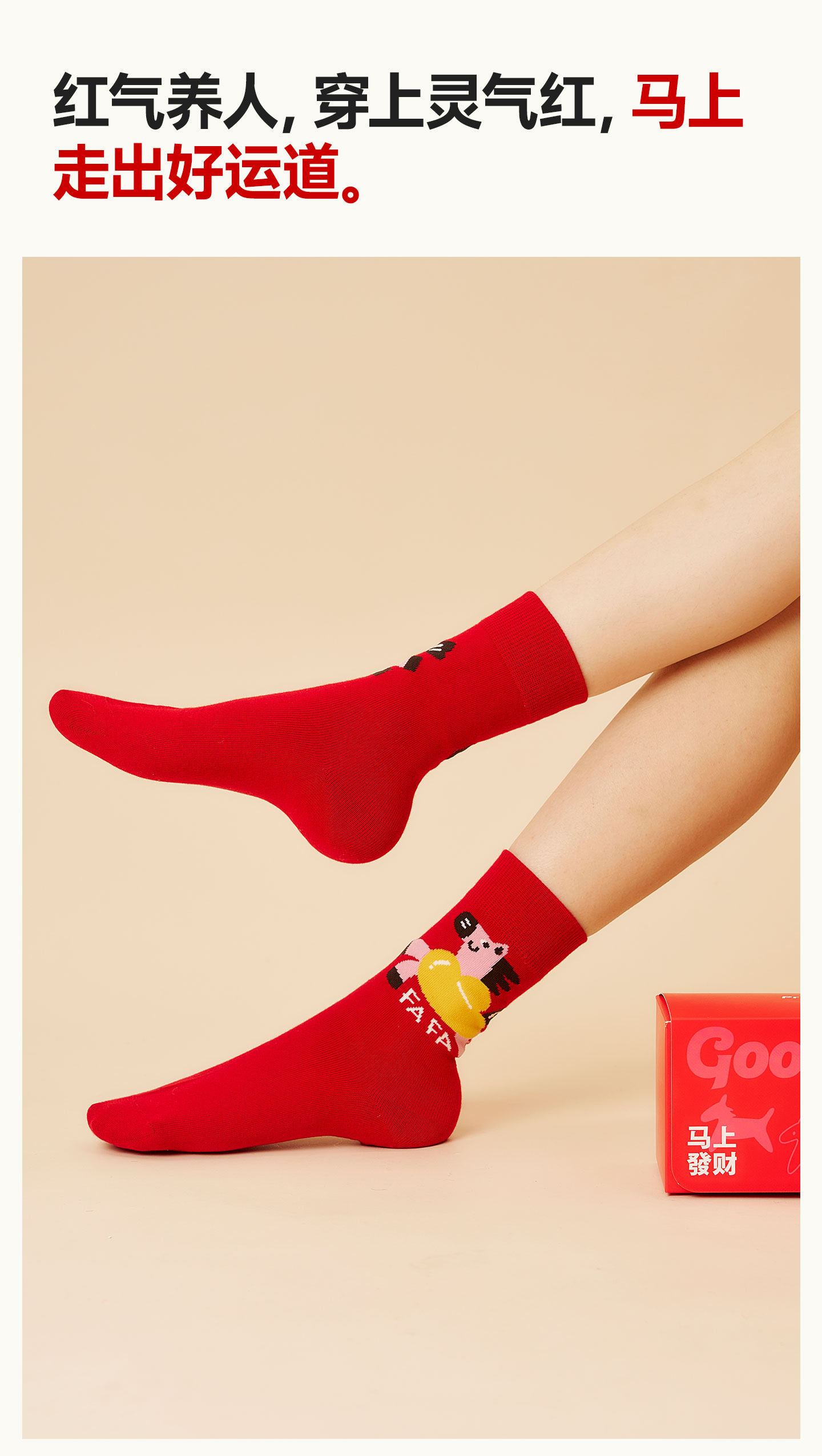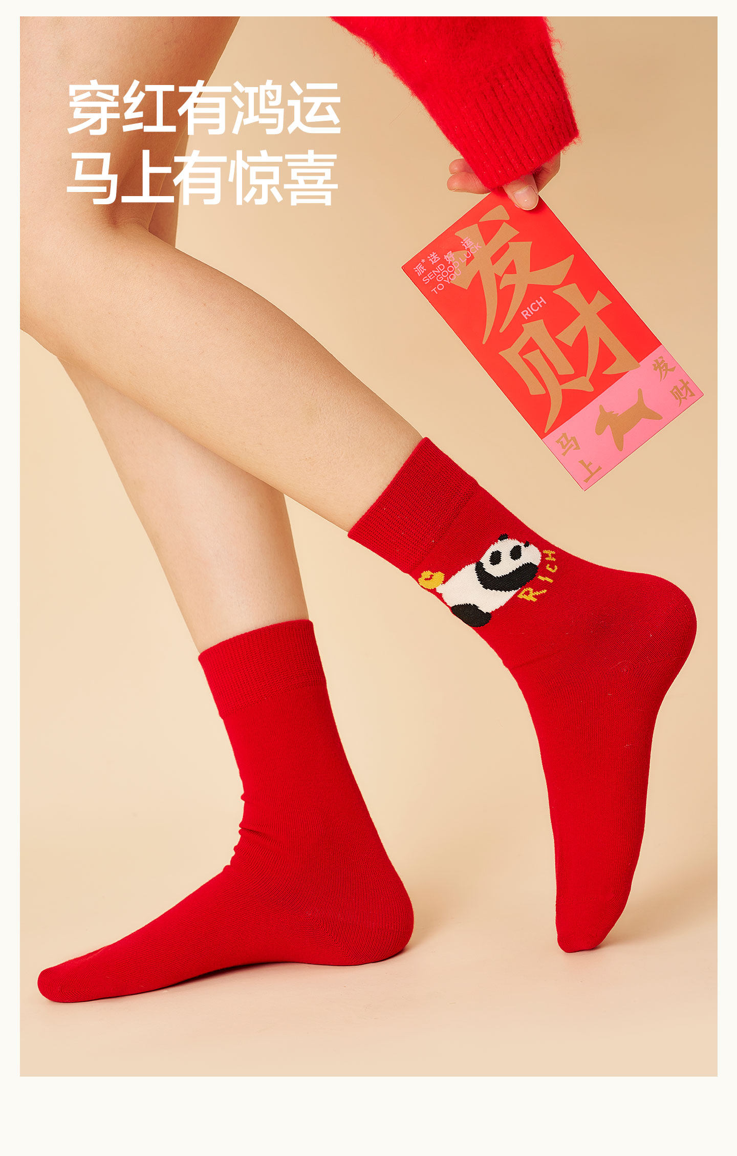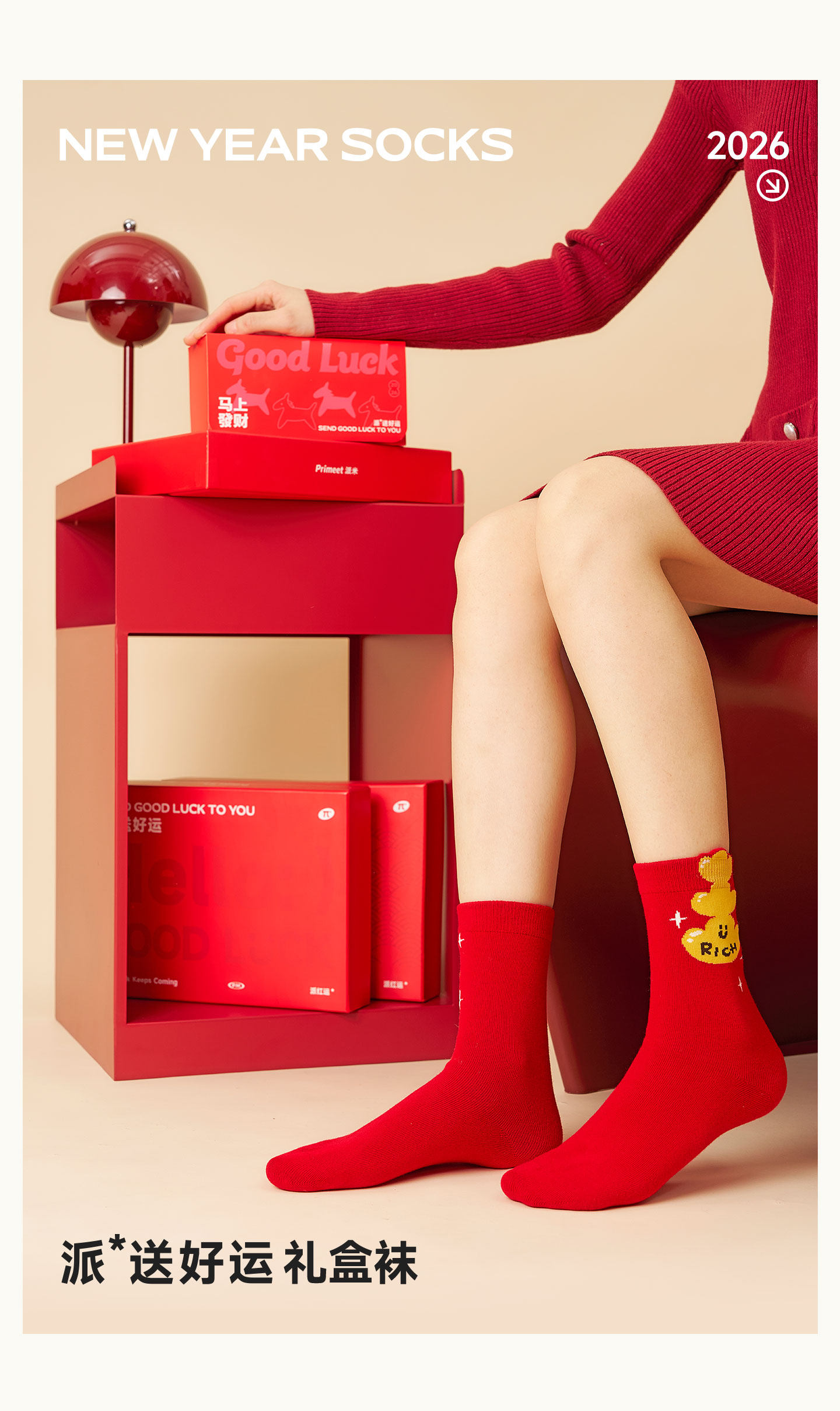 Paimi Red Socks Women's Autumn and Winter Mid-Calf Socks Zodiac Year Red Socks 2026 Year of the Horse New Year Gift Box Set