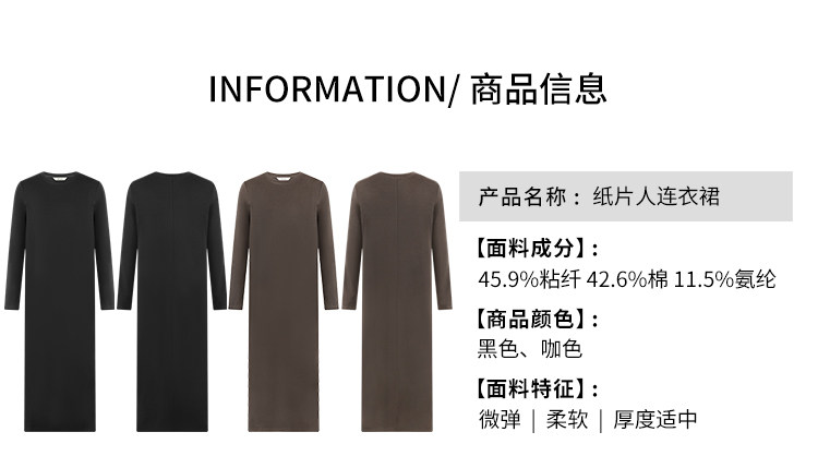 Meiyang Paper Doll Dress Thickened Ribbed Stretch Fleece Warm T-Shirt Little Black Dress【Medium】