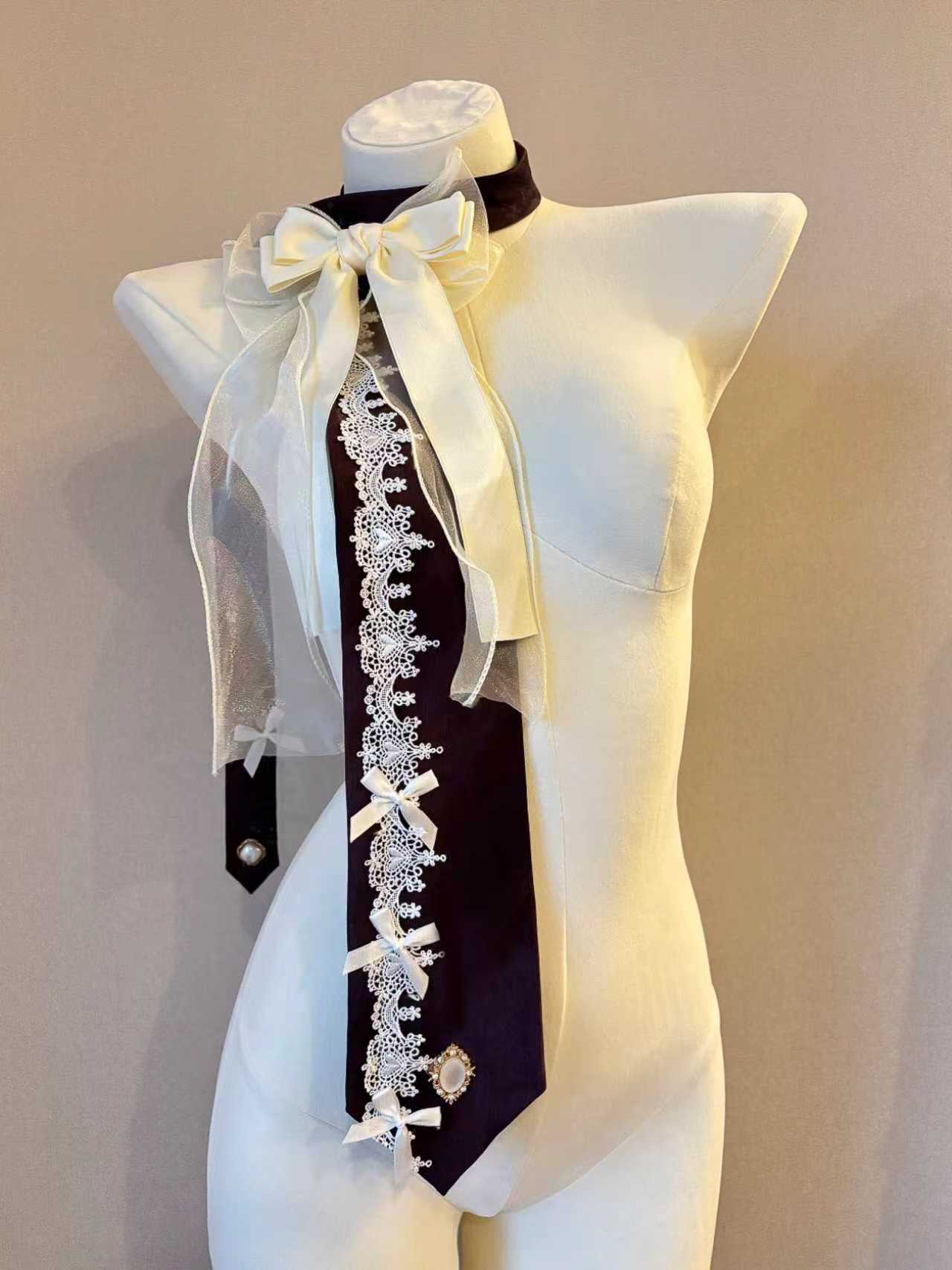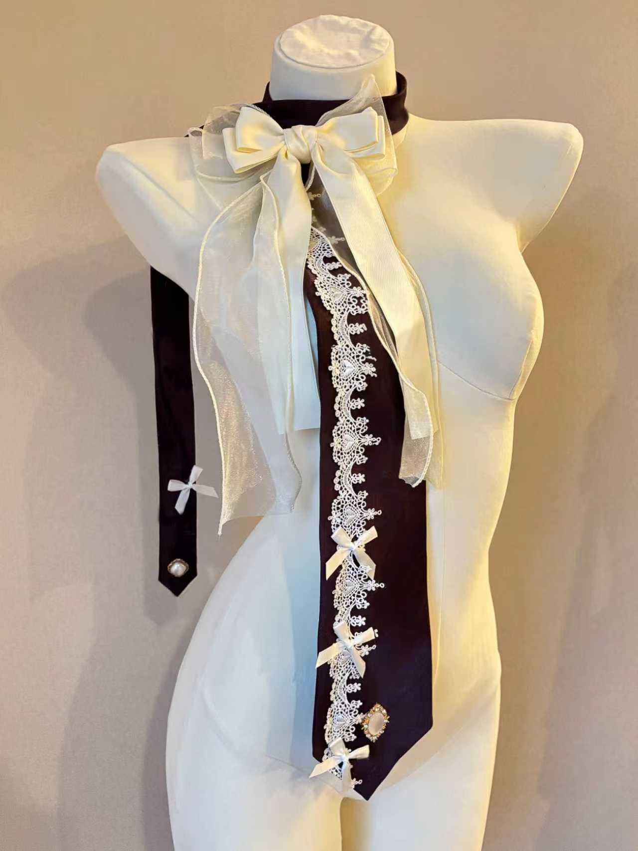 Niche Retro Style White Lace Bow Tie, Elegant and High-End Baroque Bow Tie, Unique Vintage Accessory