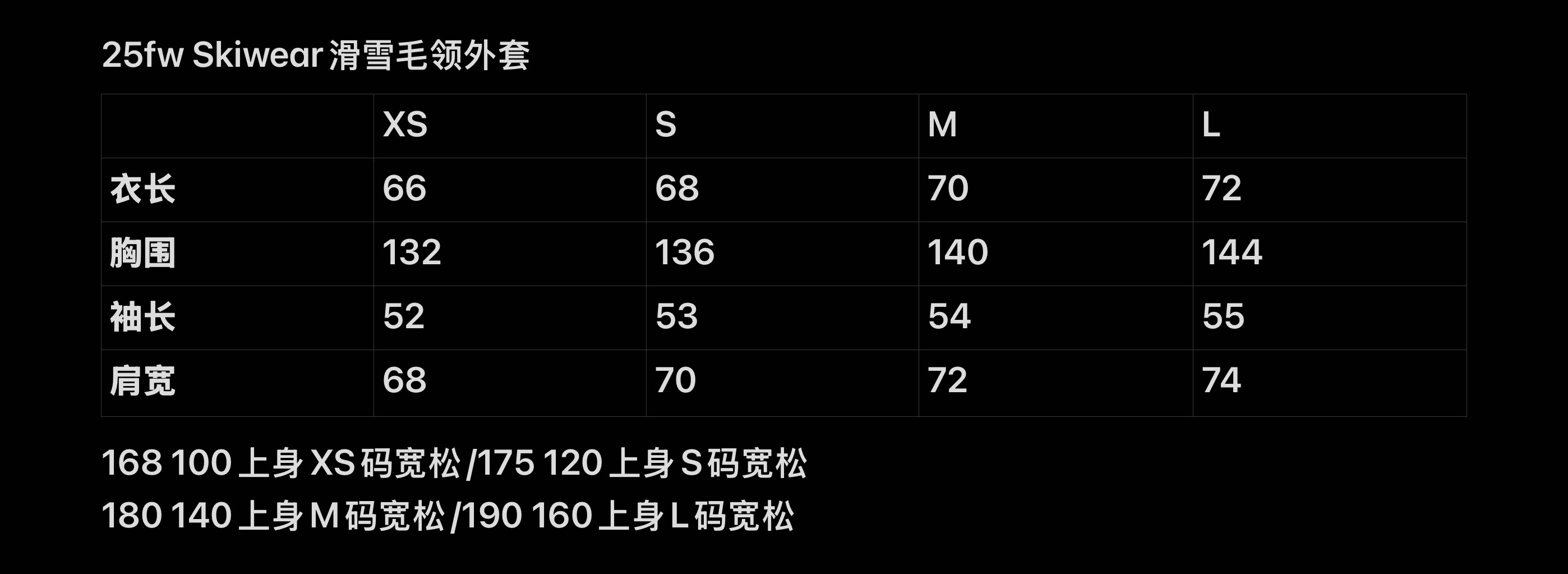 尺码参数