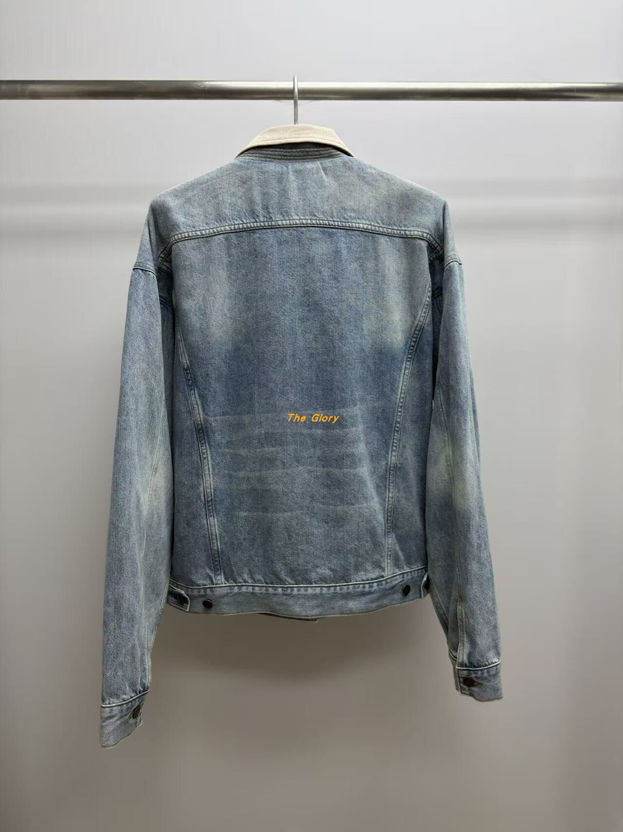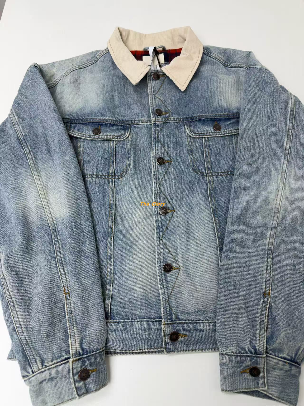 【Glory】In Stock! Row Style 25 Models Joret Washed Blue Corduroy Collar Denim Jacket for Men and Women