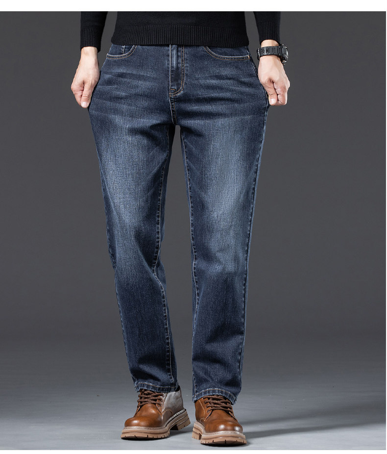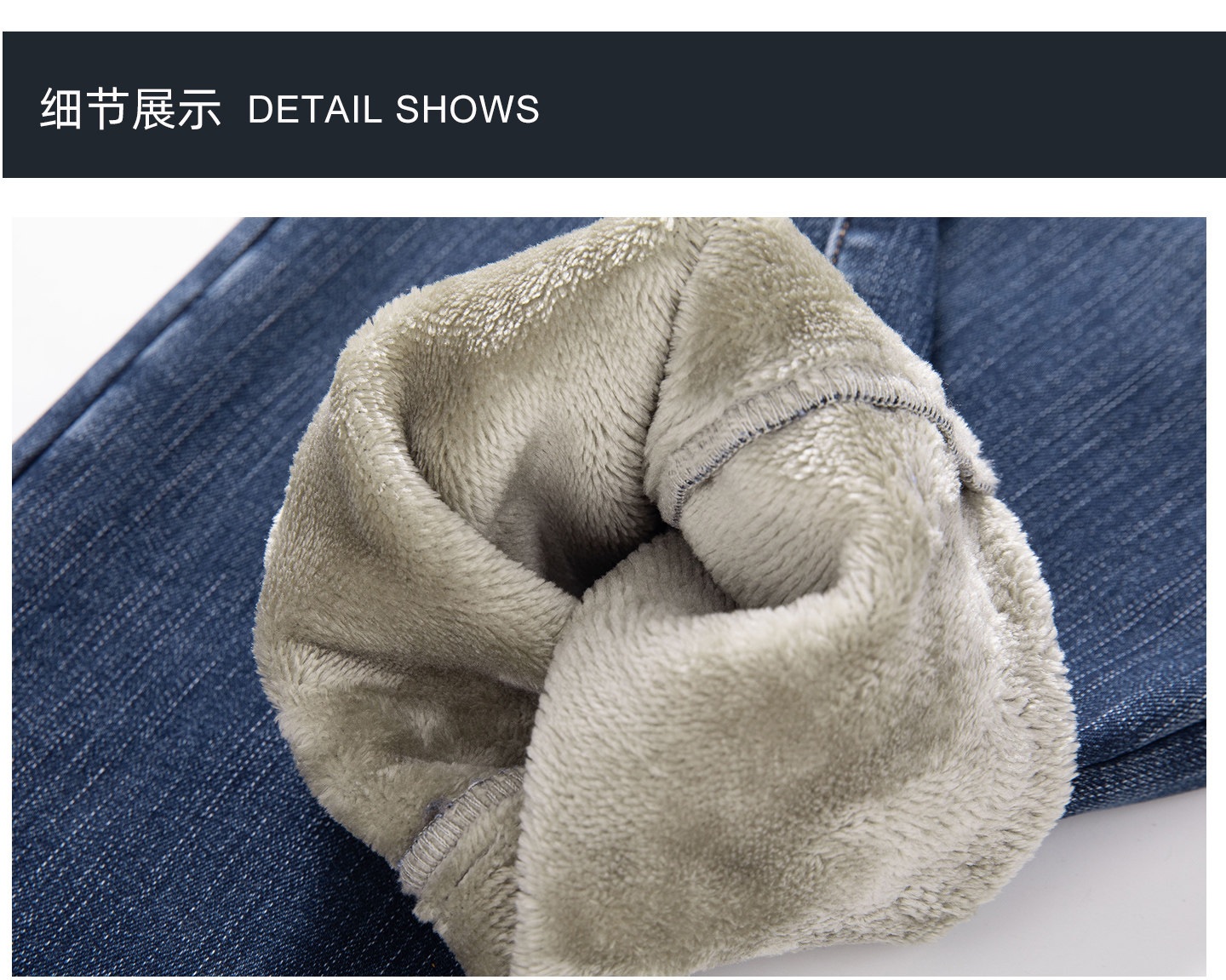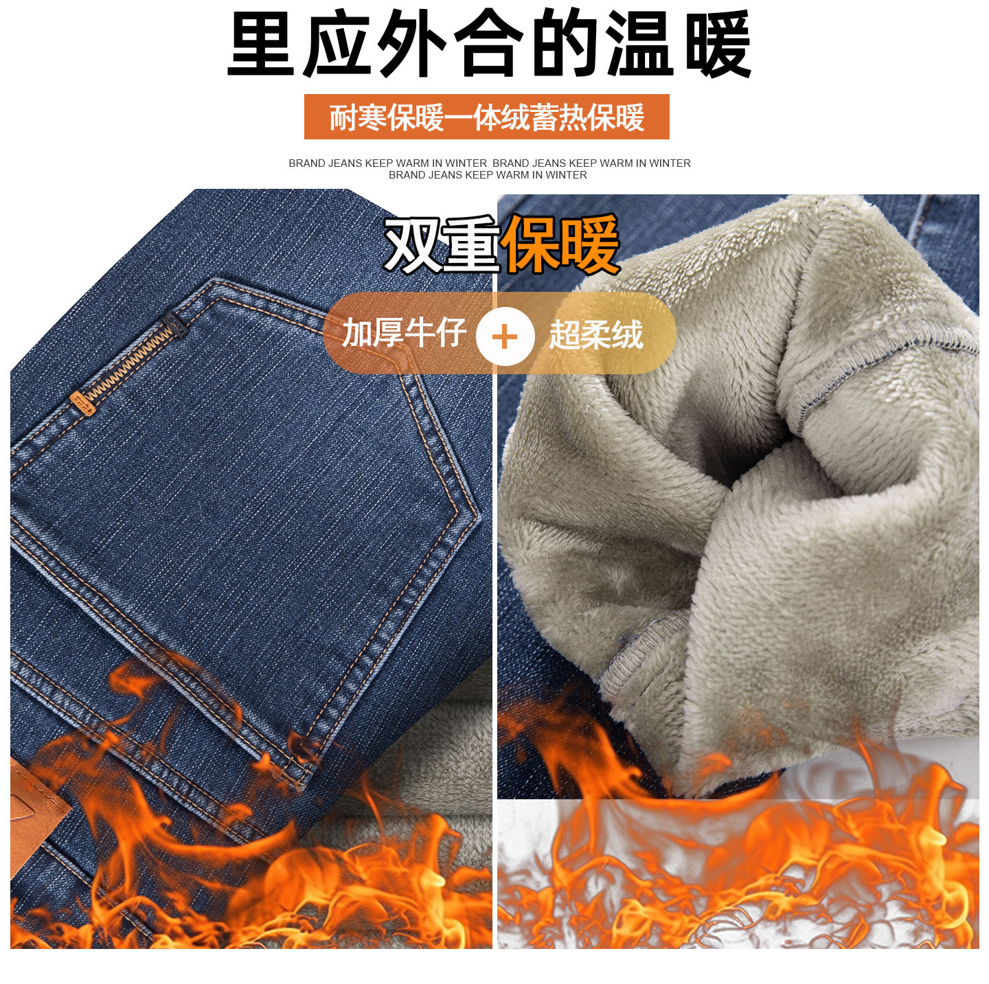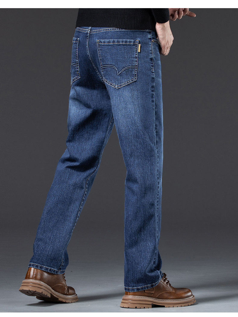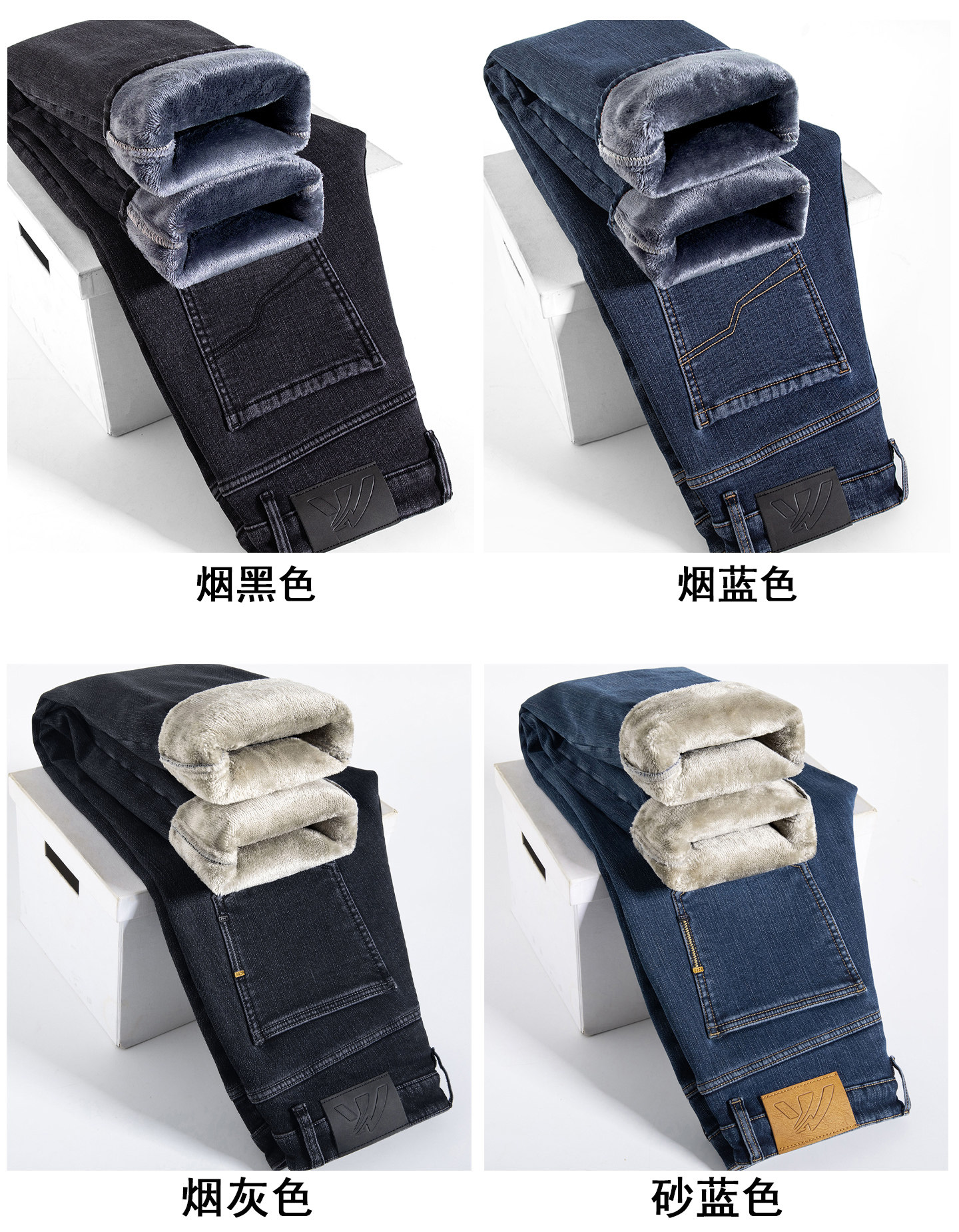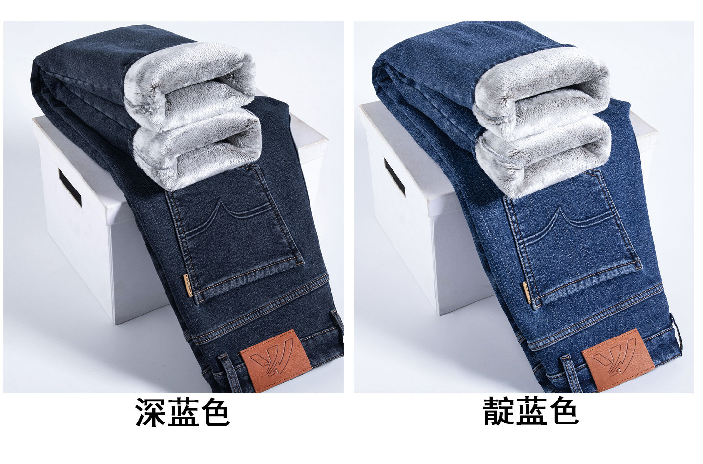 Woodpecker Men's Fleece-Lined Thickened Jeans Winter Ultra-Thick Warm Loose Straight-Leg Trousers Cold-Resistant Casual Pants