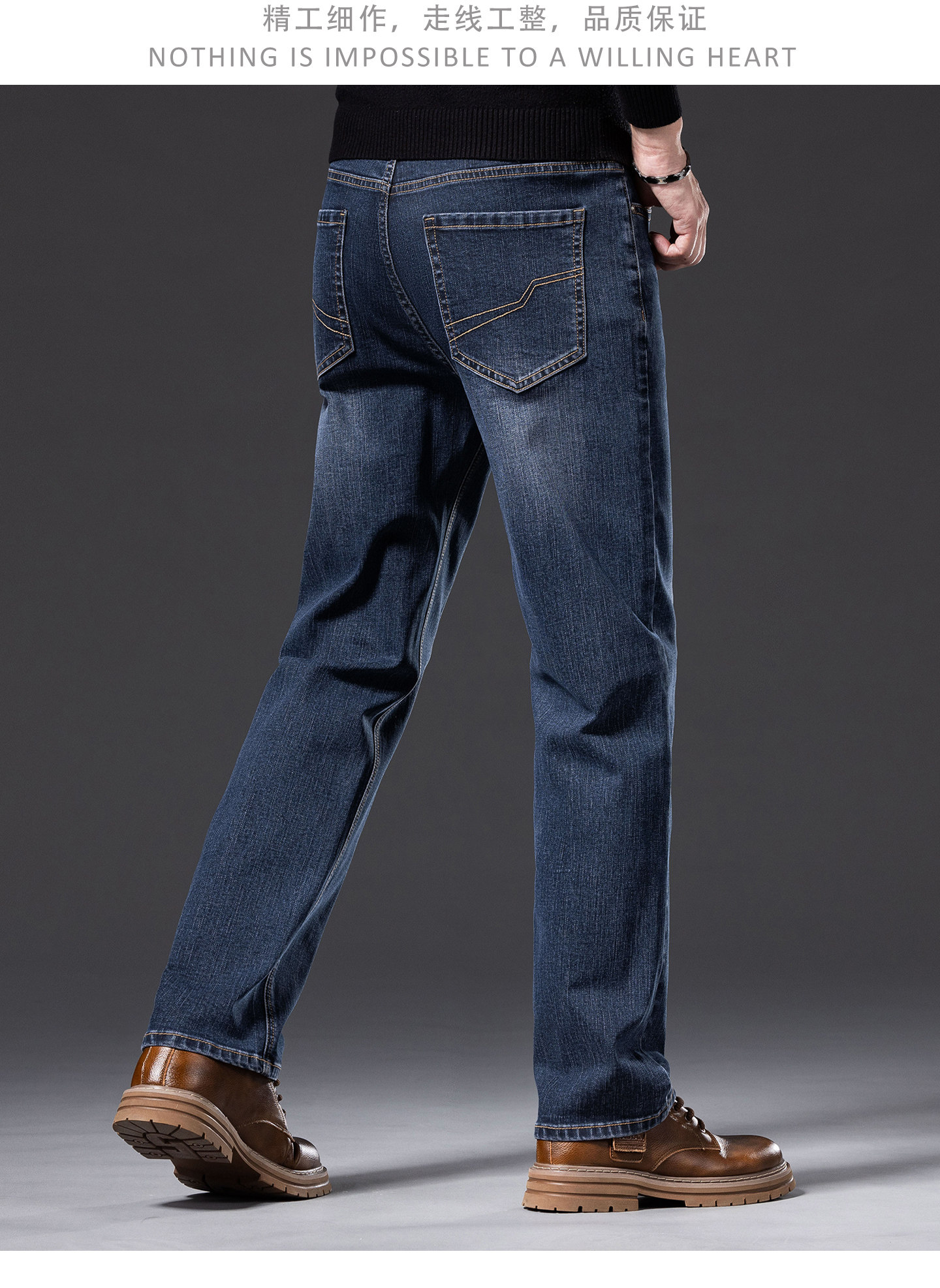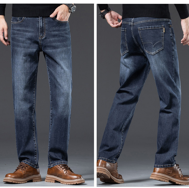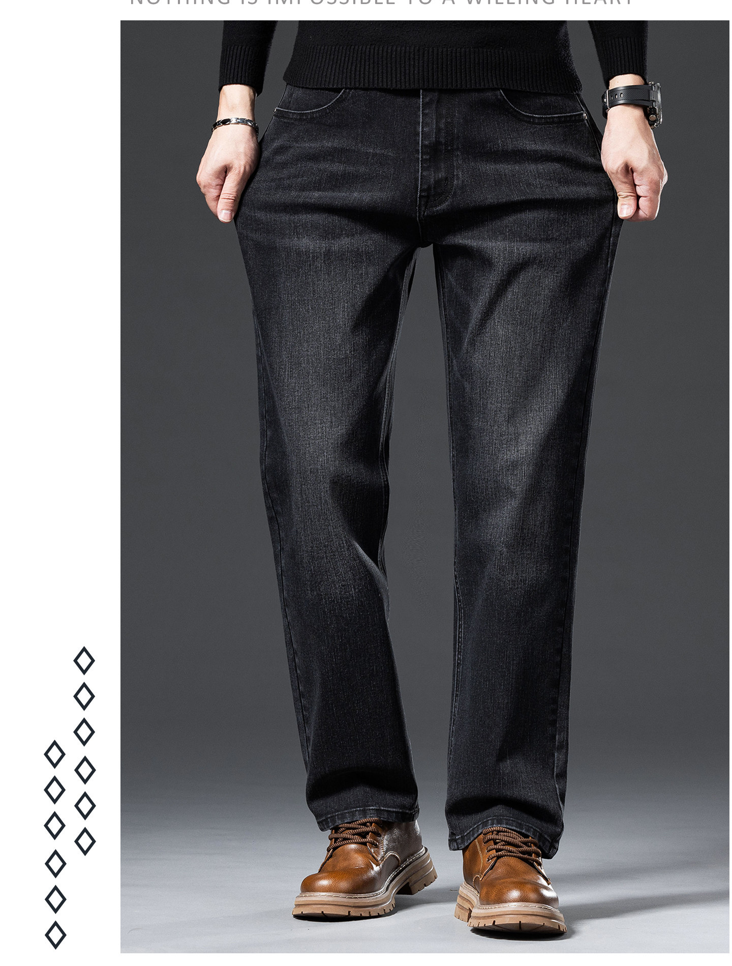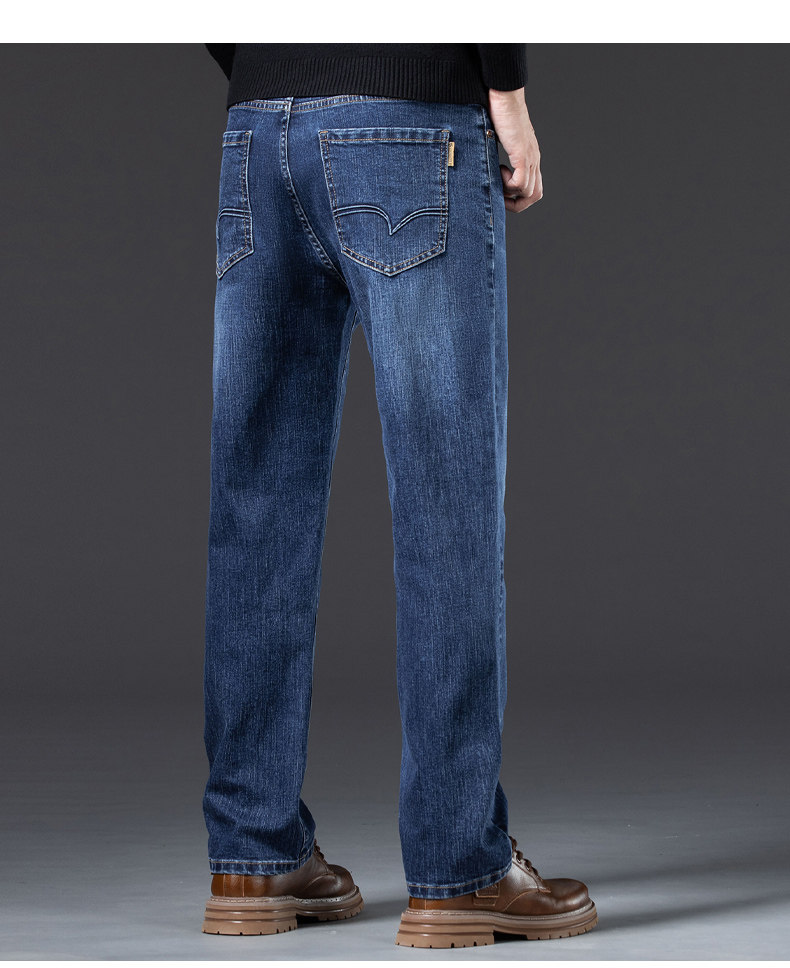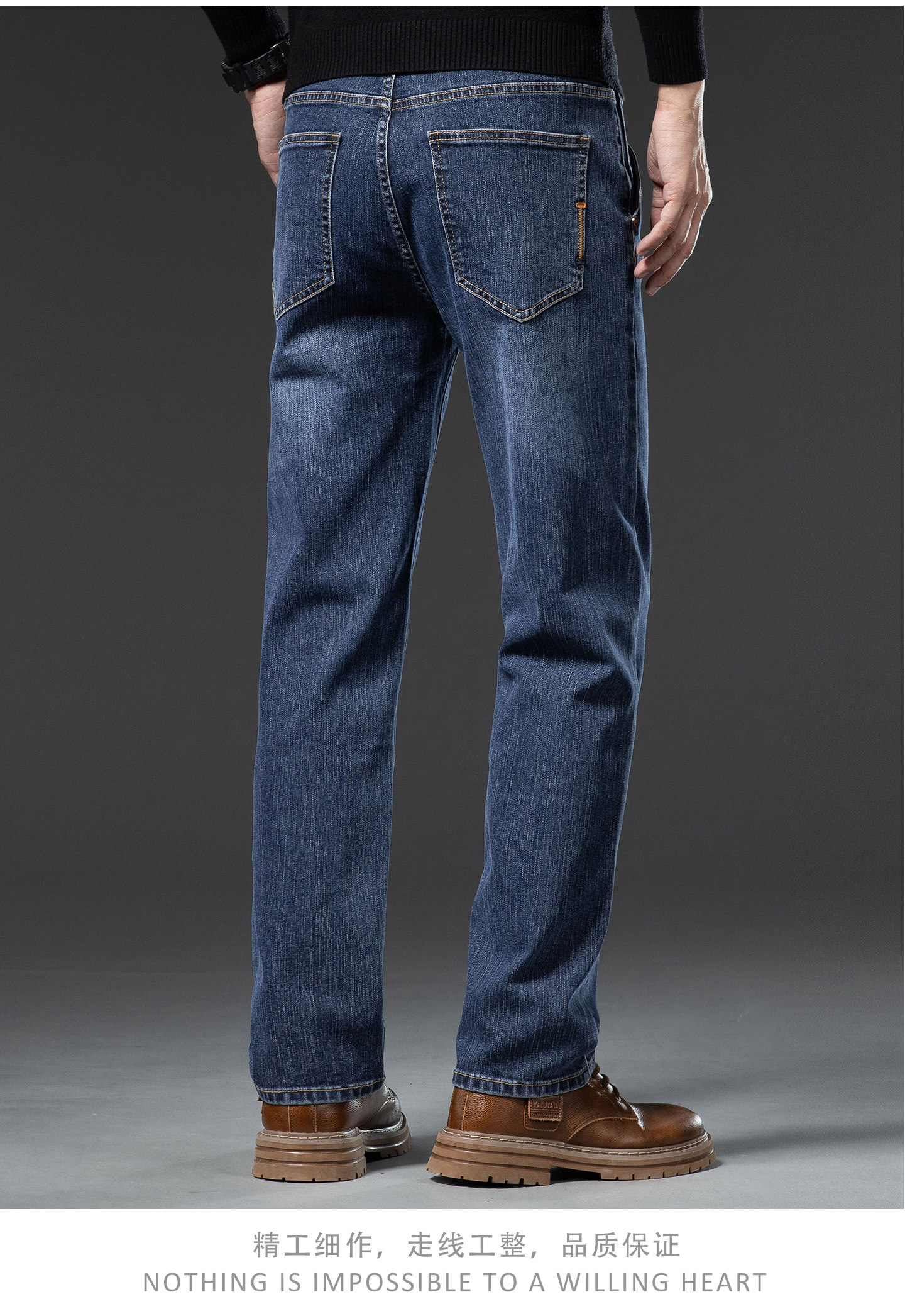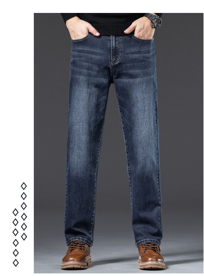 Woodpecker Men's Fleece-Lined Thickened Jeans Winter Ultra-Thick Warm Loose Straight-Leg Trousers Cold-Resistant Casual Pants