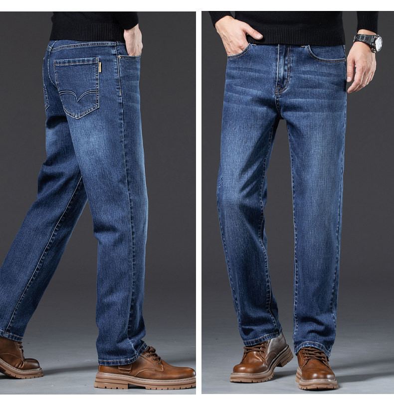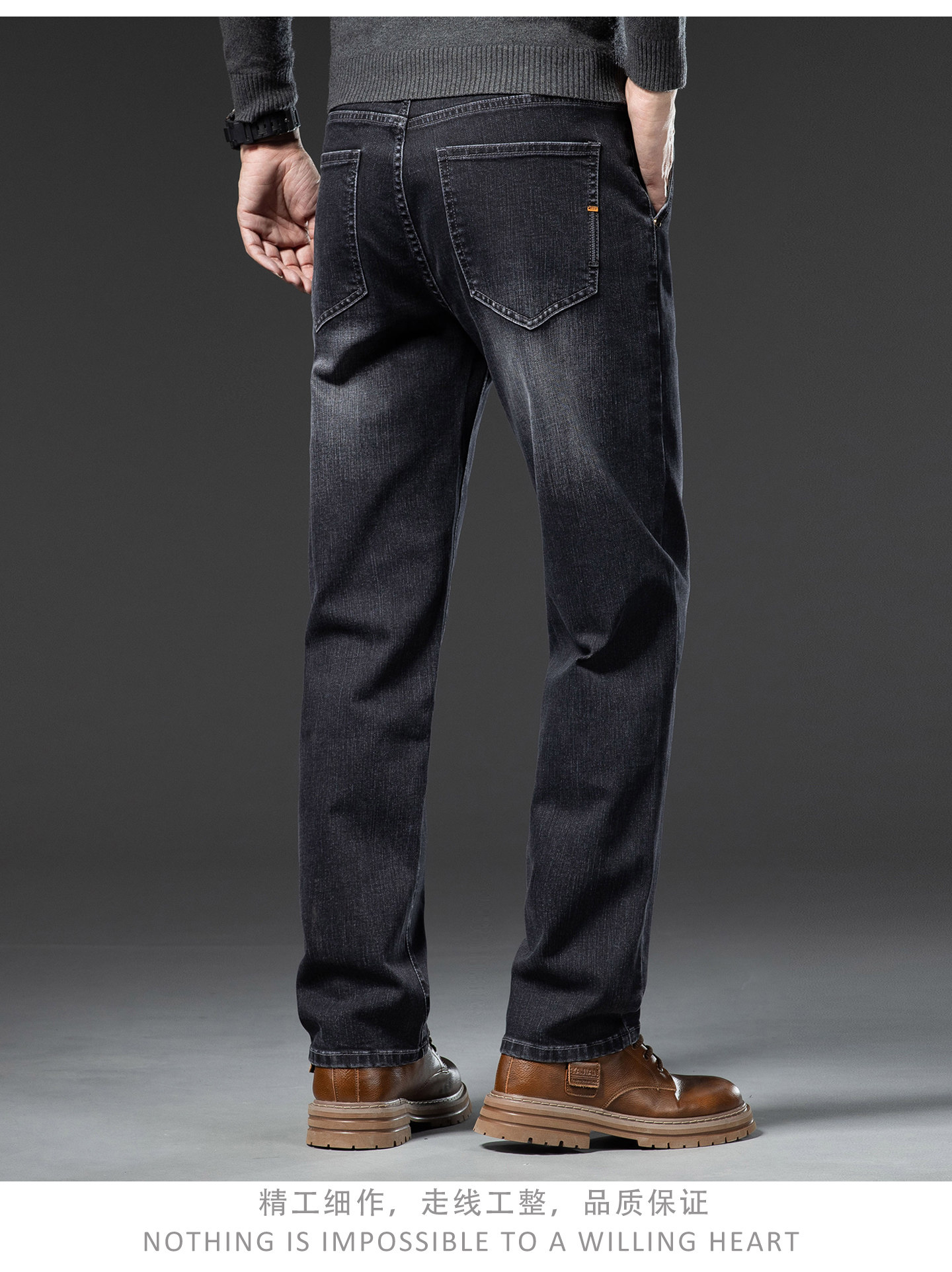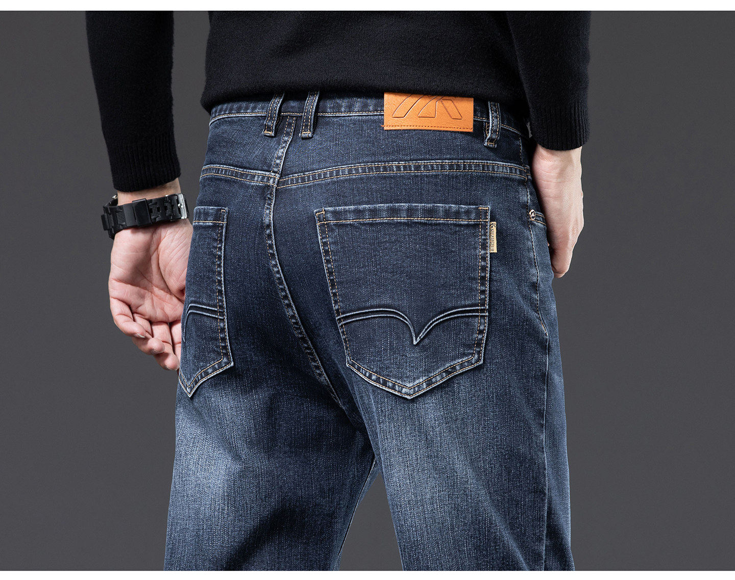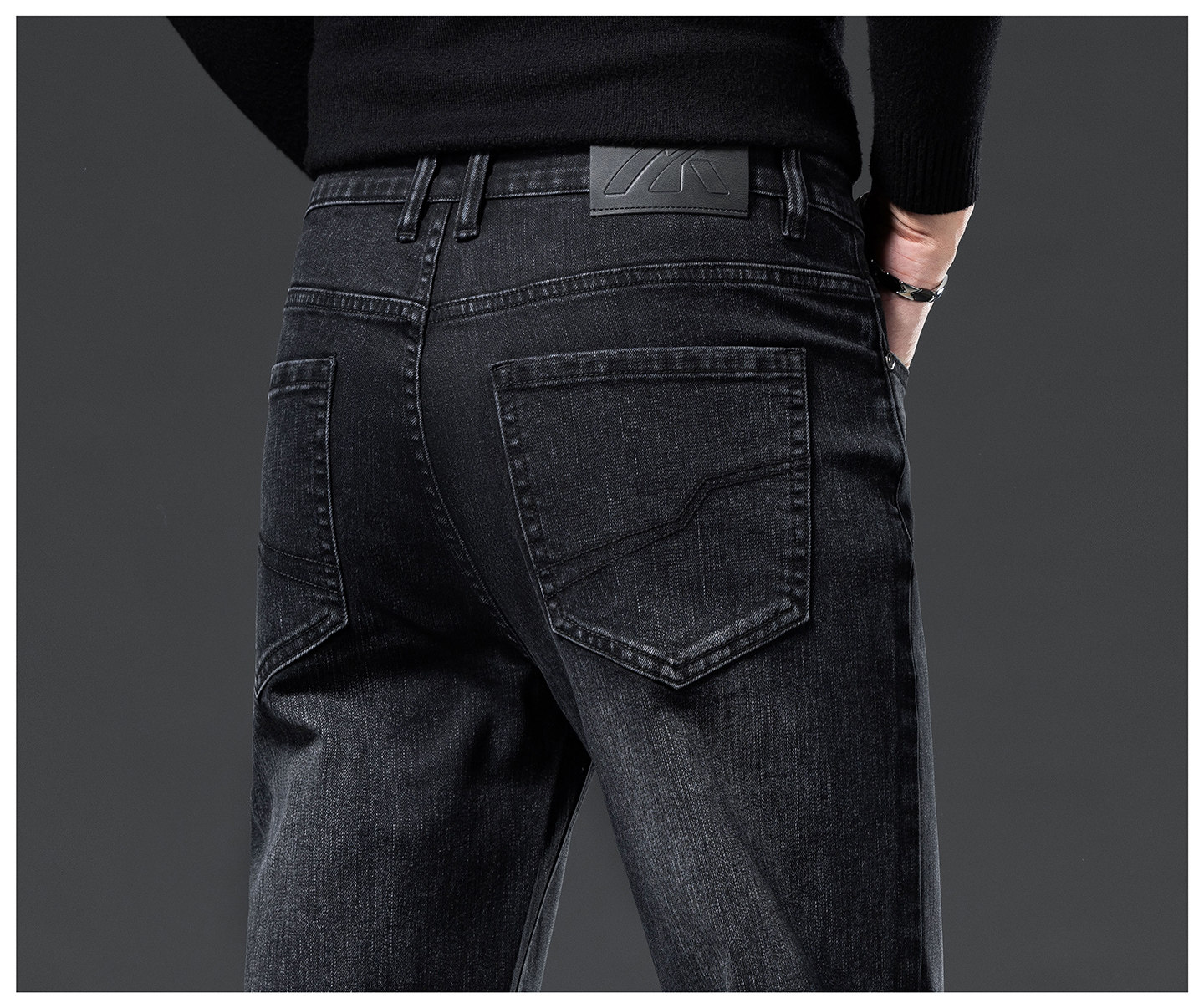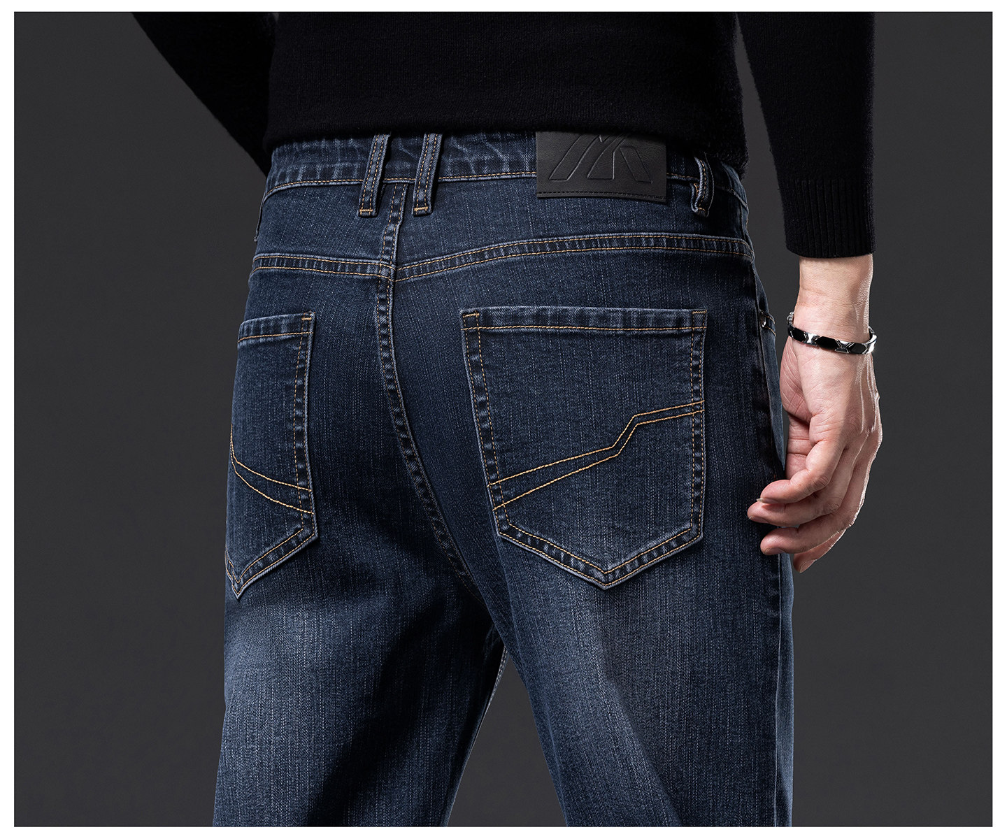 Woodpecker Men's Fleece-Lined Thickened Jeans Winter Ultra-Thick Warm Loose Straight-Leg Trousers Cold-Resistant Casual Pants