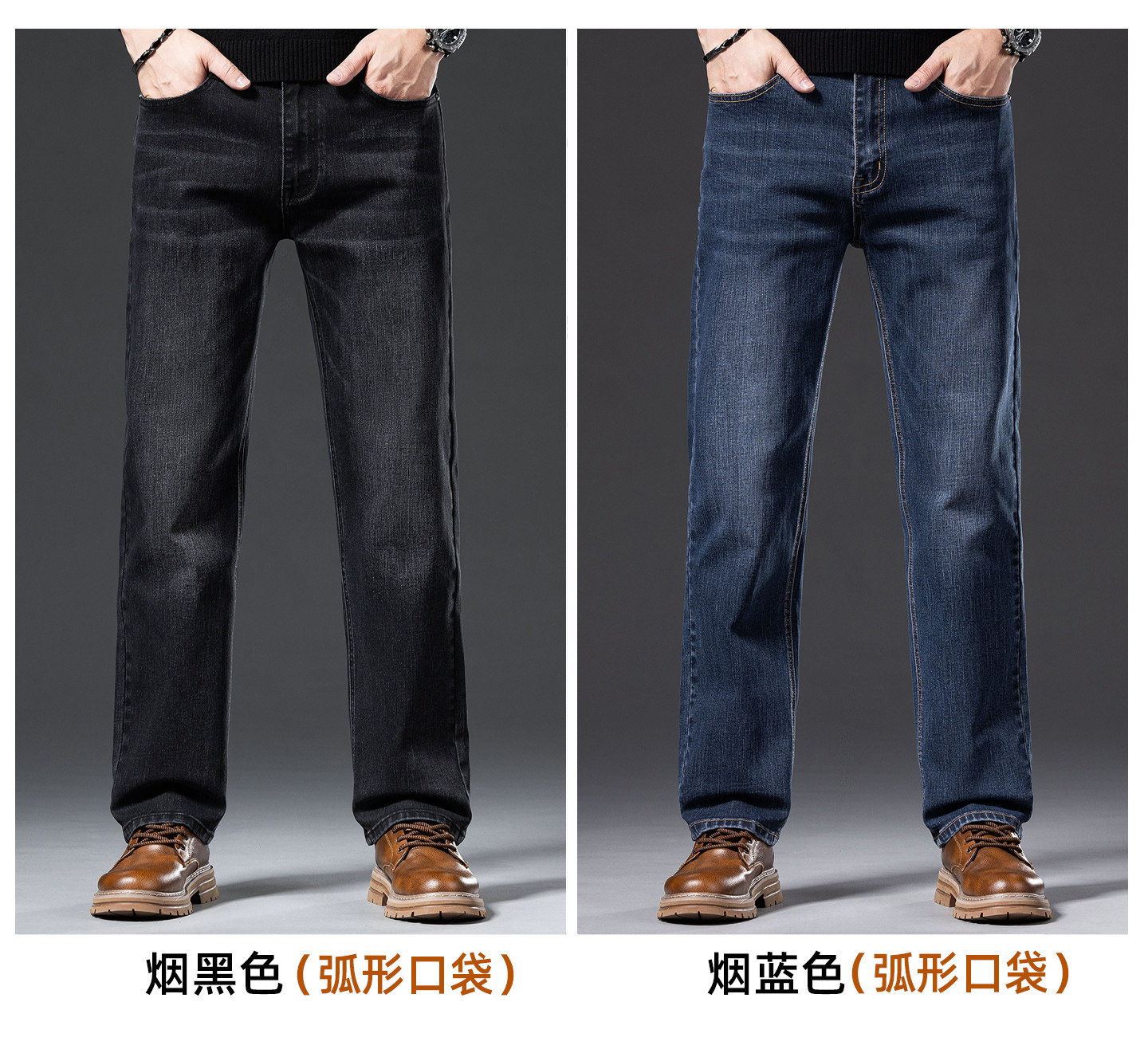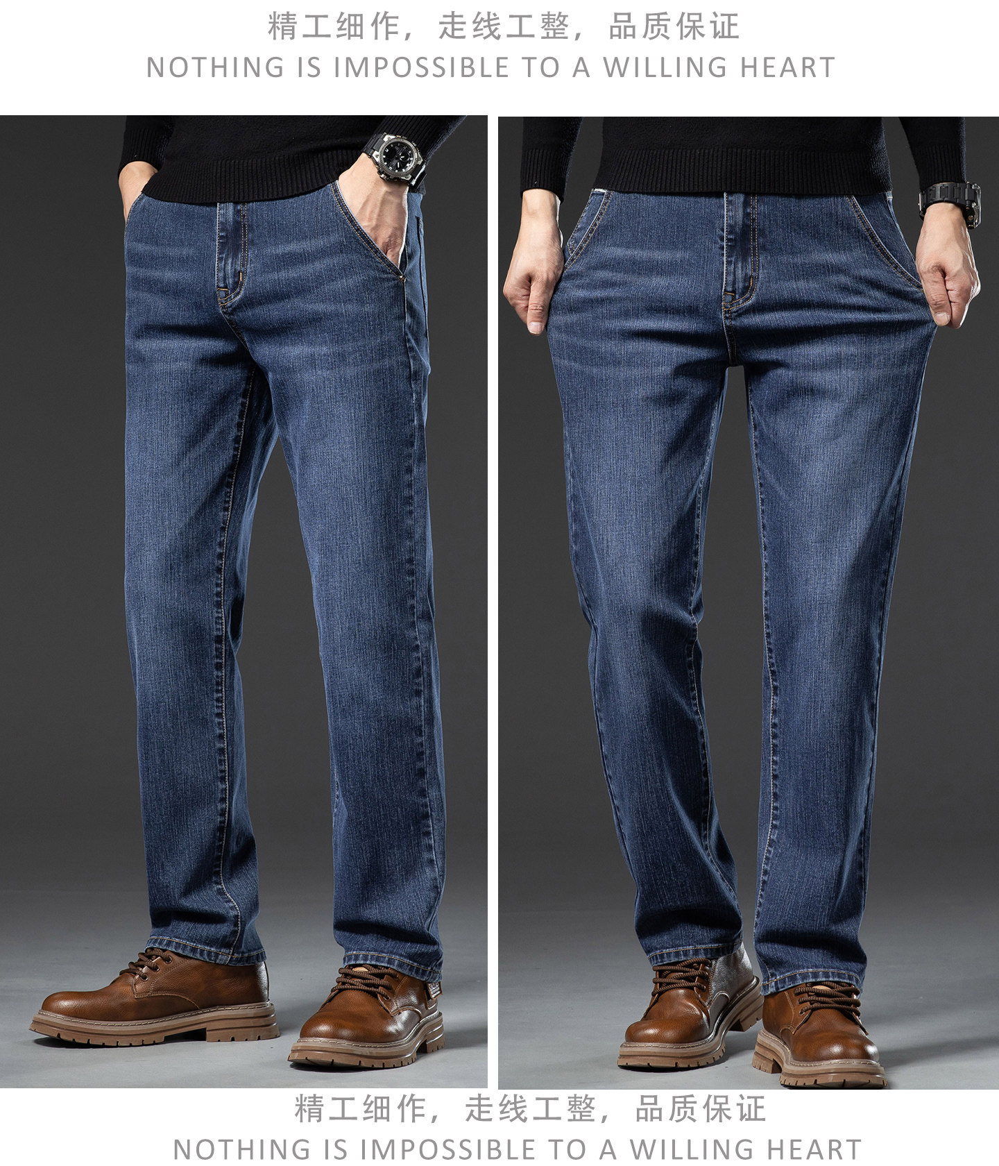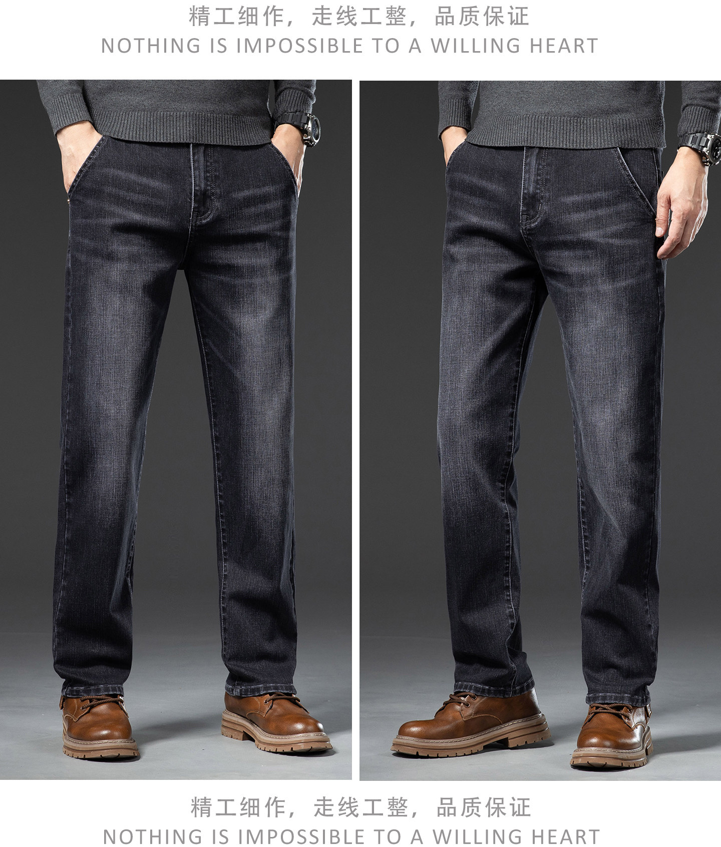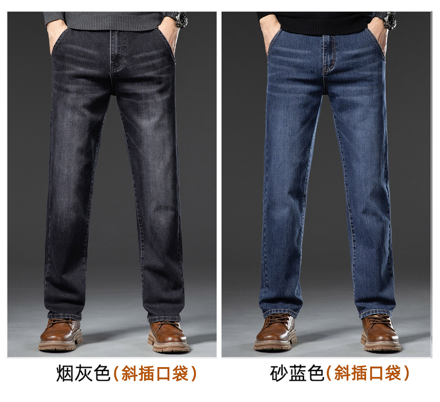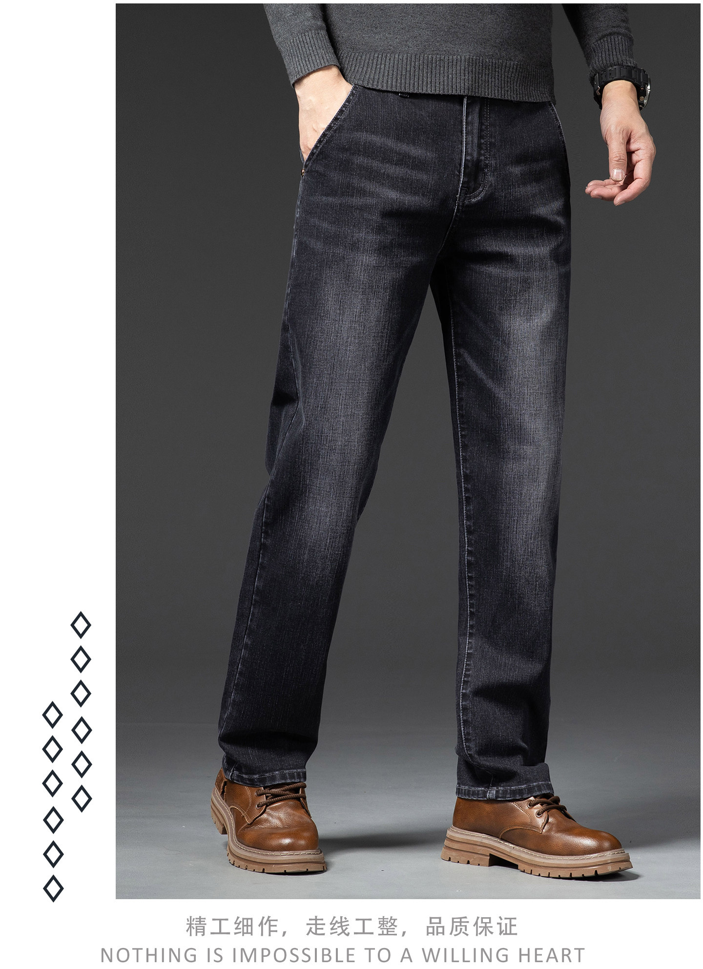 Woodpecker Men's Fleece-Lined Thickened Jeans Winter Ultra-Thick Warm Loose Straight-Leg Trousers Cold-Resistant Casual Pants