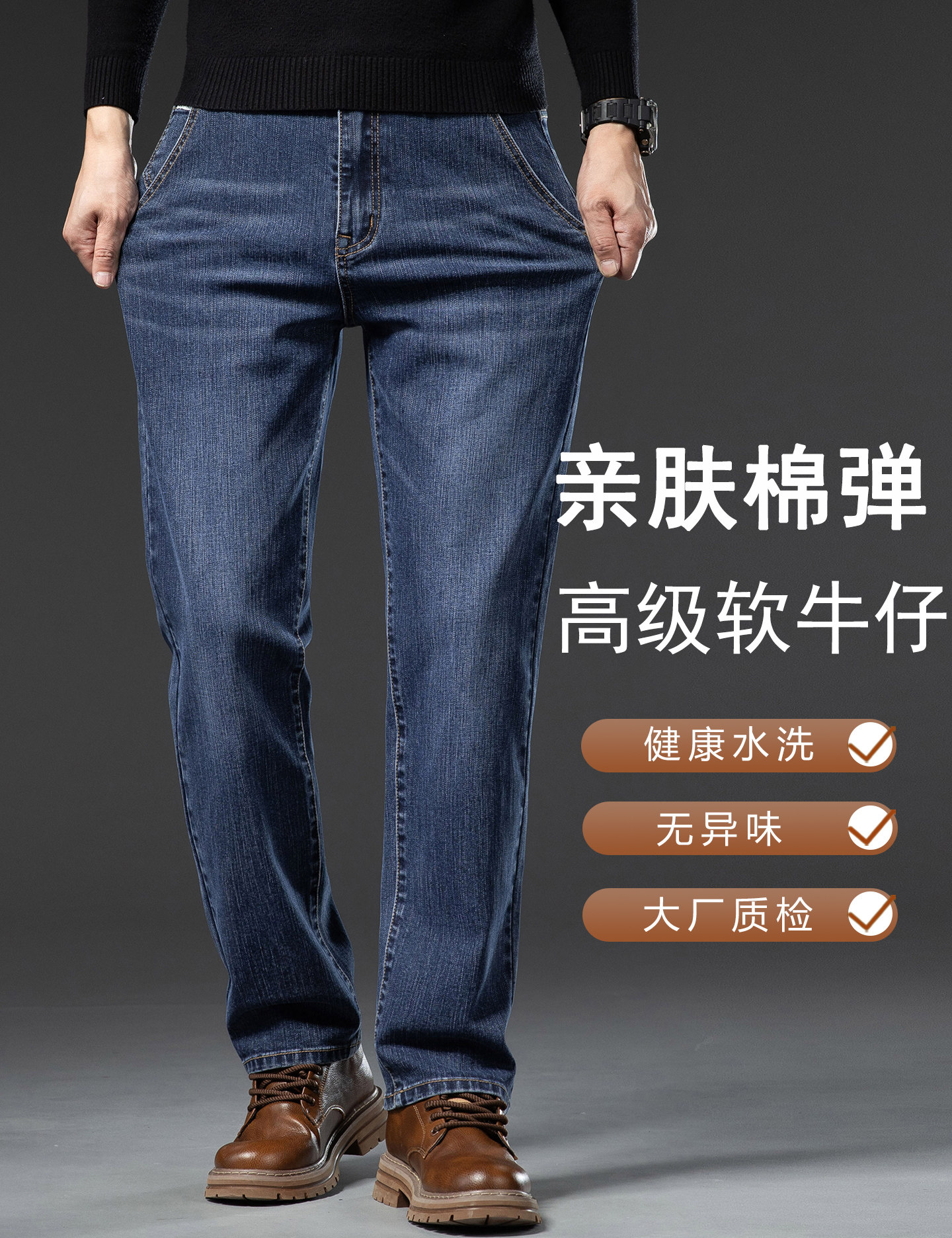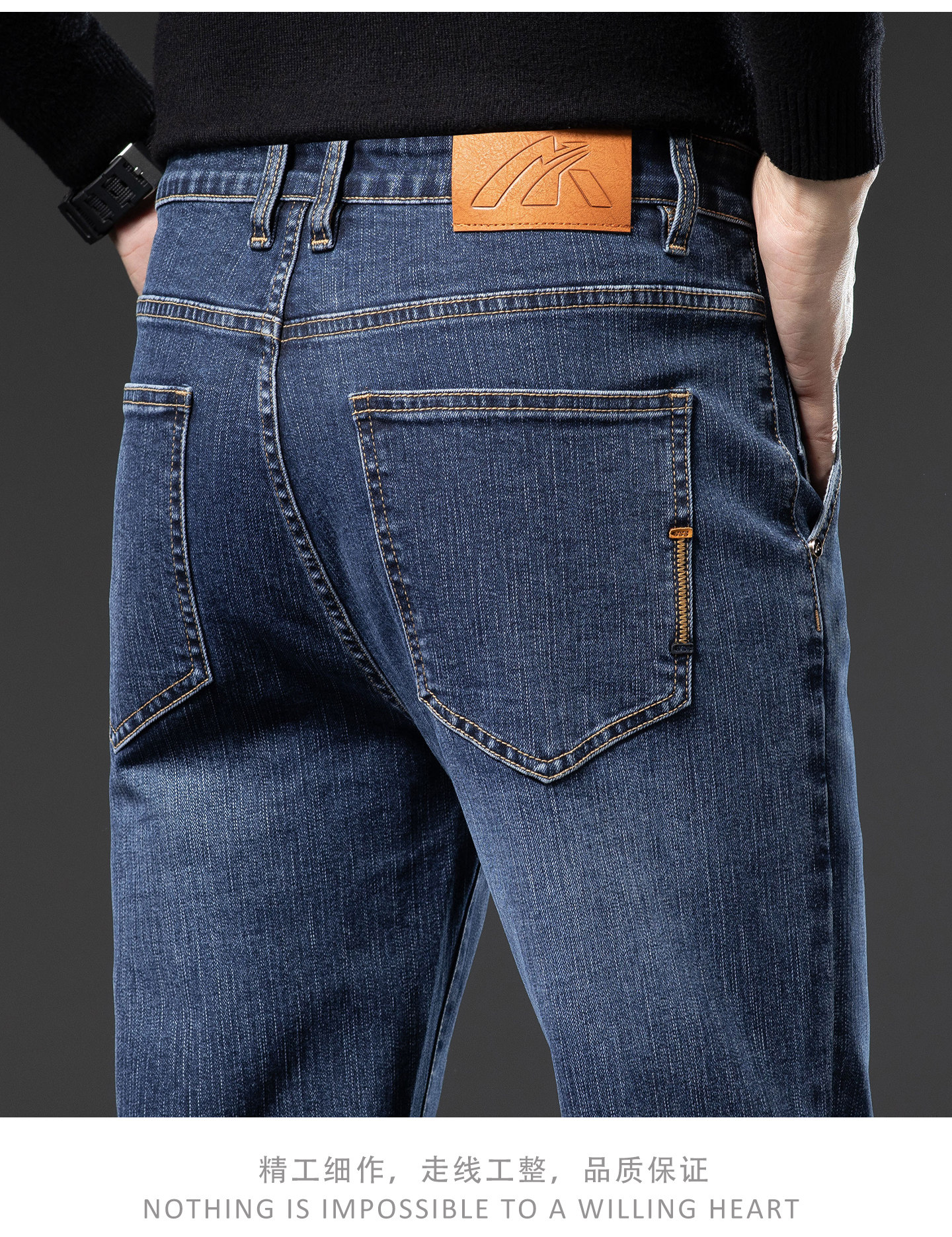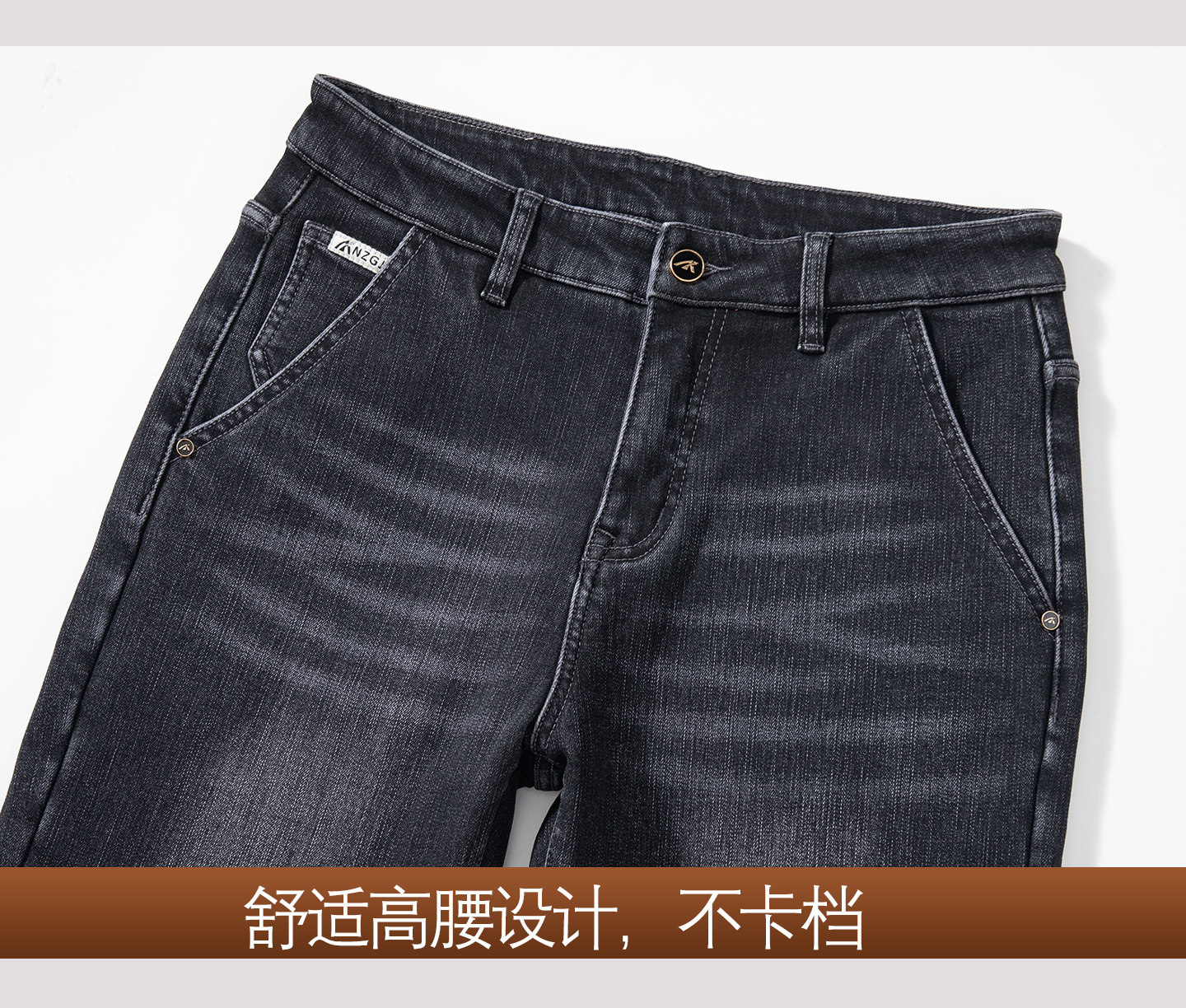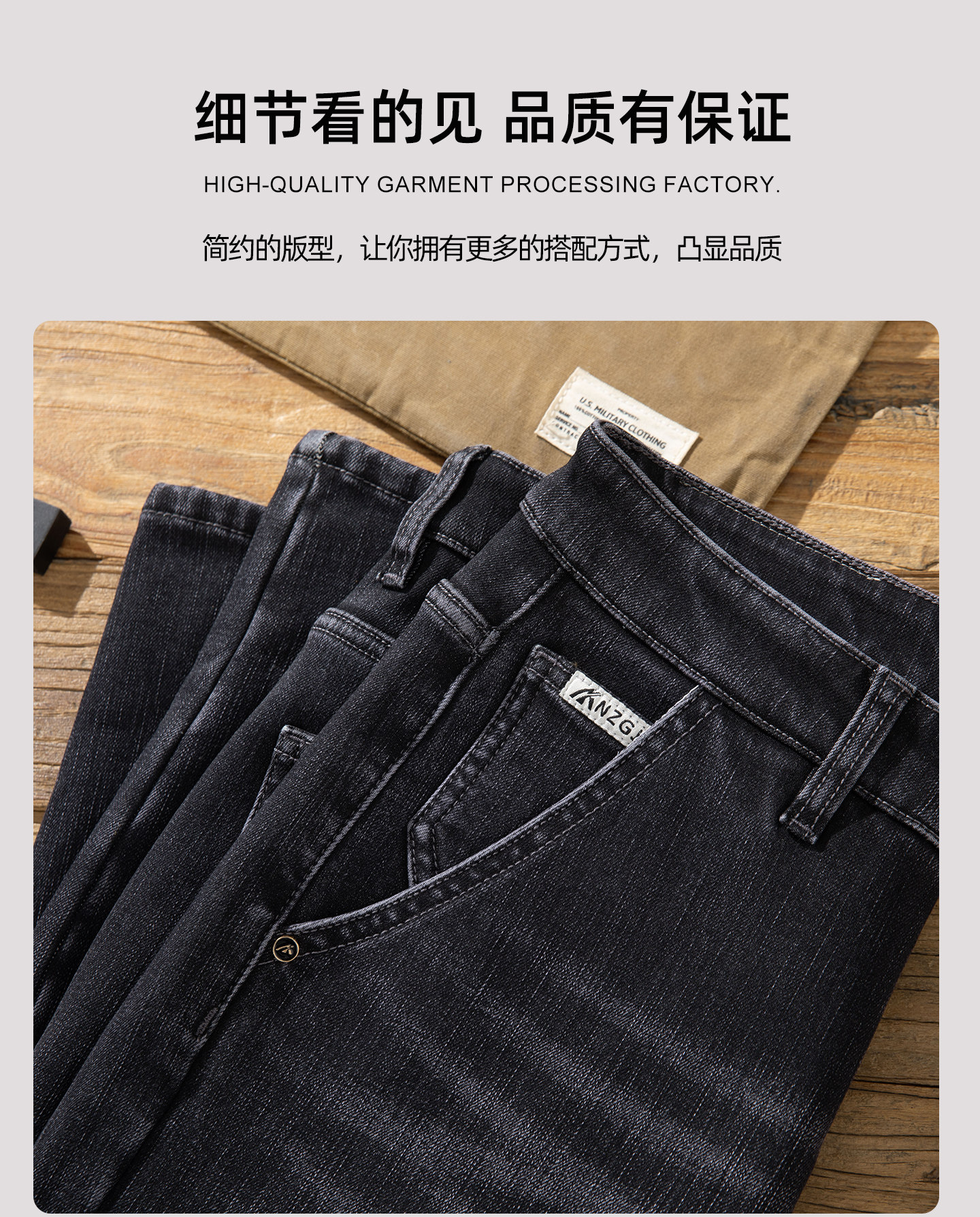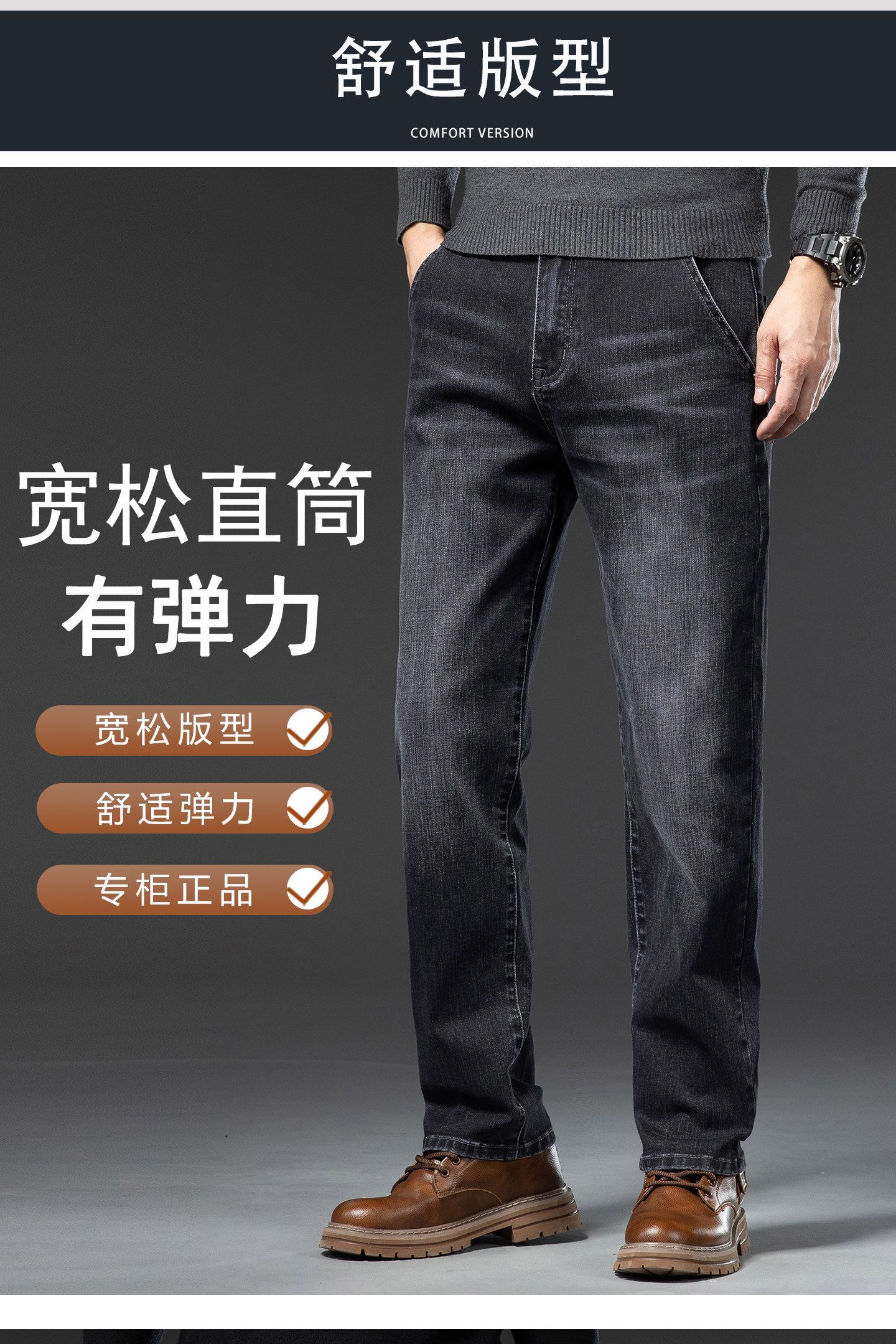 Woodpecker Men's Fleece-Lined Thickened Jeans Winter Ultra-Thick Warm Loose Straight-Leg Trousers Cold-Resistant Casual Pants
