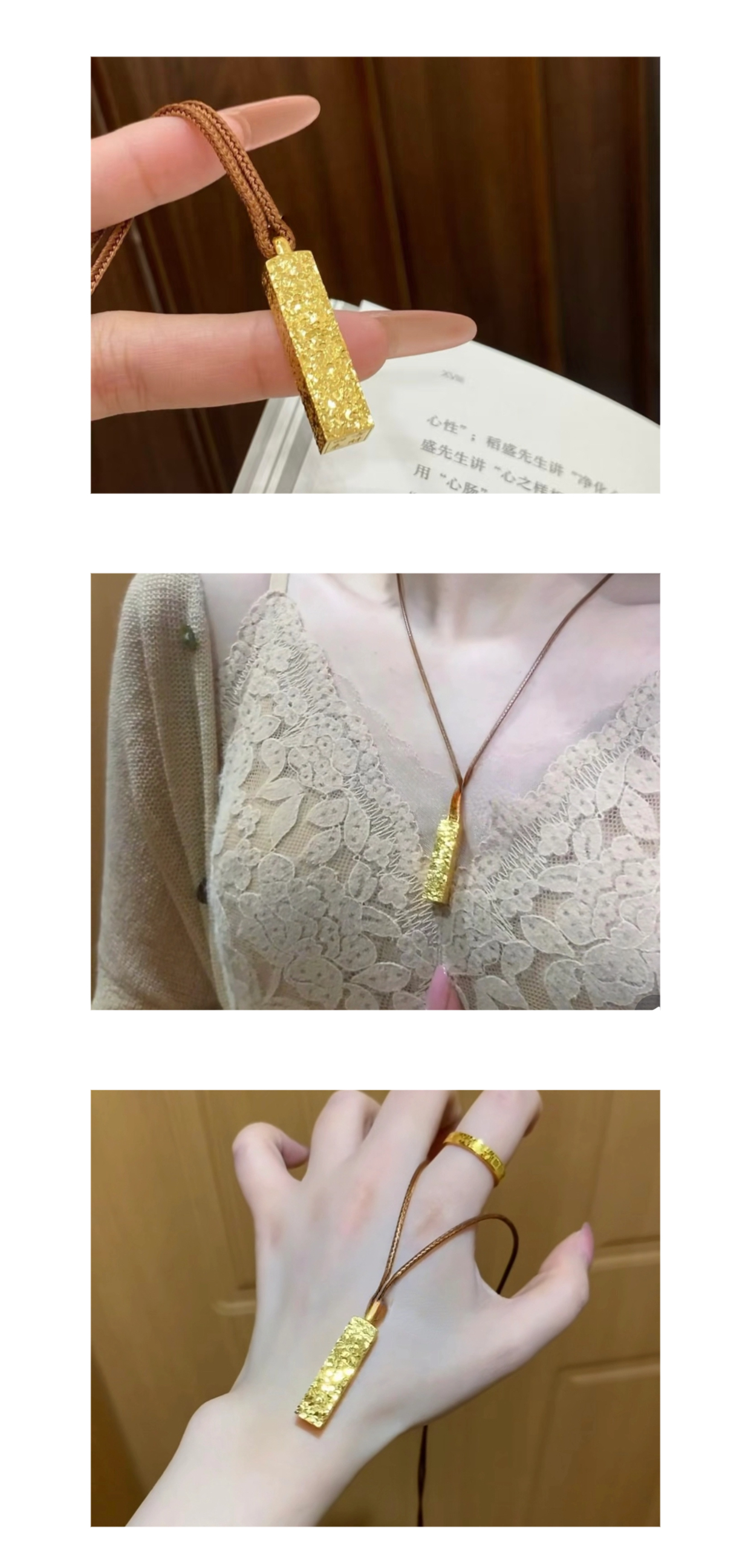 999 Pure Gold Crushed Ice Fortune Gold Bar Pendant Double Eleven Fan Welfare C8306