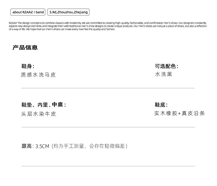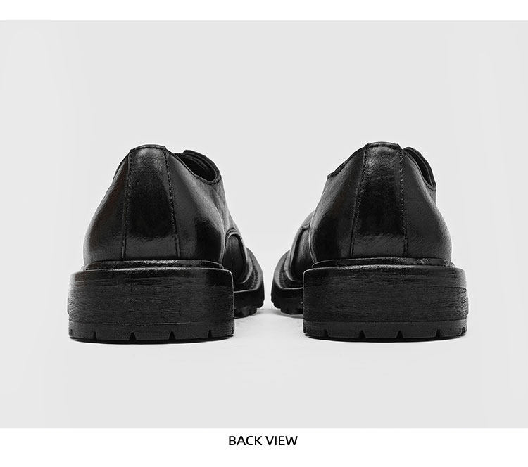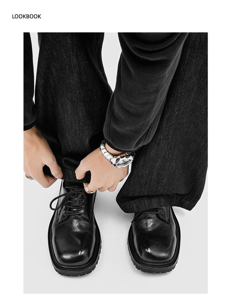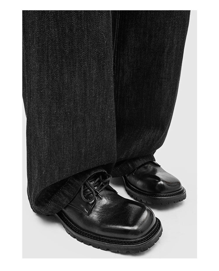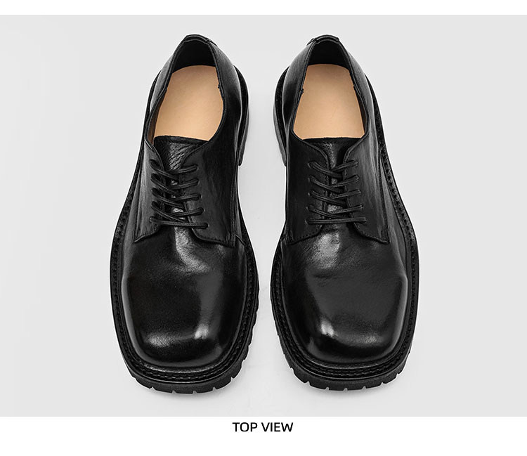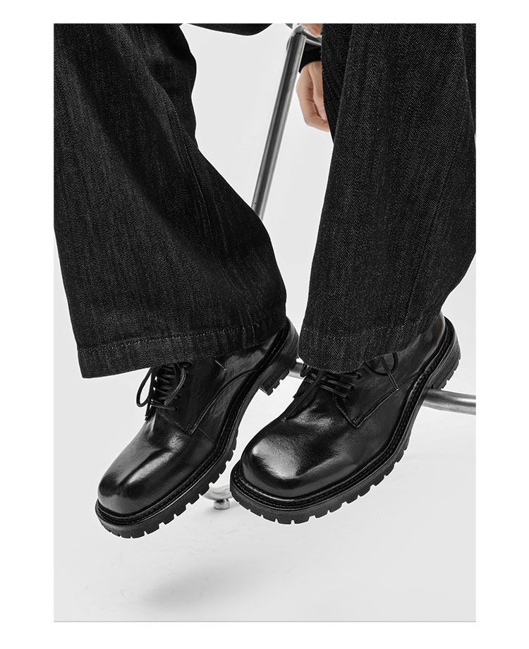 Rzaaz Beveled Square-Toe Washed Horsehide Derby Shoes for Men, Goodyear Handmade Men's Shoes, Dark Avant-Garde Thick-Soled Leather Shoes