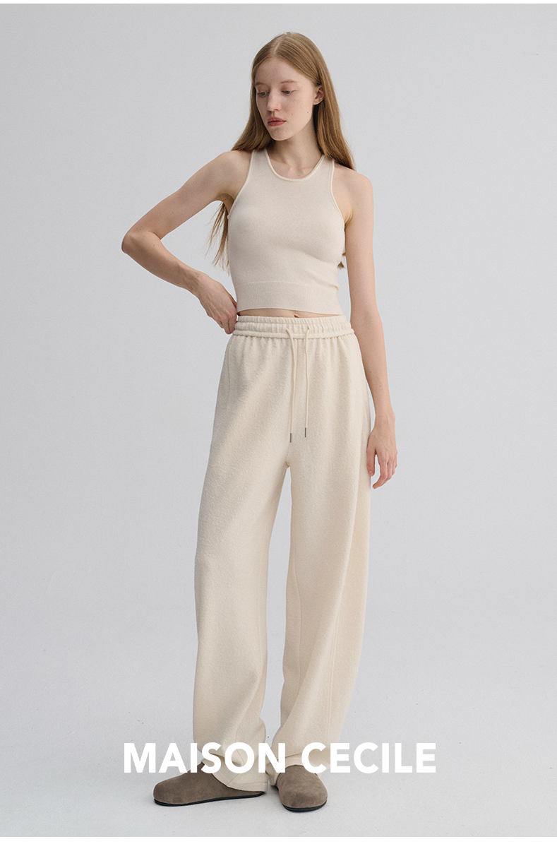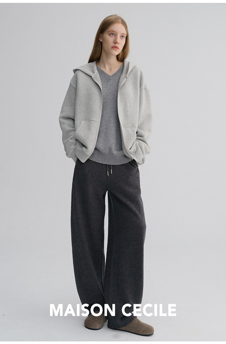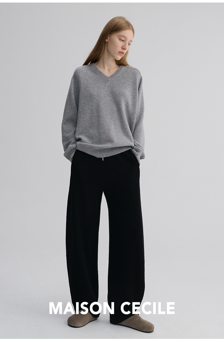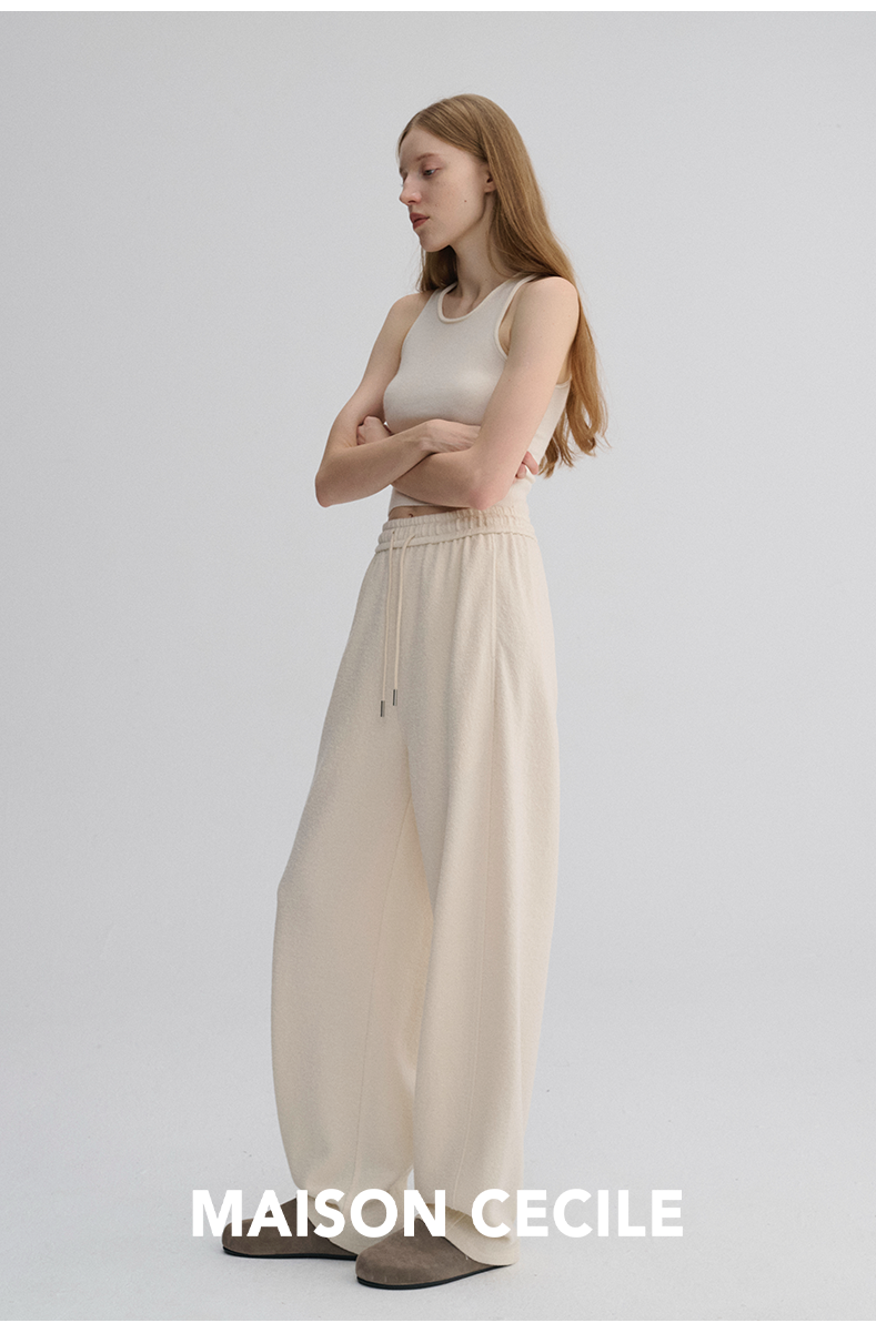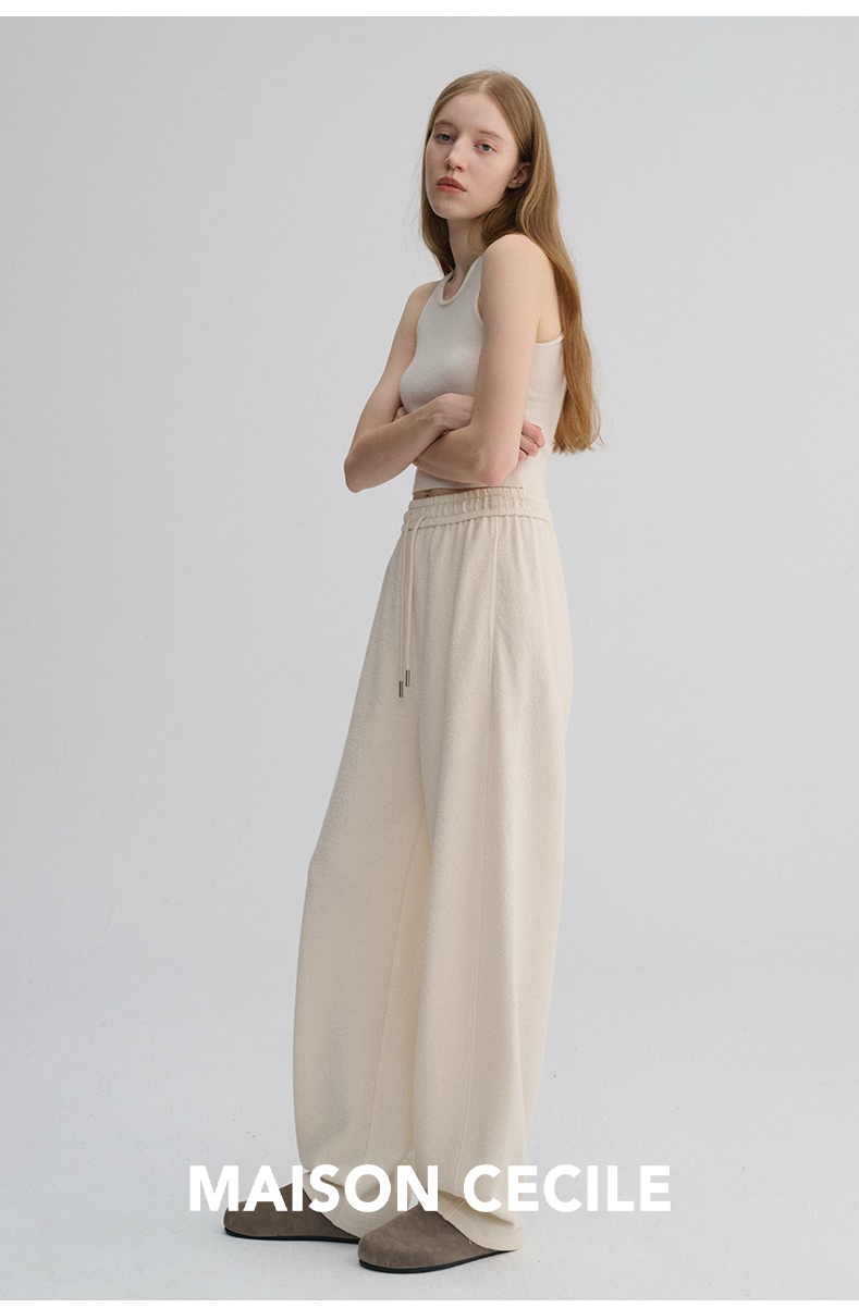 Maison Cecile Three-Color/Thick Version Tencel Wool Drapey Slimming Drawstring Elastic Waist Curved Scimitar Pants