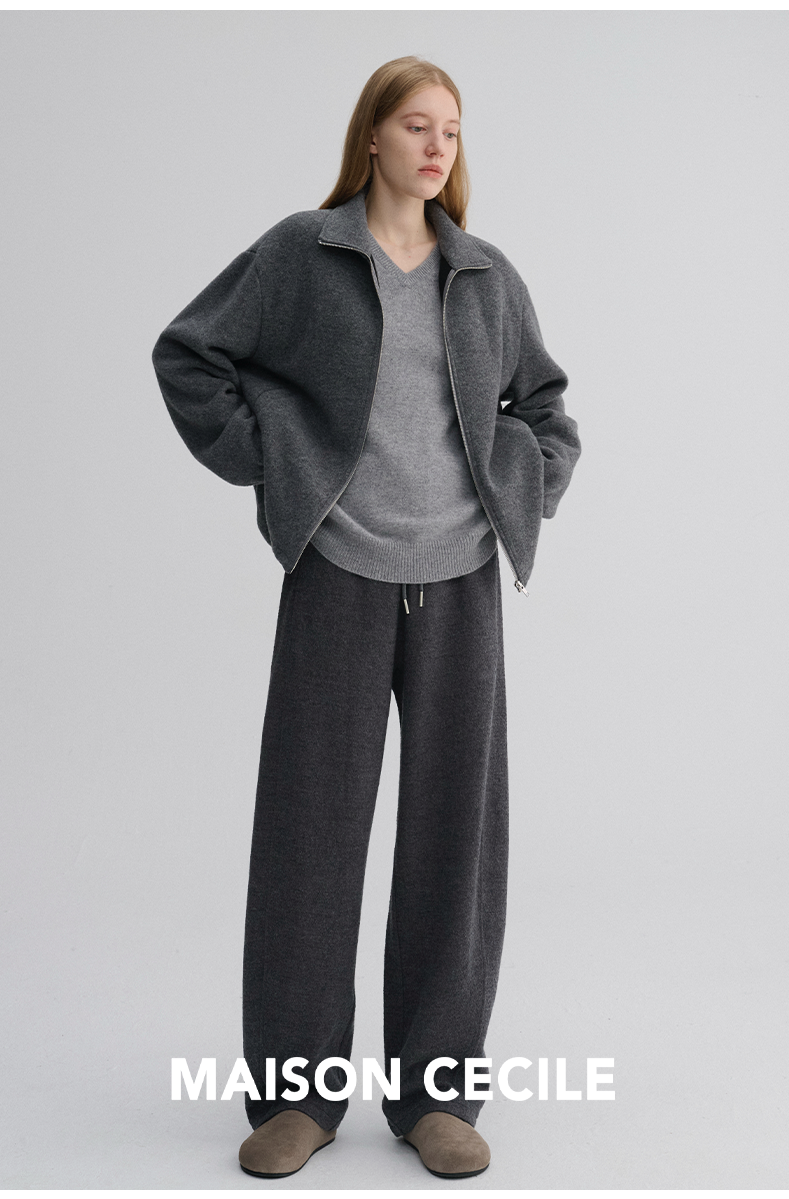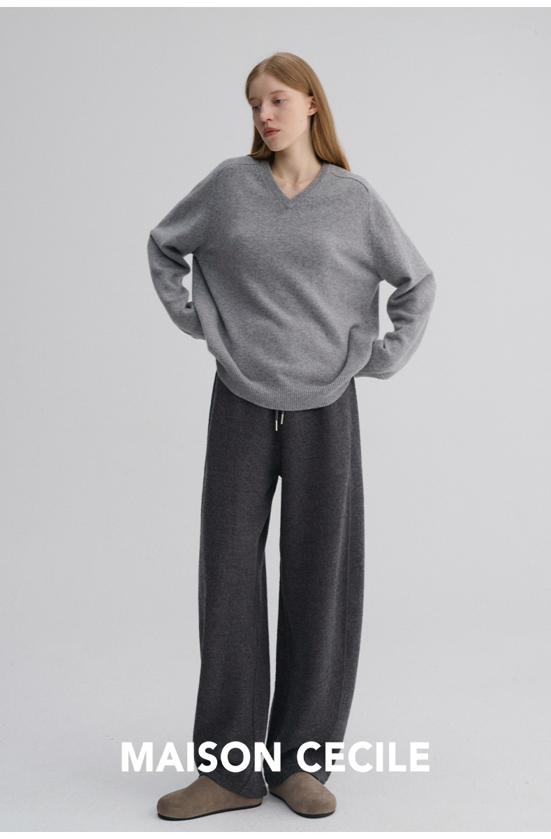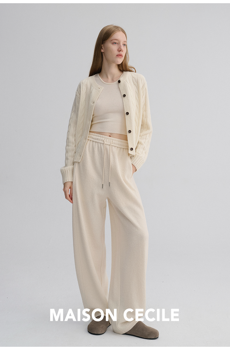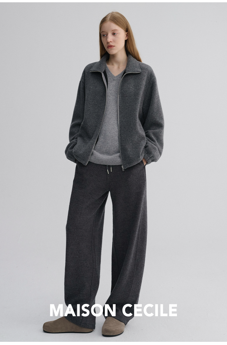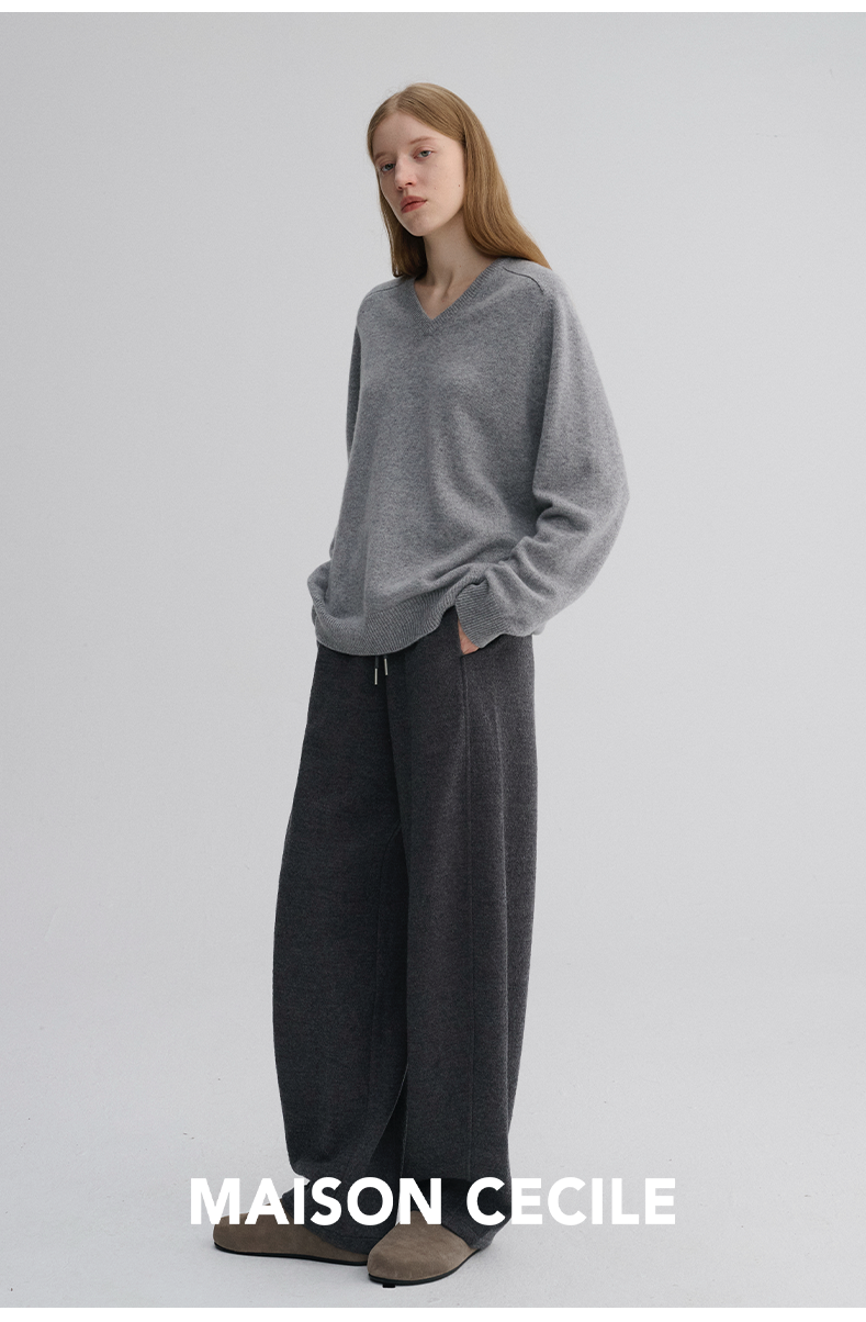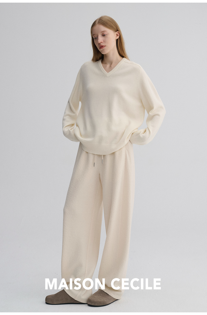 Maison Cecile Three-Color/Thick Version Tencel Wool Drapey Slimming Drawstring Elastic Waist Curved Scimitar Pants
