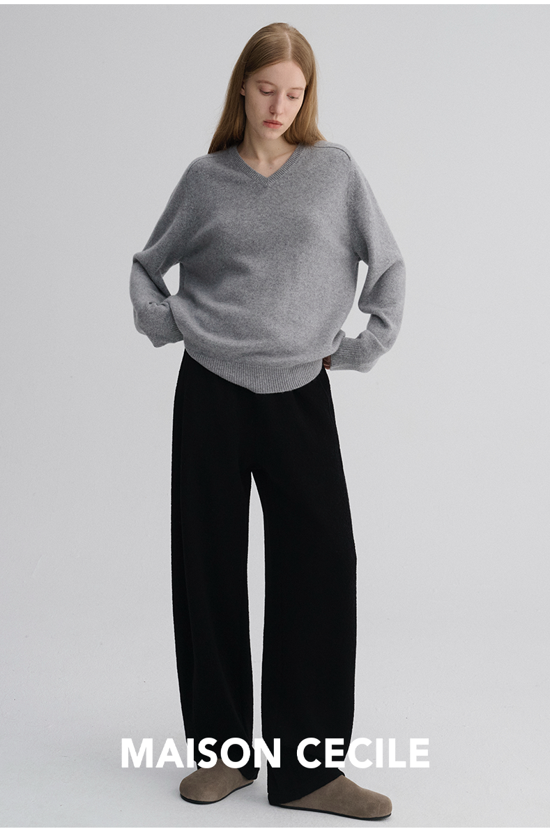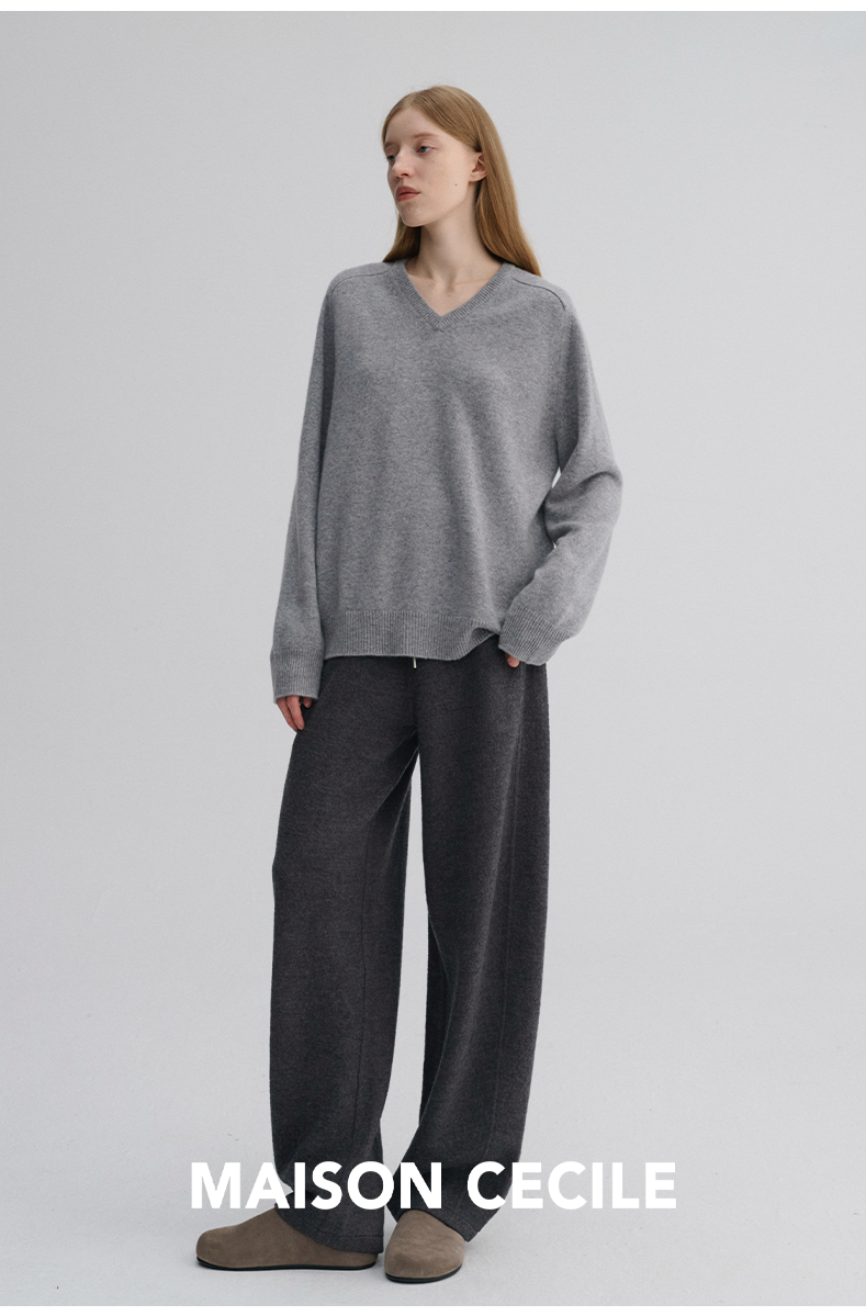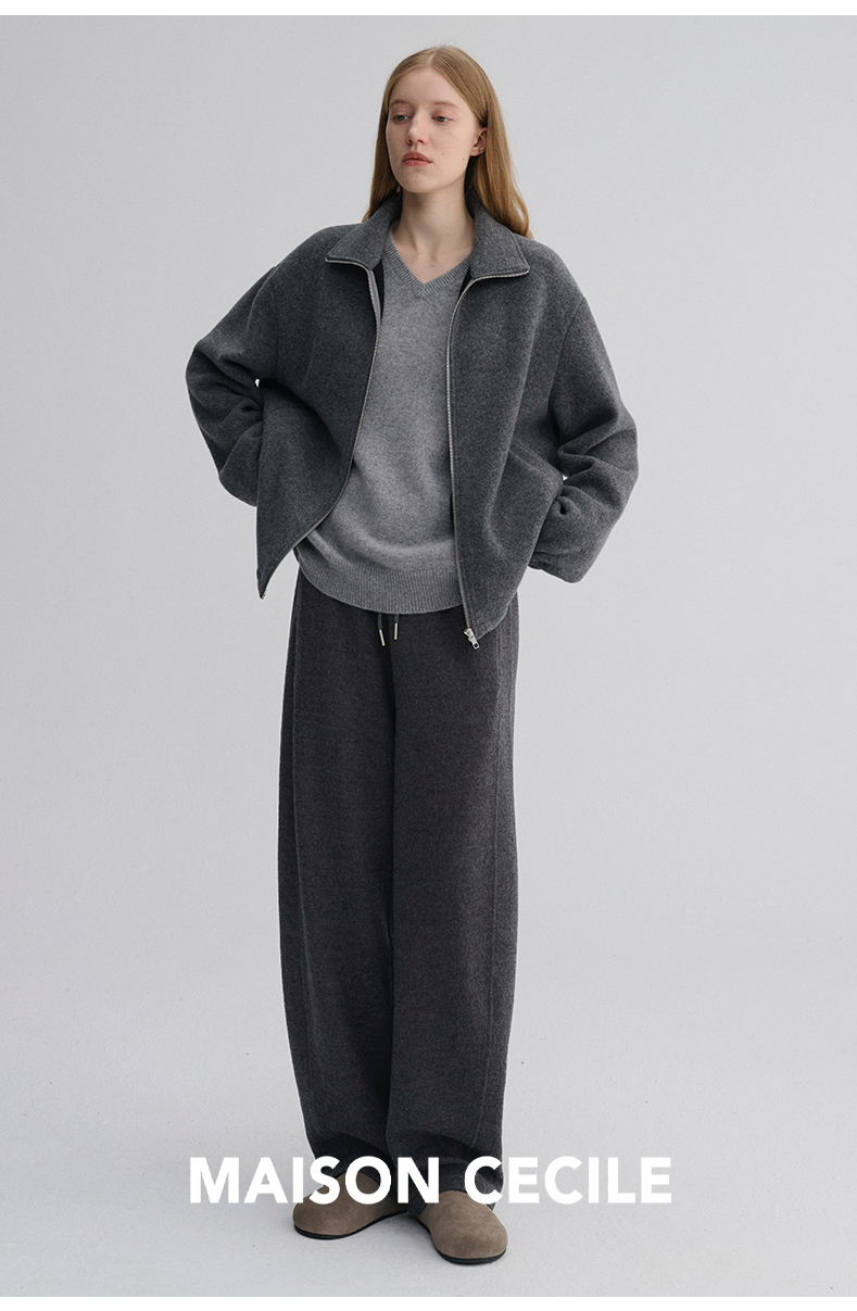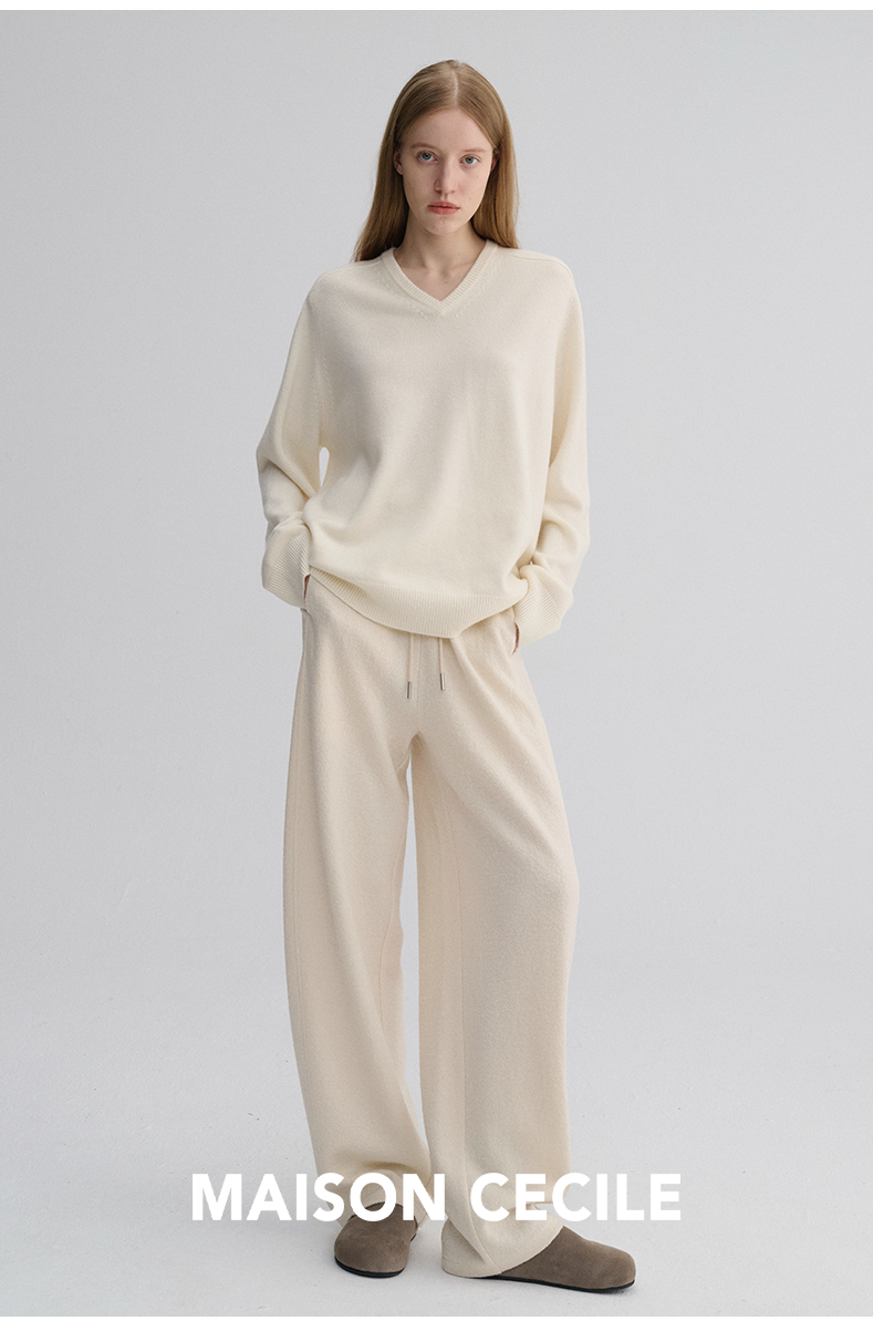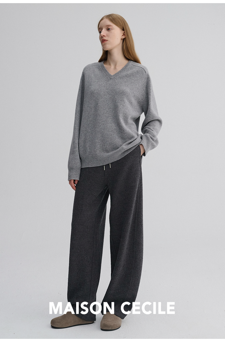 Maison Cecile Three-Color/Thick Version Tencel Wool Drapey Slimming Drawstring Elastic Waist Curved Scimitar Pants