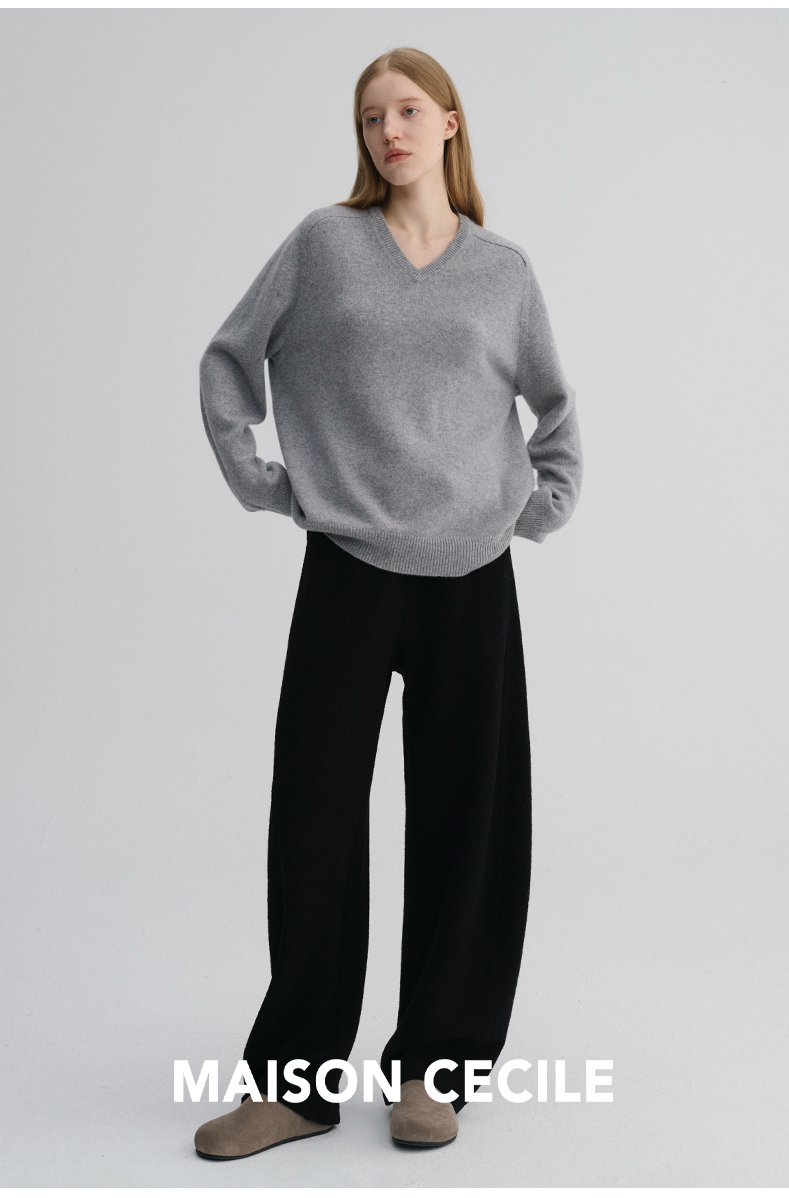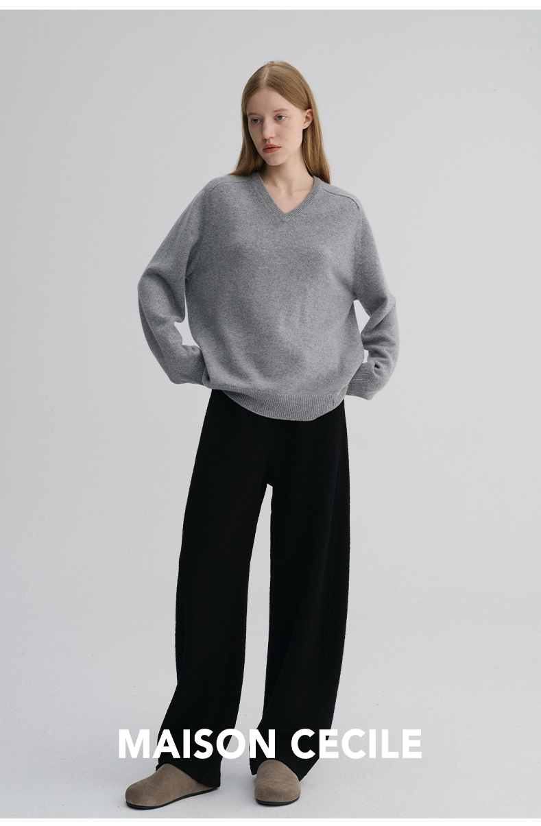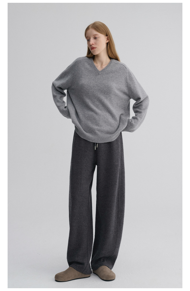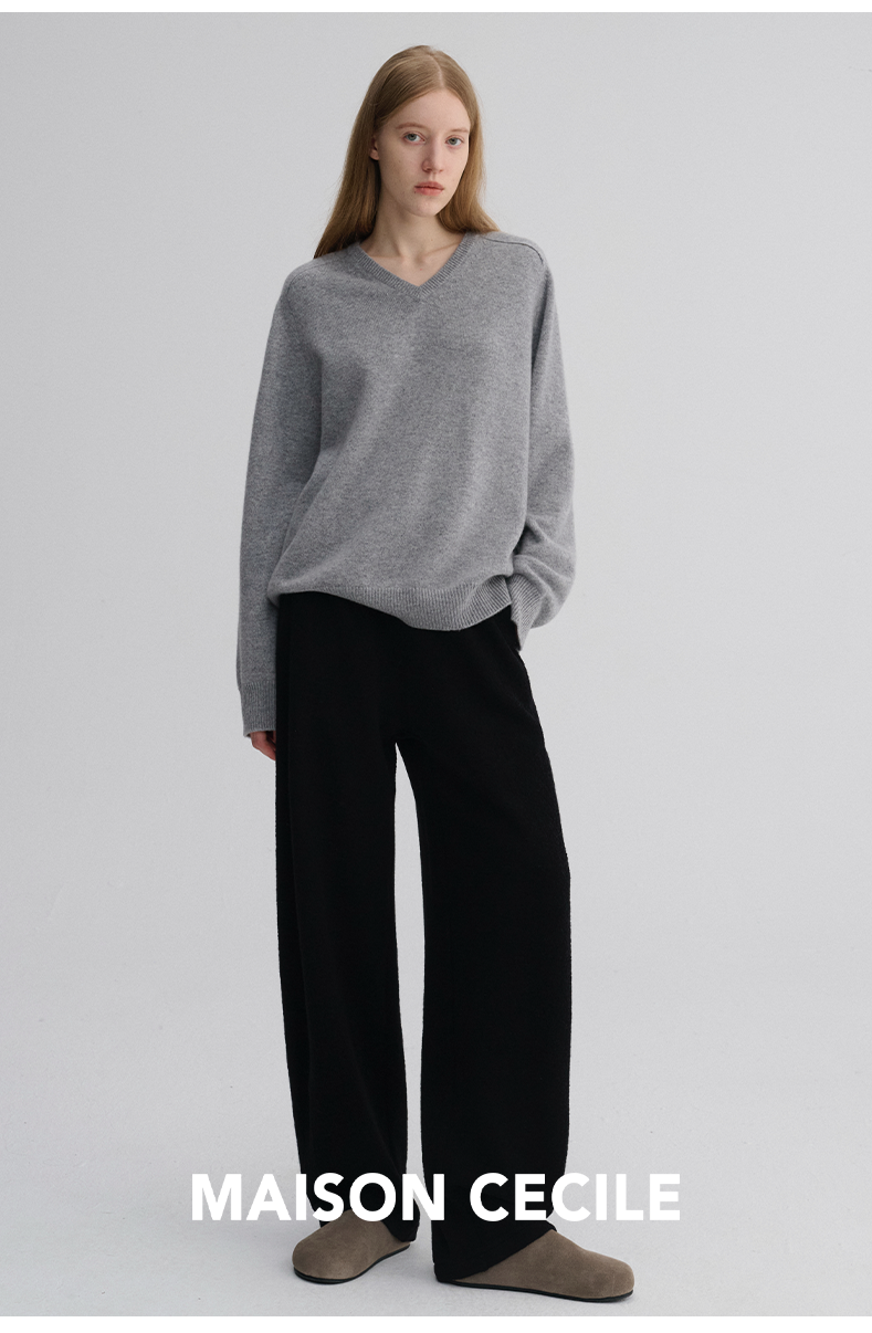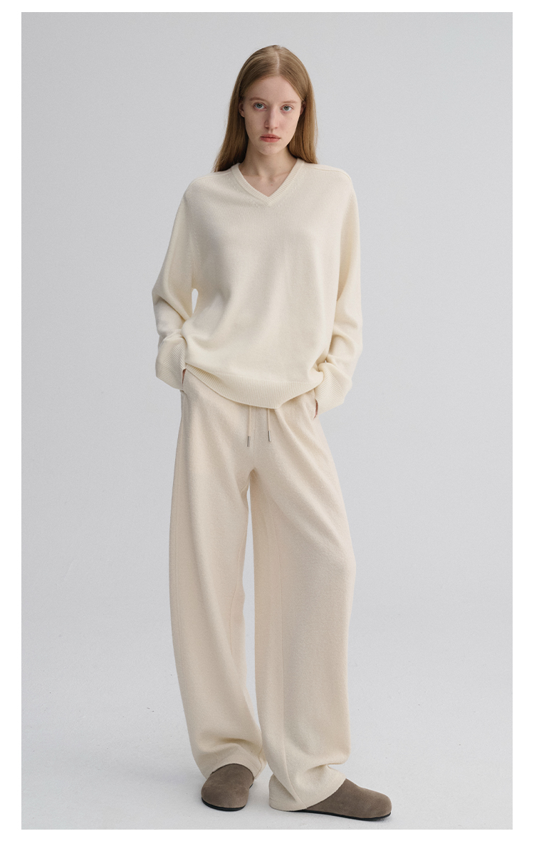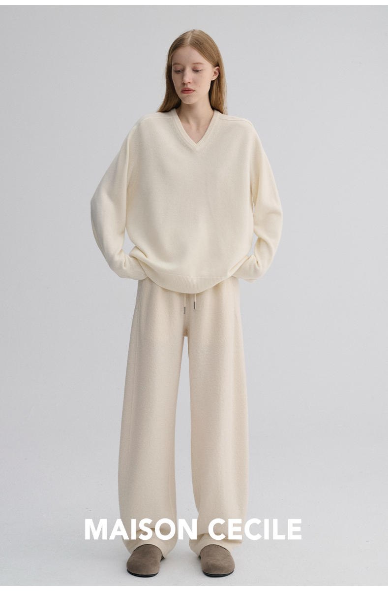 Maison Cecile Three-Color/Thick Version Tencel Wool Drapey Slimming Drawstring Elastic Waist Curved Scimitar Pants