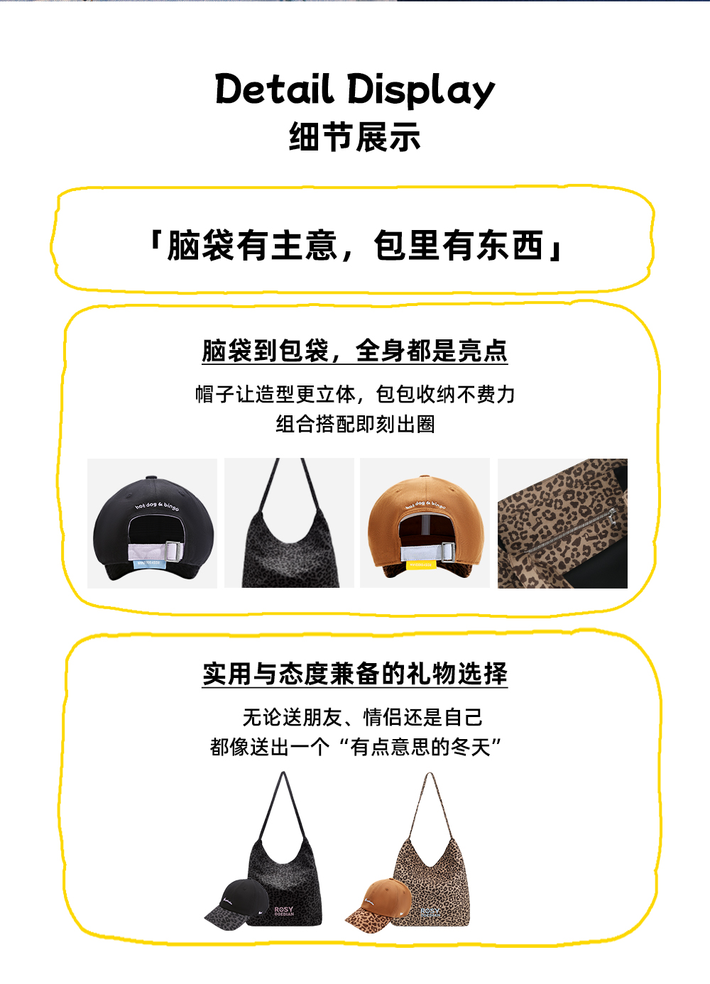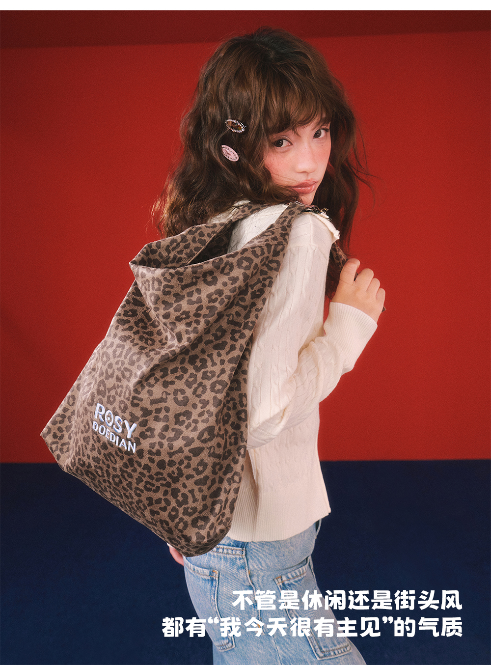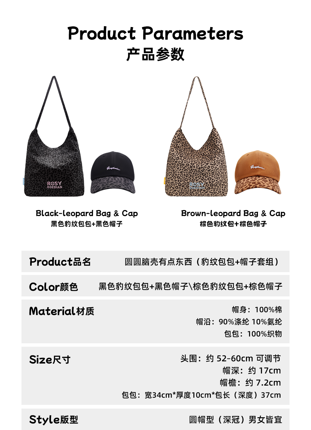 Rosydoedian Round Head Has Something Special, Bag and Hat Combination Set, Leopard Print Commuter Suit