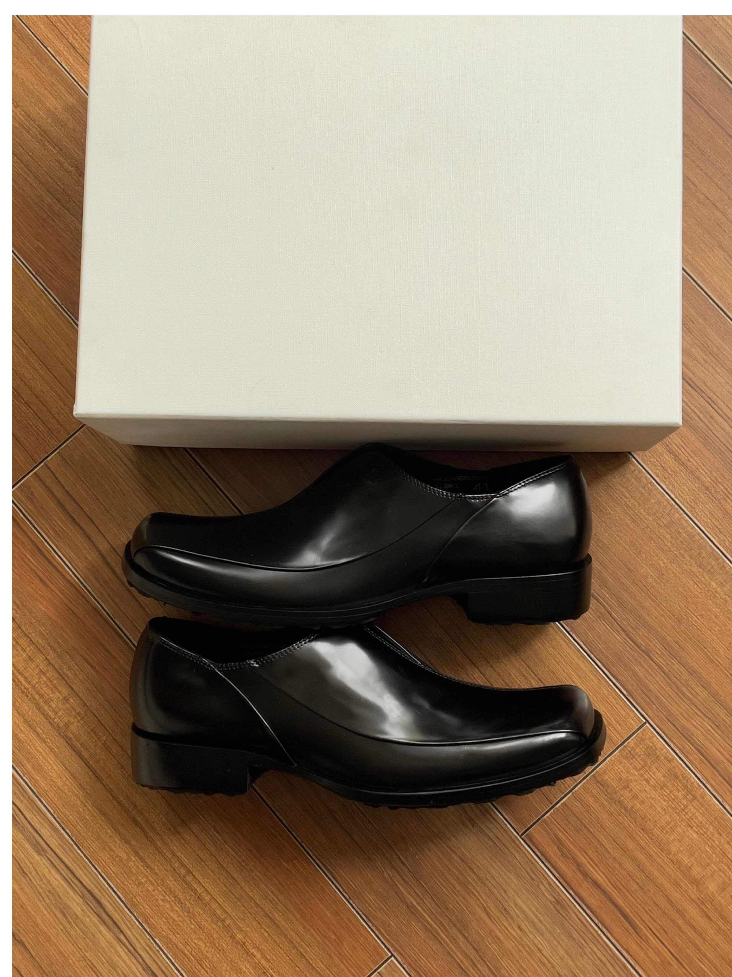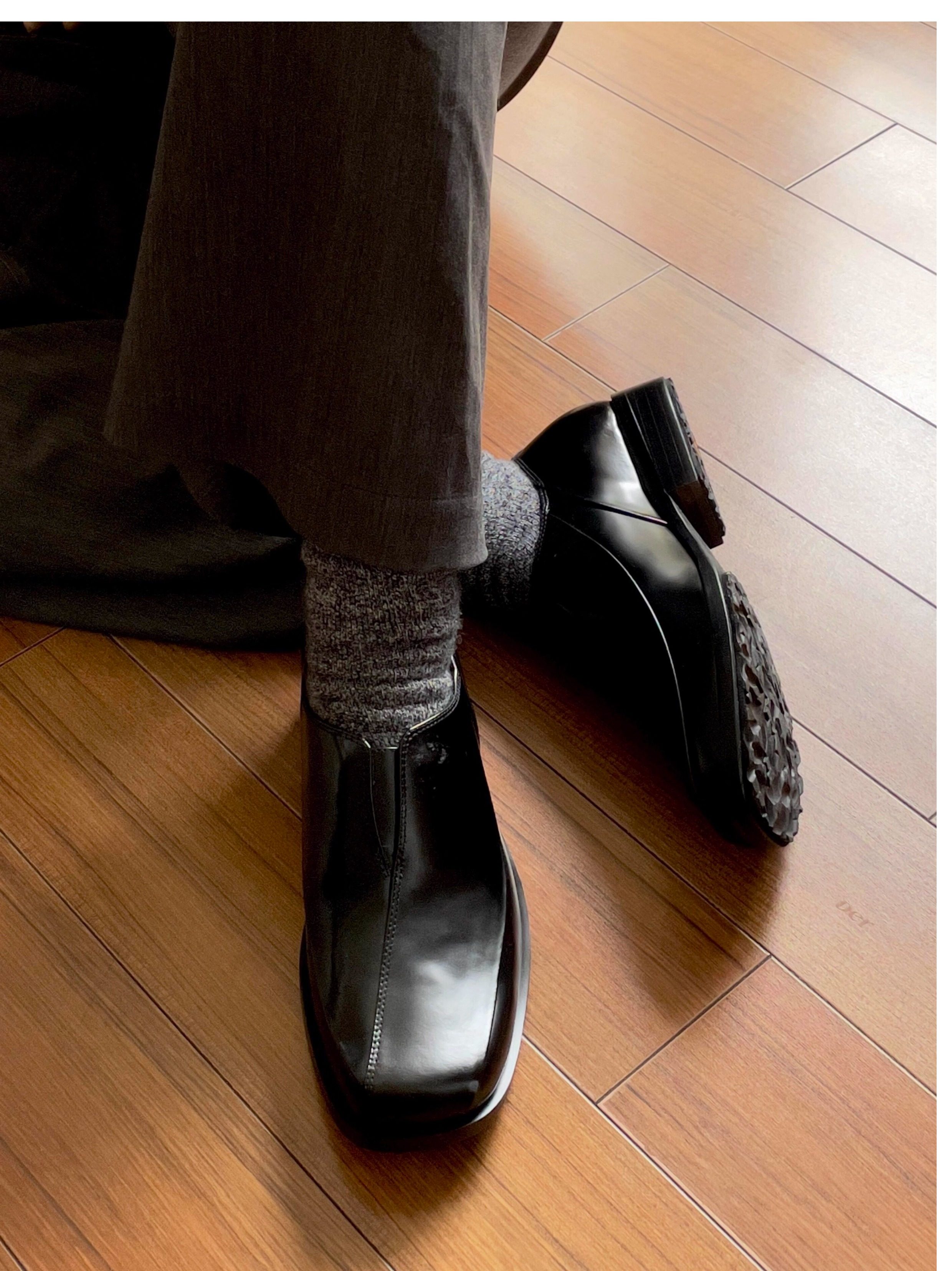 Dark Retro Square-Toe Stitched Casual Leather Shoes for Men and Women, Chunky Heel Derby Shoes, Slip-On Square-Toe Genuine Leather Loafers