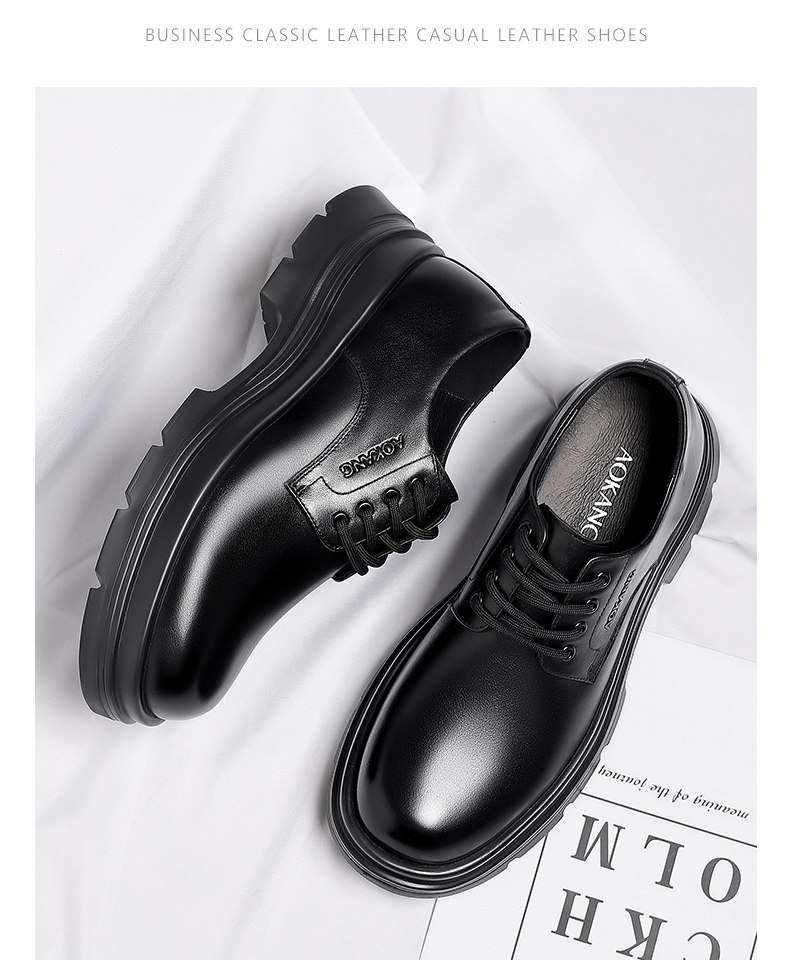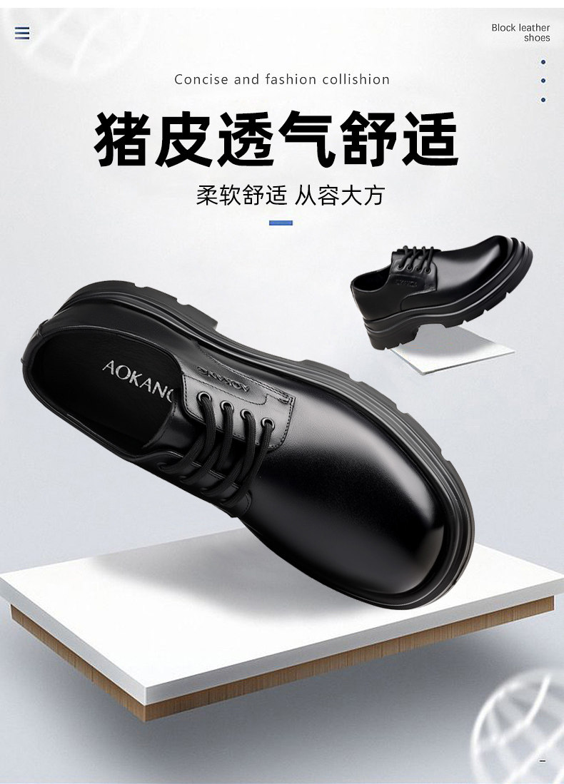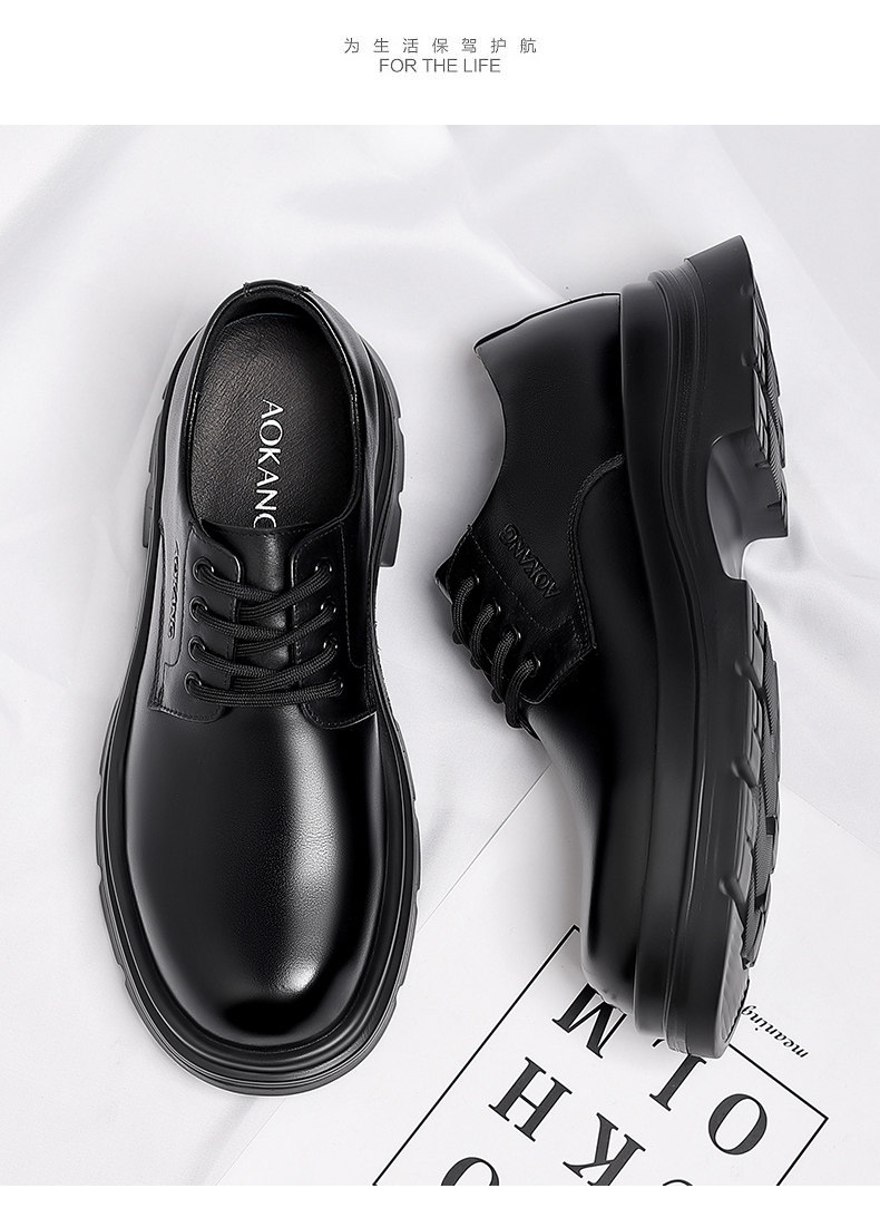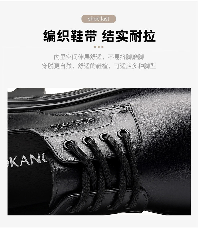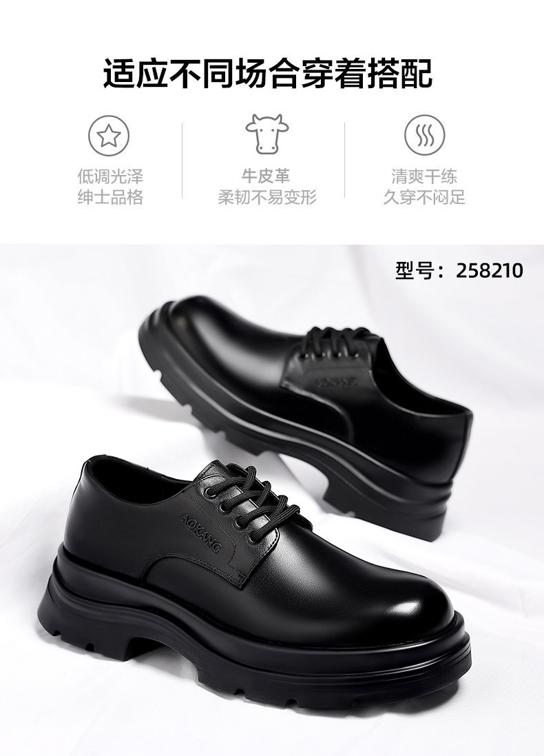 Aokang Men's Shoes 2026 Spring Men's Genuine Leather Breathable Business Casual Formal Thick-Soled Groom Wedding Leather Shoes H