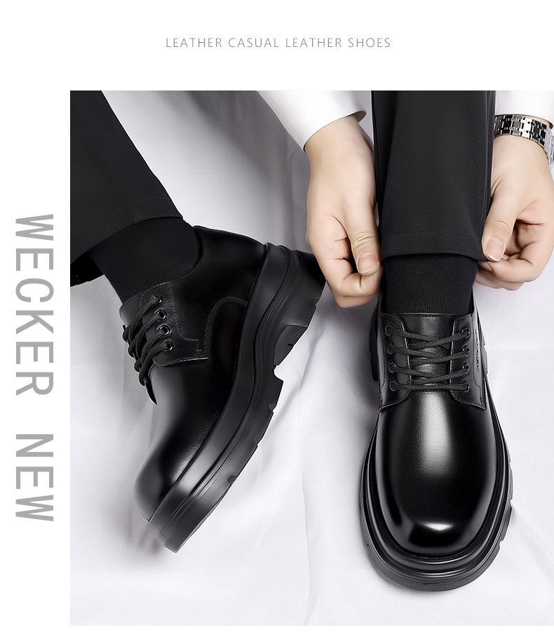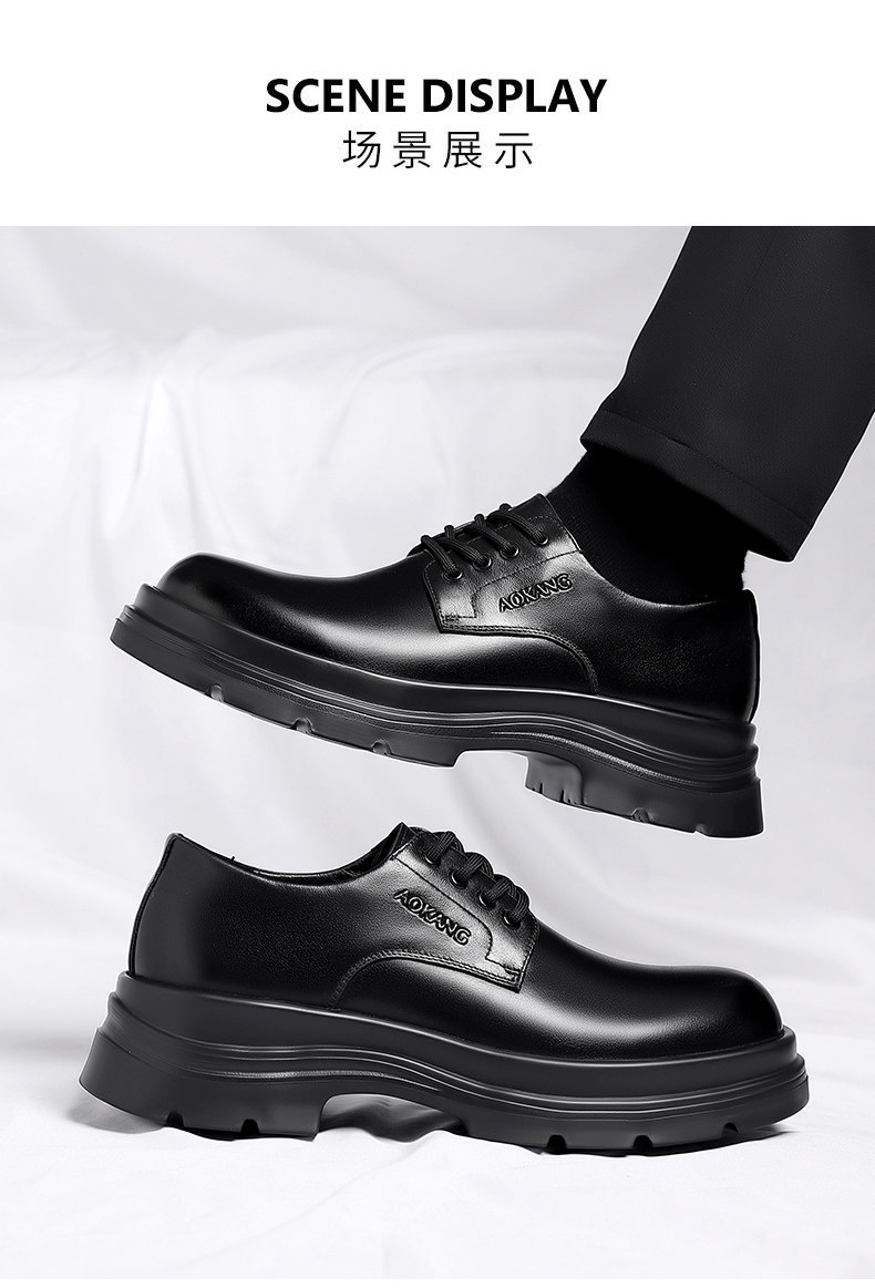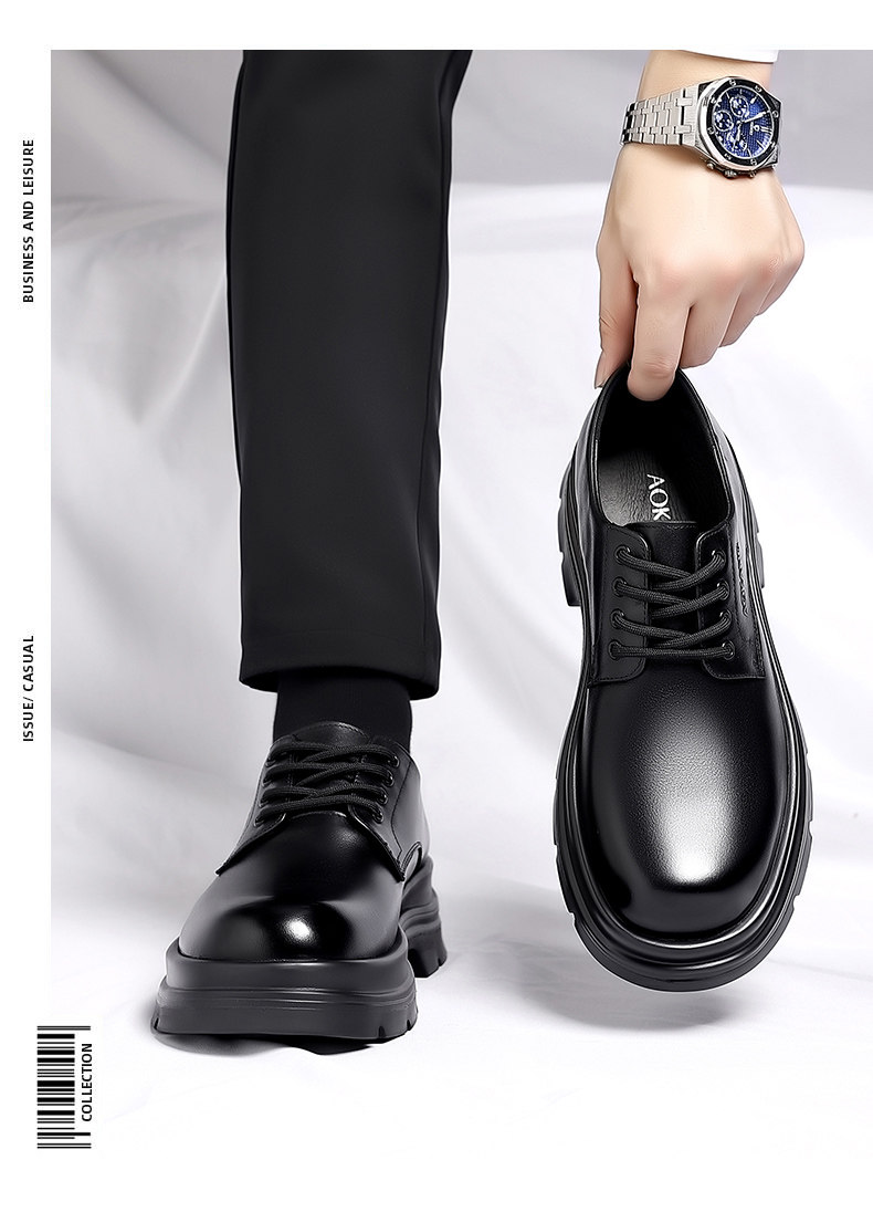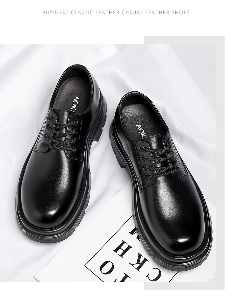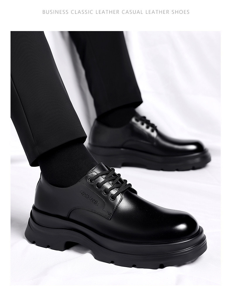 Aokang Men's Shoes 2026 Spring Men's Genuine Leather Breathable Business Casual Formal Thick-Soled Groom Wedding Leather Shoes H