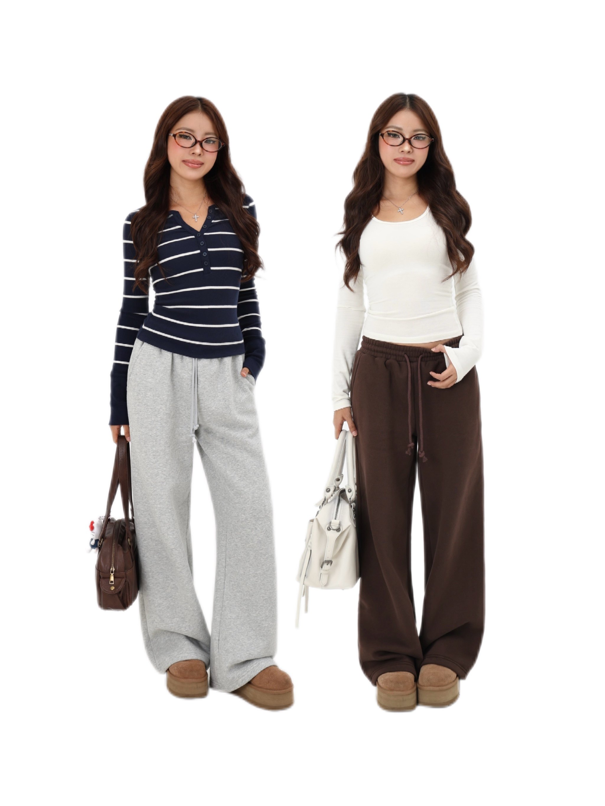 Mimiette Petite Fleece-Lined Loose Straight-Leg Sweatpants 6653 Simple Slimming and Warm Pants for Autumn and Winter 25