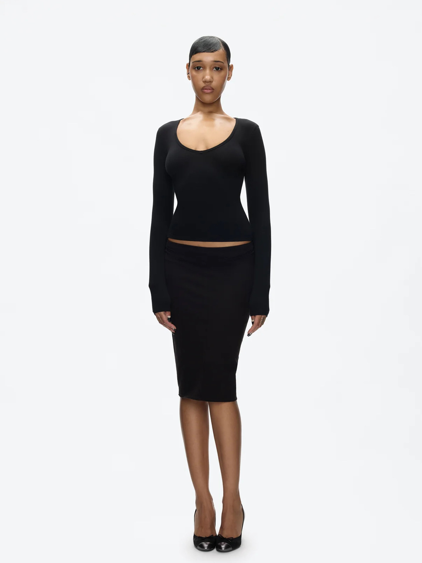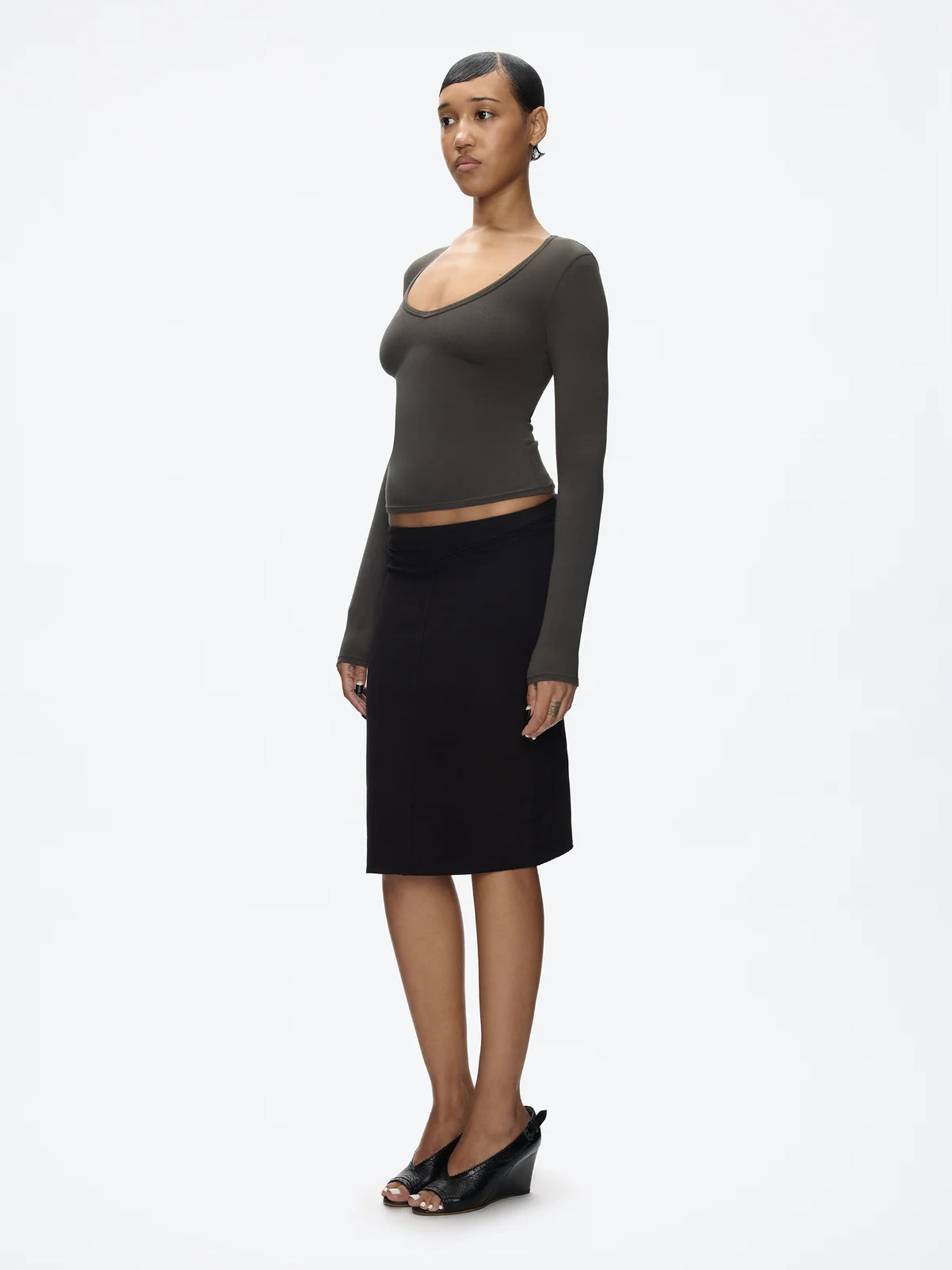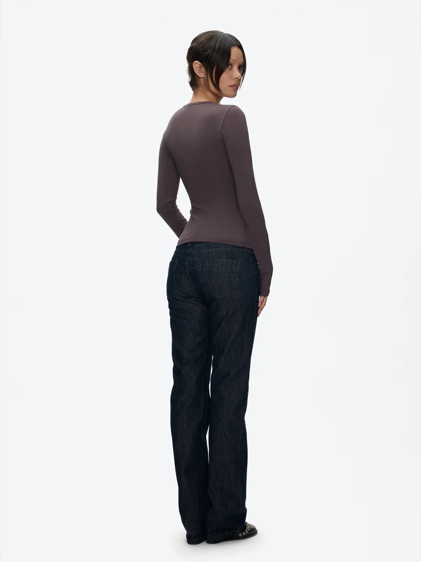 Tankair Grape Purple New V-Neck Slim Long Sleeve Cotton Stretch Series Solid Color Waist-Cinching Cut-Out Base Shirt