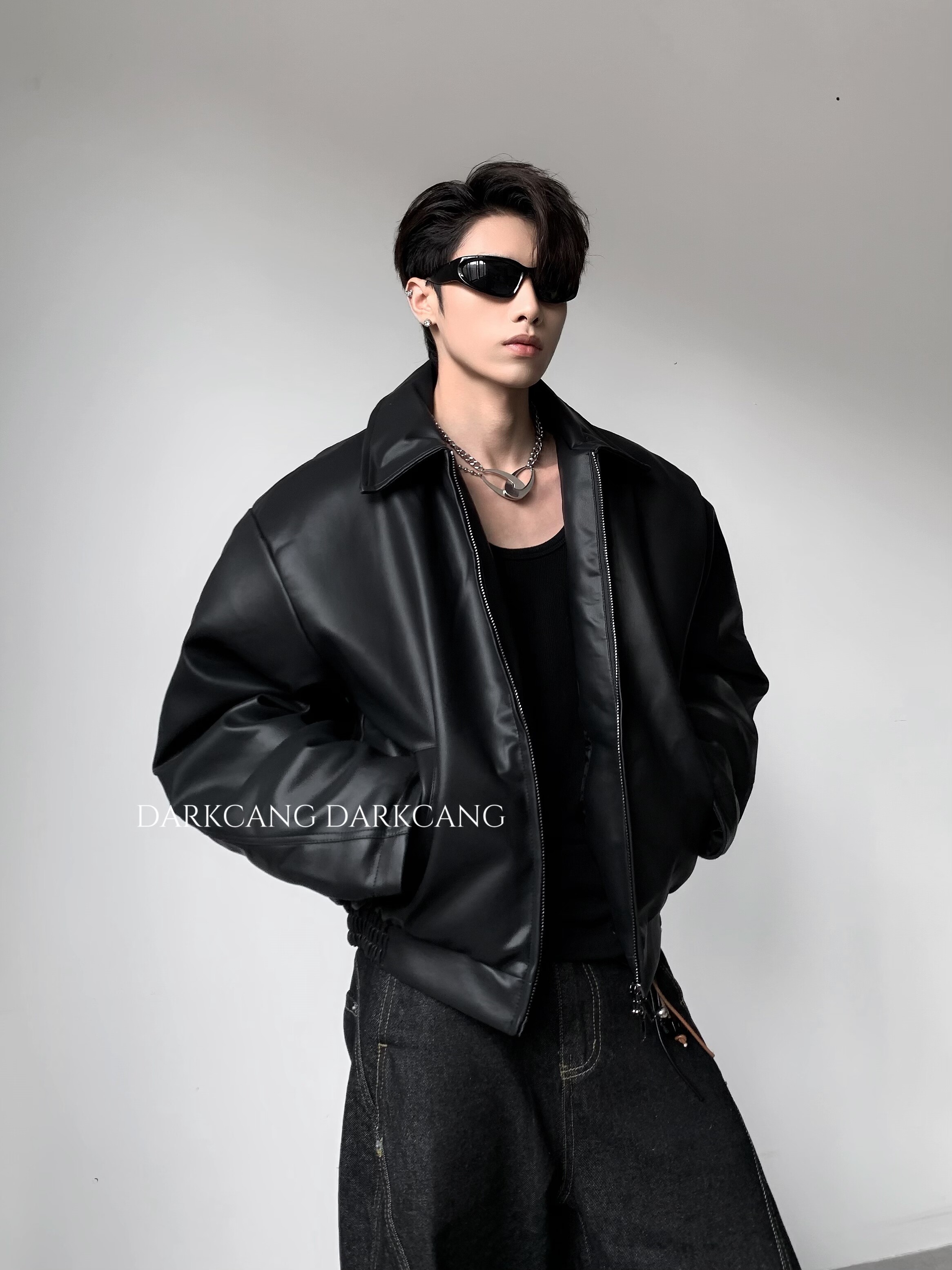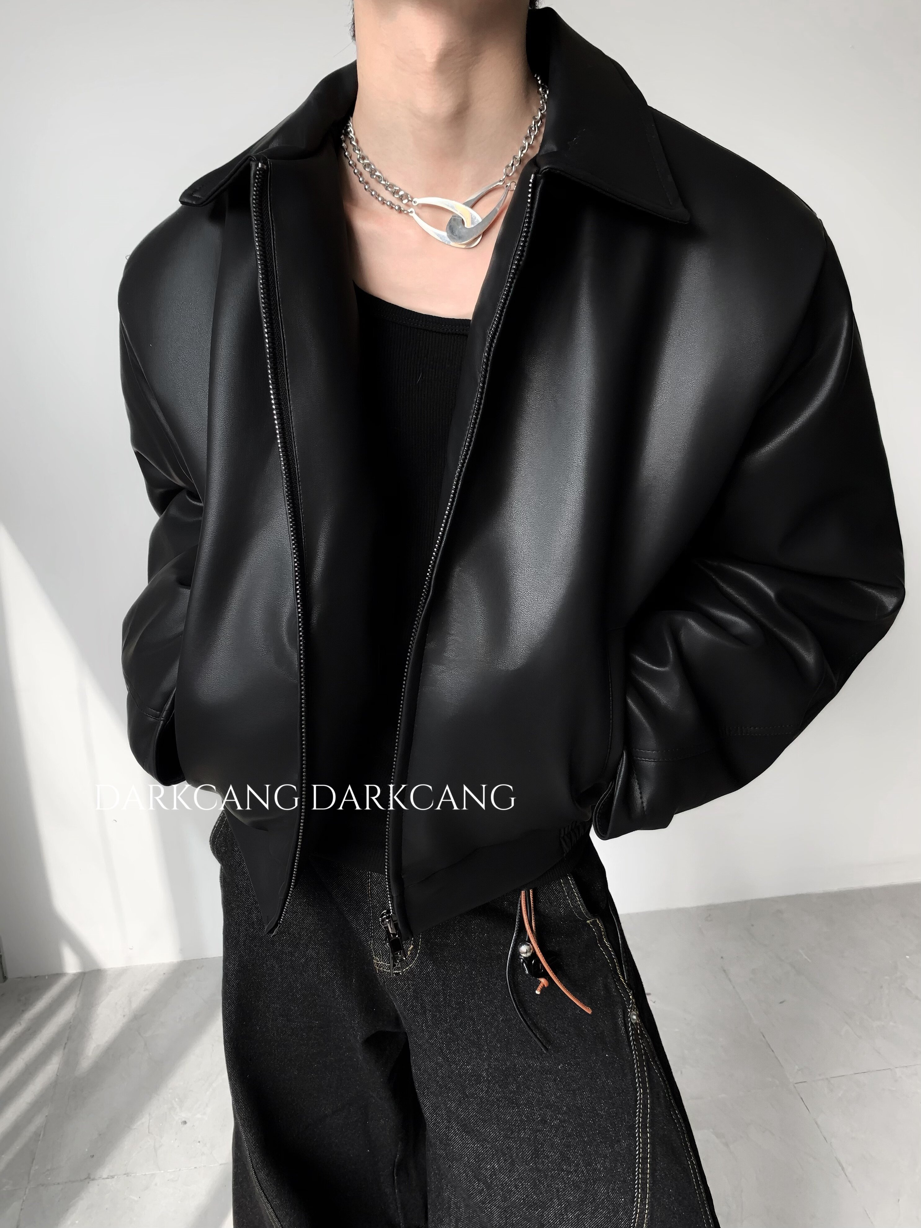 Black Cangshe/High-End Luxury Short Padded Leather Jacket for Men, Winter Thickened Cleanfit Jacket with a Cool and Stylish Look