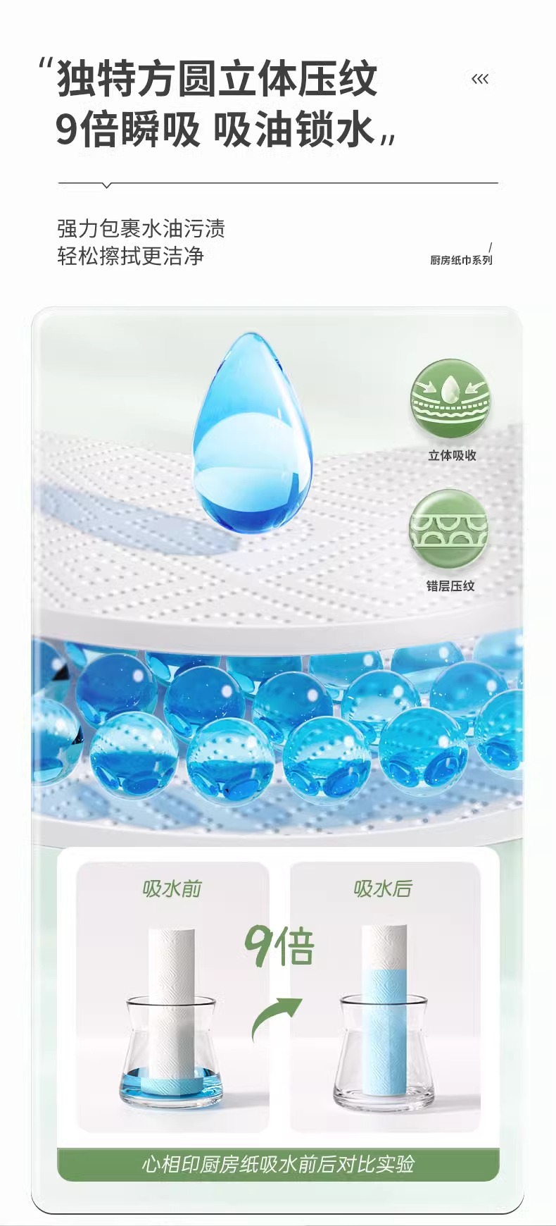 Xinxiangyin Kitchen Paper Hanging Type Kitchen Tissue Paper Absorbent Double-Layer Thickened Can Be Used When Wet