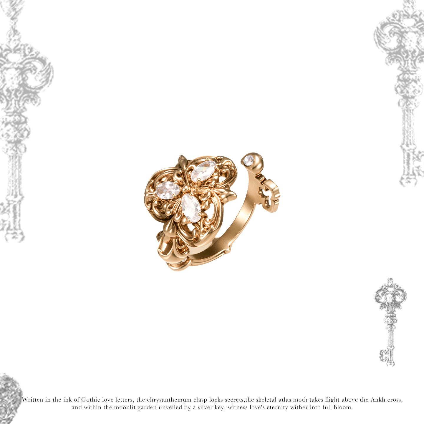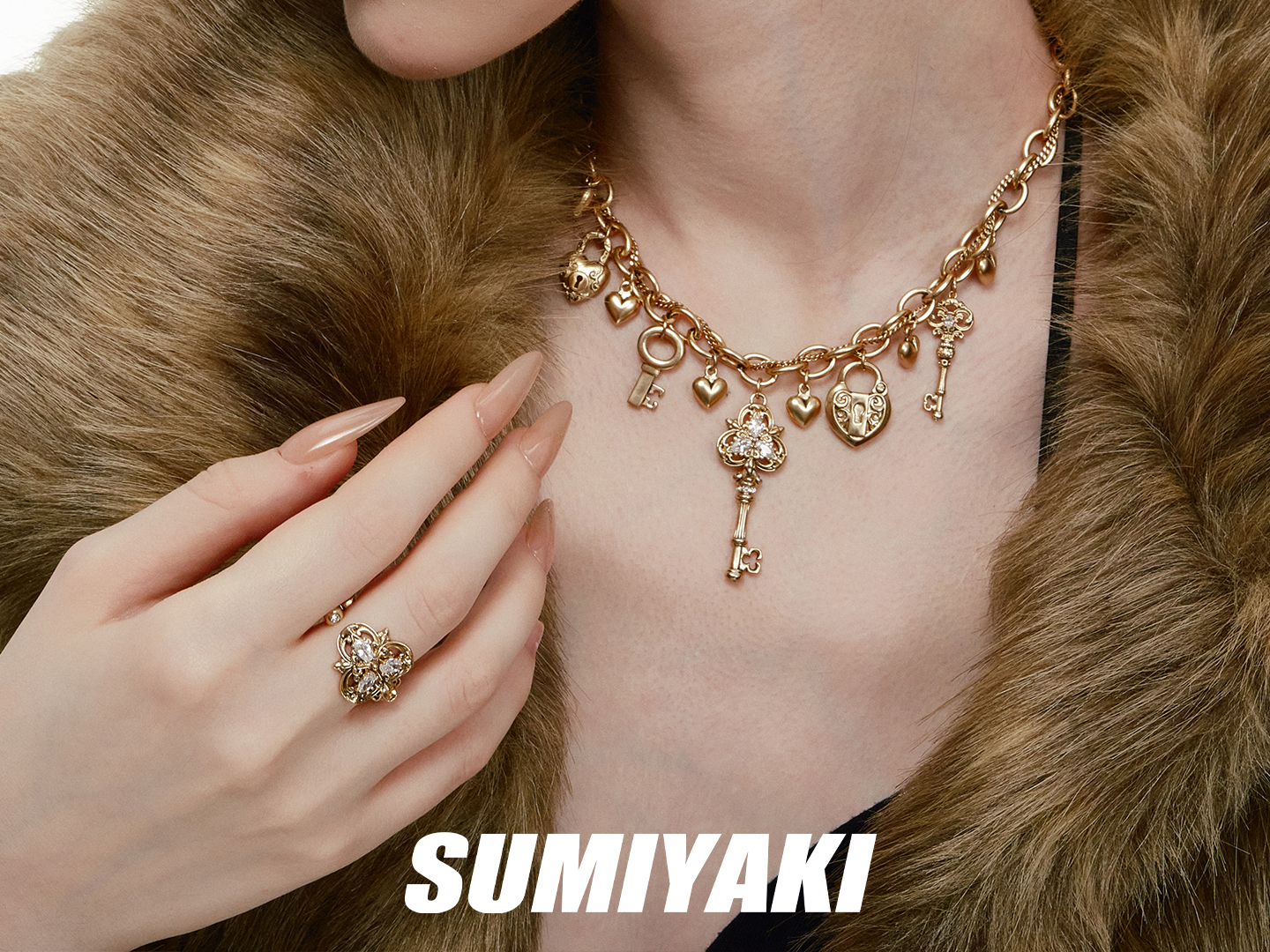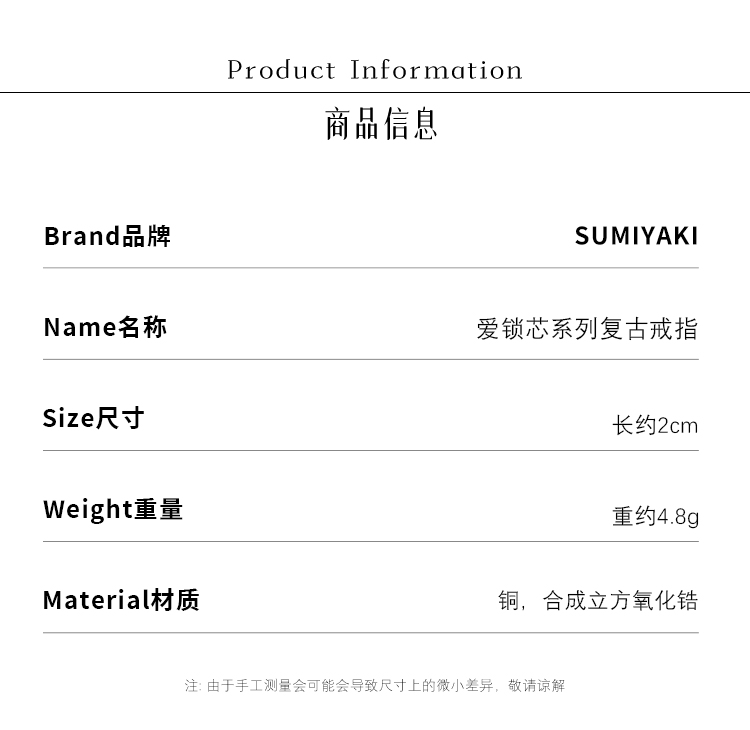 Sumiyaki Love Lock Series Vintage Key Advanced Open Ring for Women