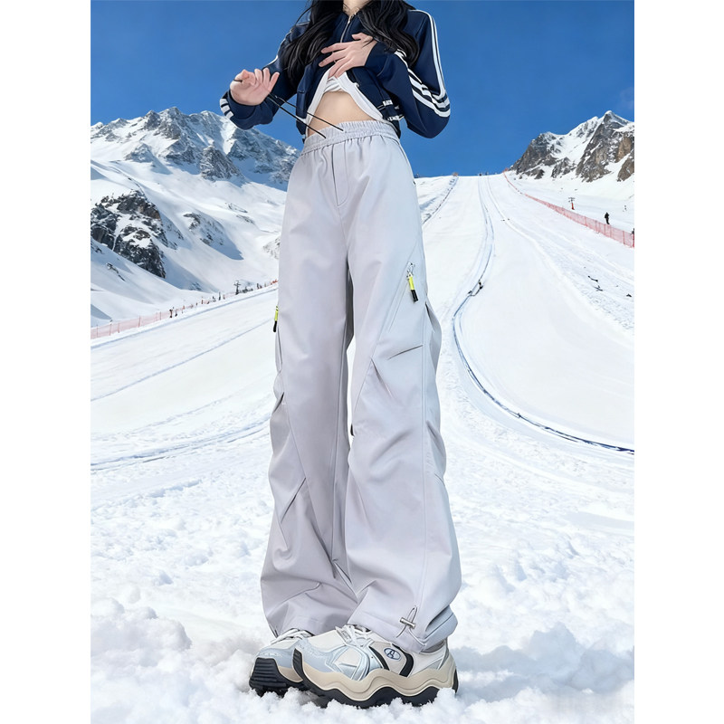 Northeast -40 Degree Ski Pants for Men and Women, Autumn and Winter Fleece-Lined Thickened Wrinkle-Resistant Paratrooper Cargo Pants, Outdoor Hiking Pants