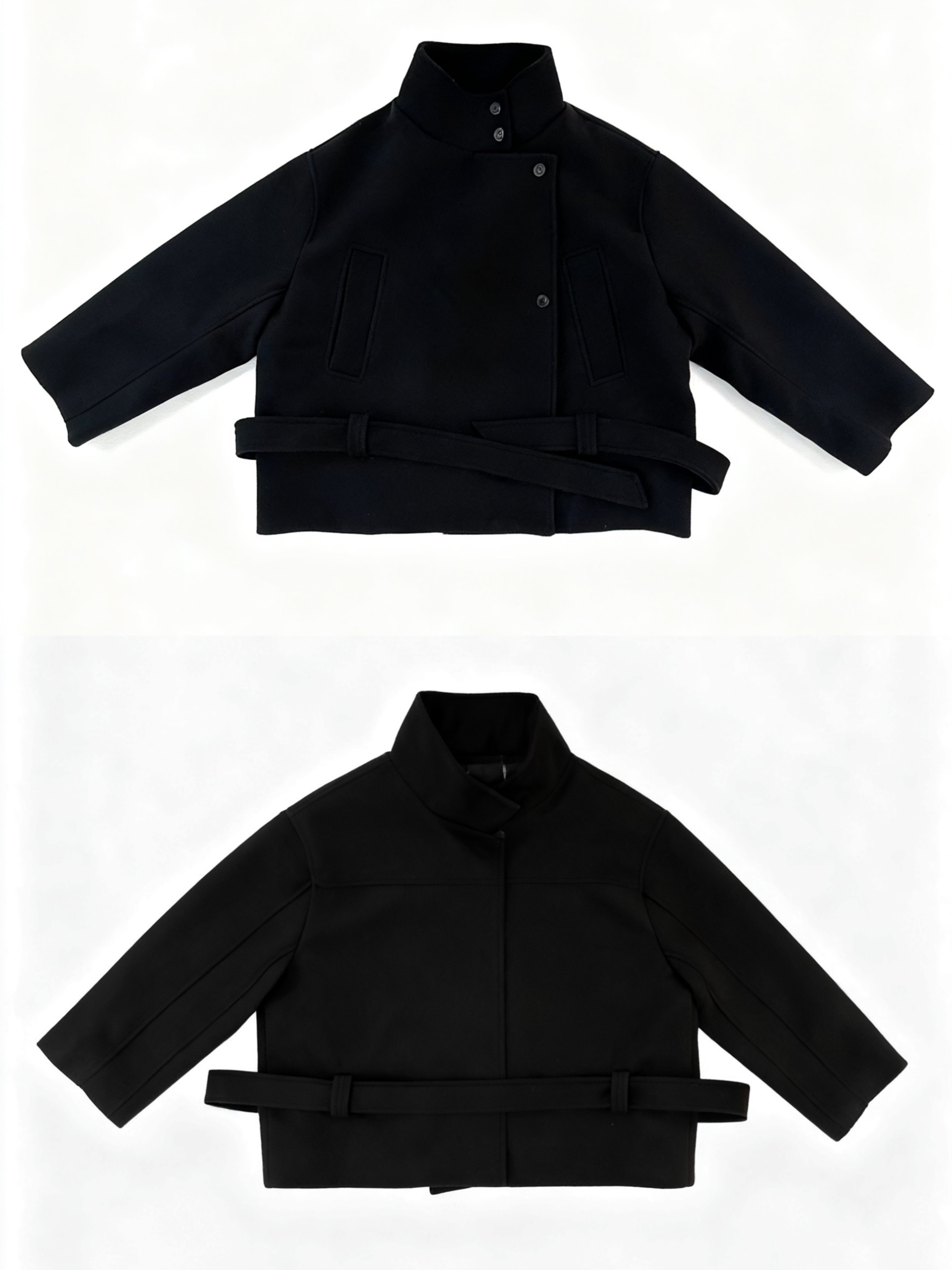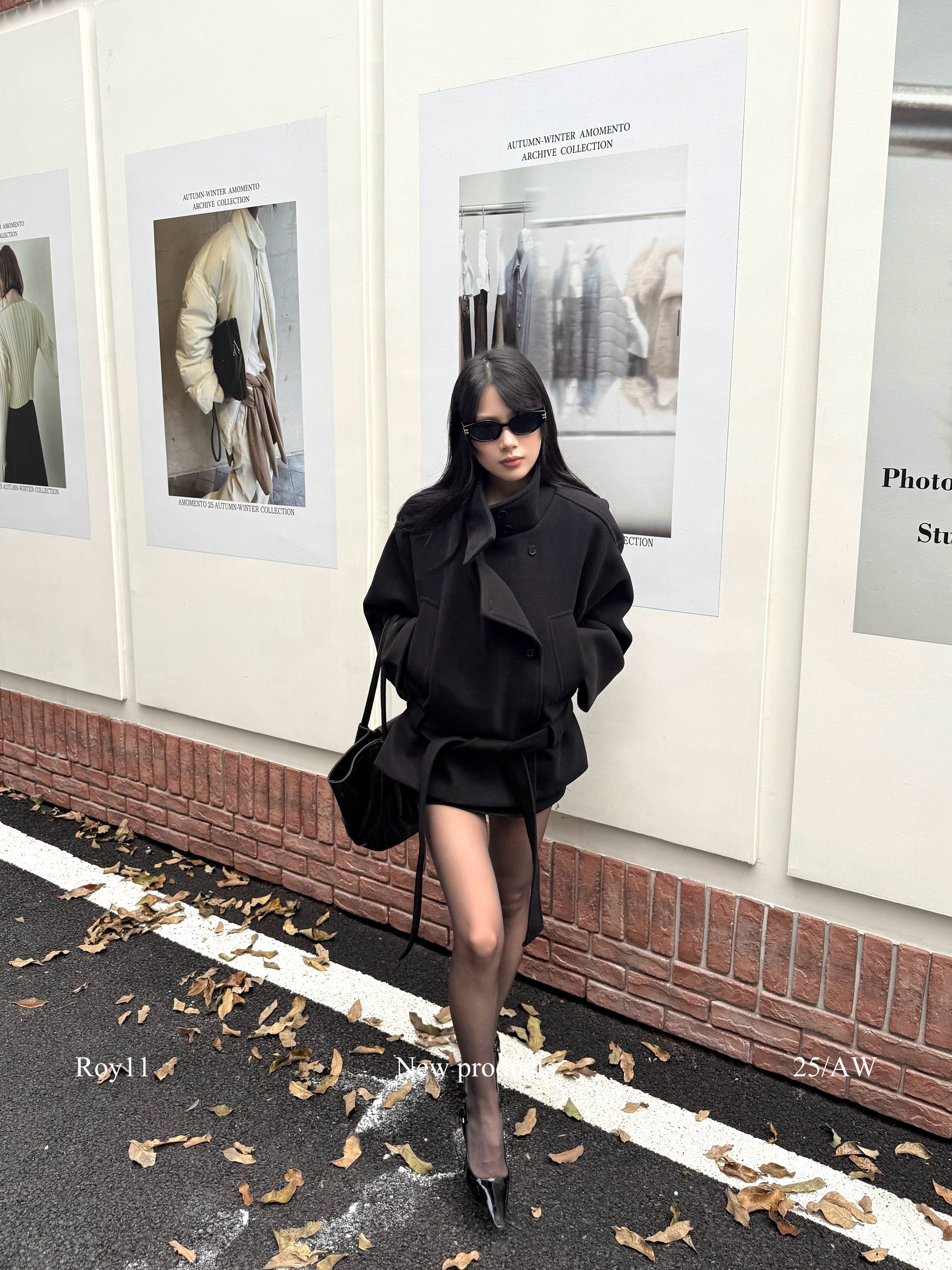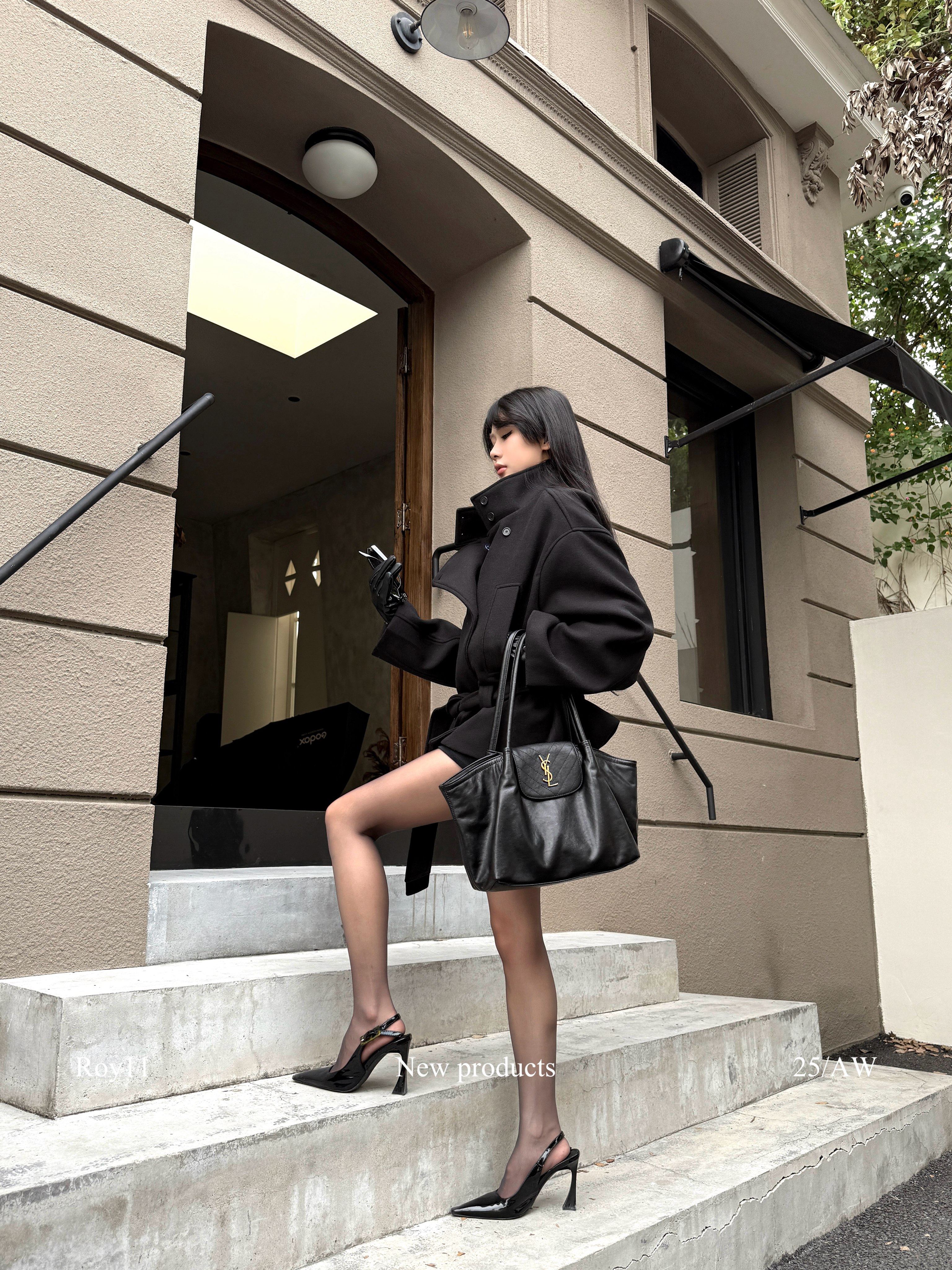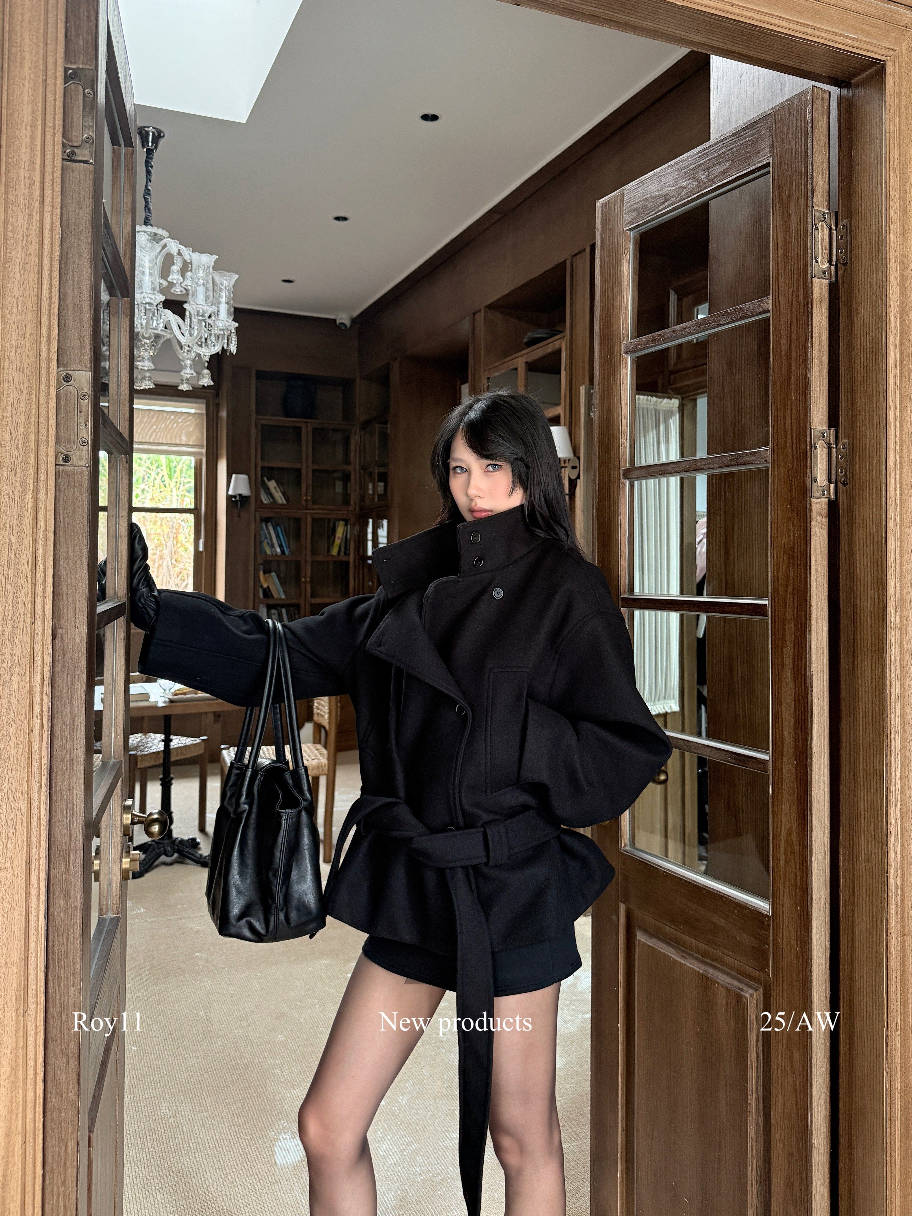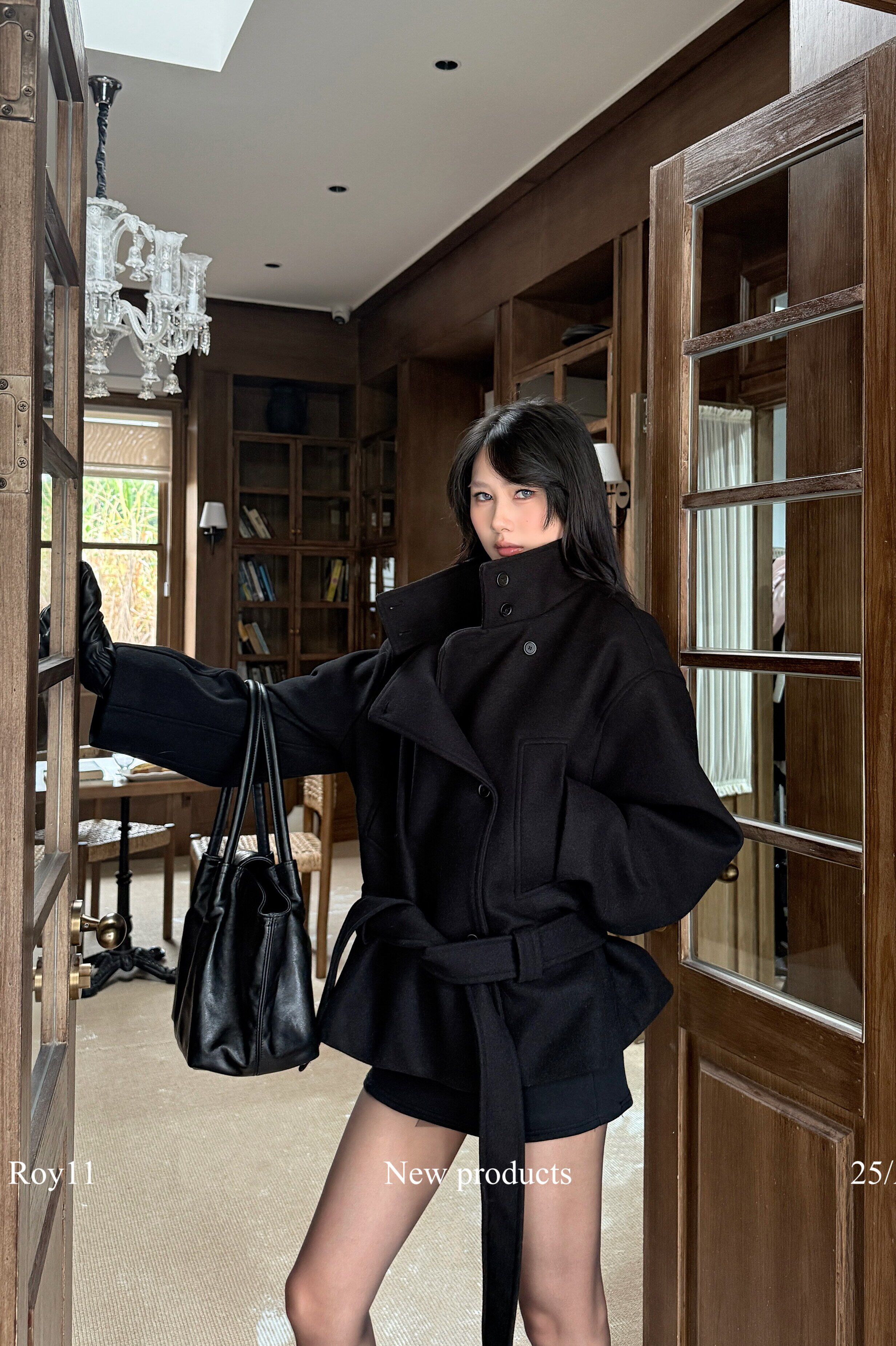 Roy11 Pioneer Model Black Stand Collar Short Coat for Women Winter Hot Girl High-End Elegant Waist-Cinching Woolen Jacket