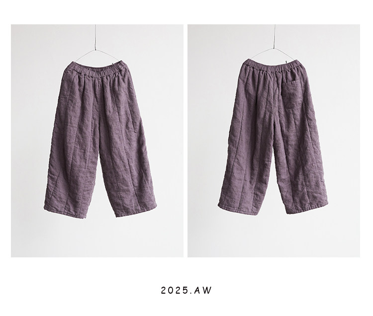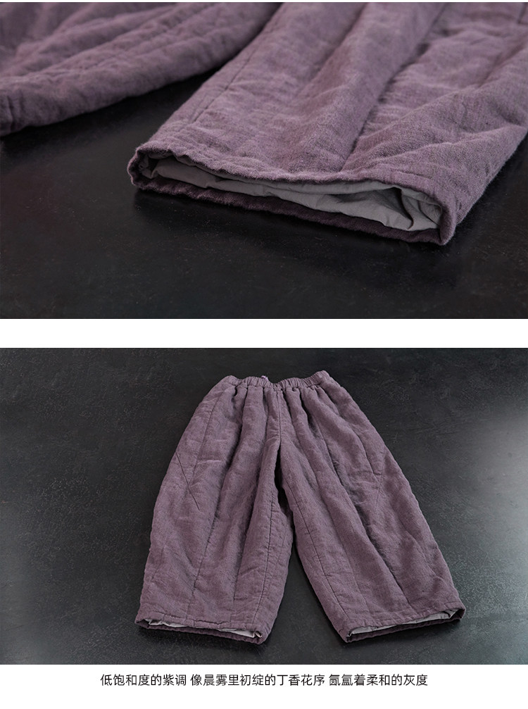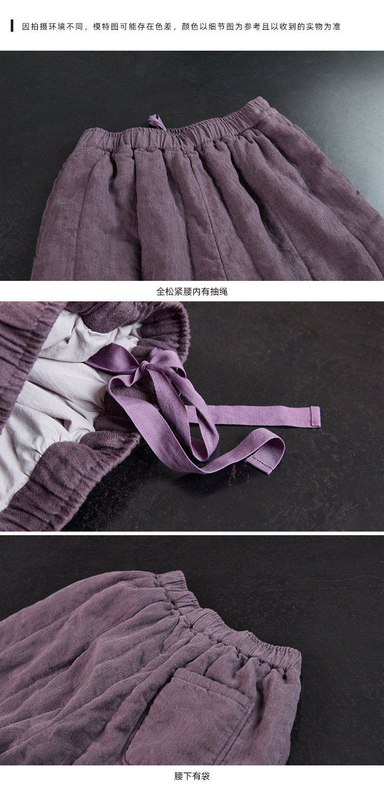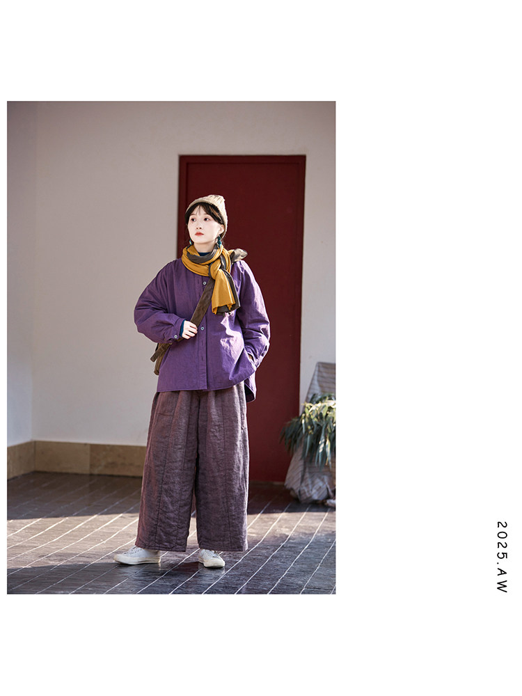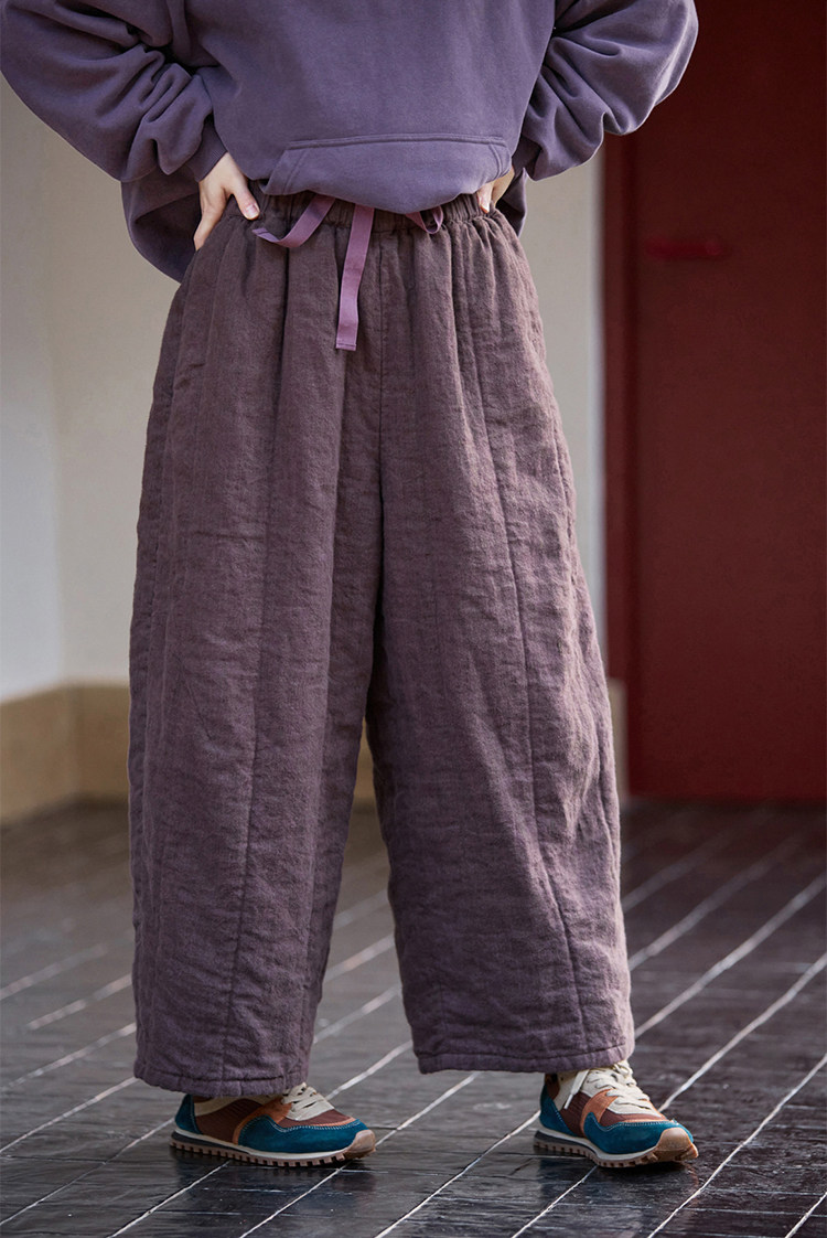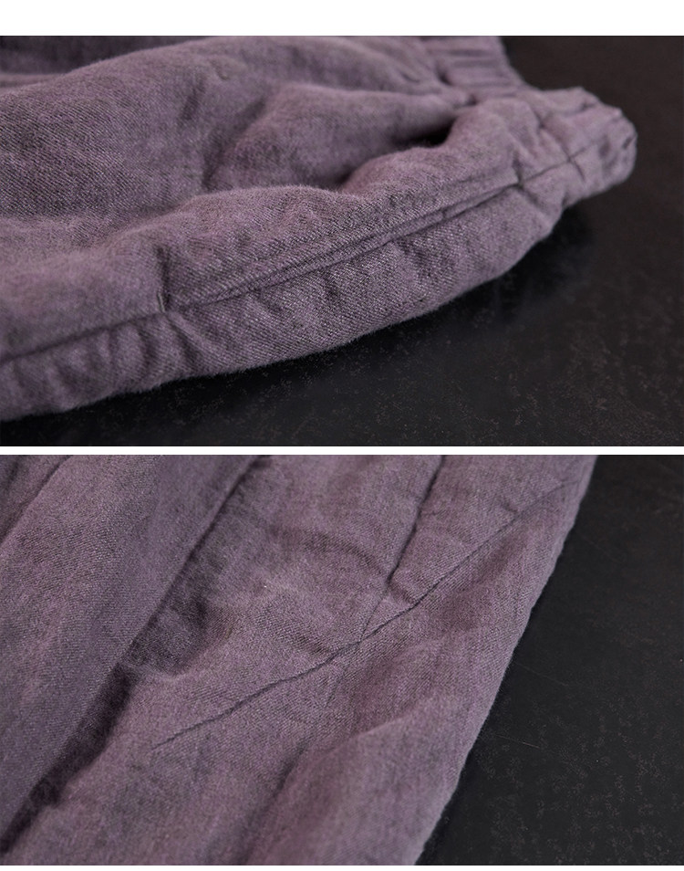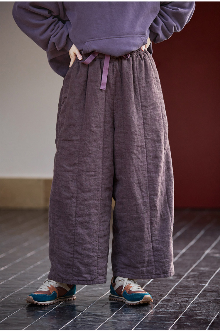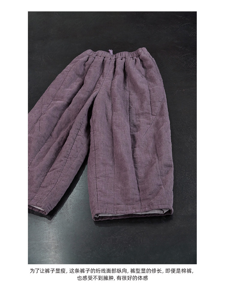 Original [Folk Art] Winter Edition Lilac Purple Linen Brushed High-Quality Warm Elastic Waist Cotton Pants 8583-1B