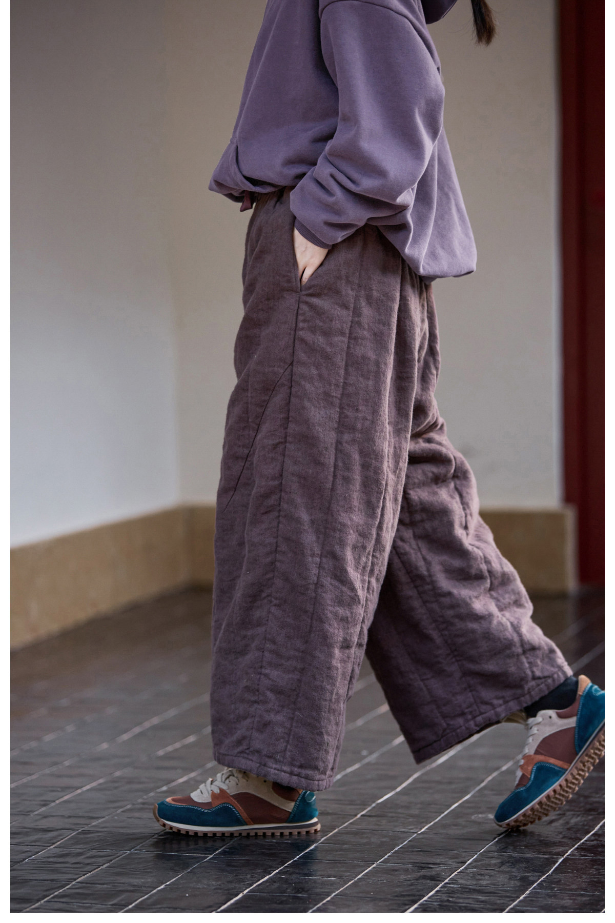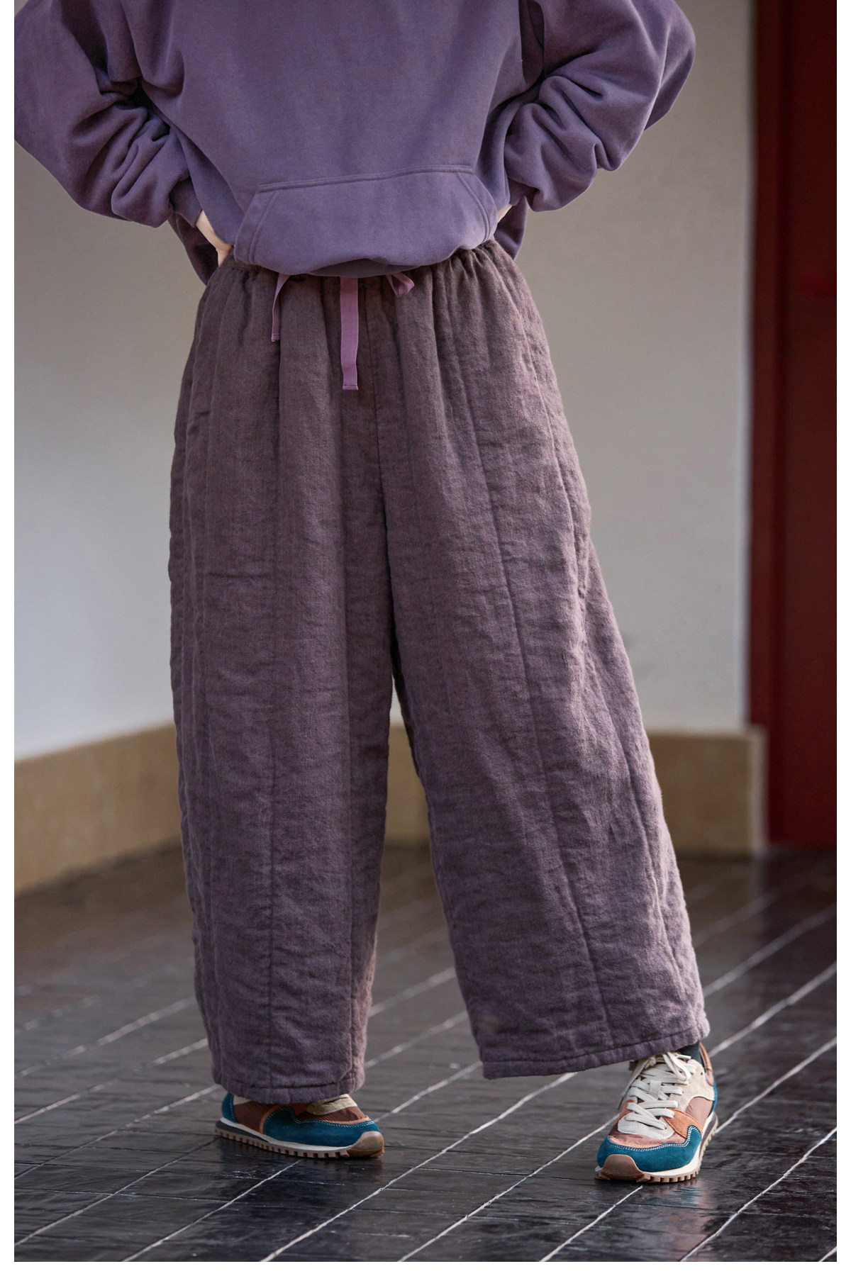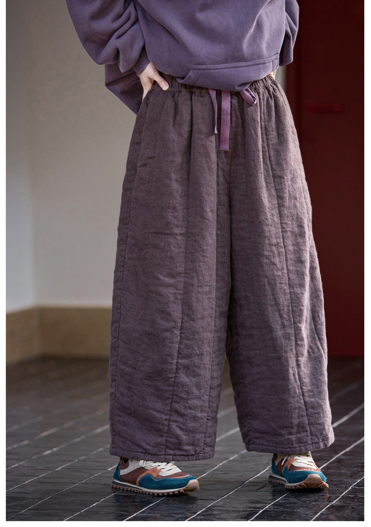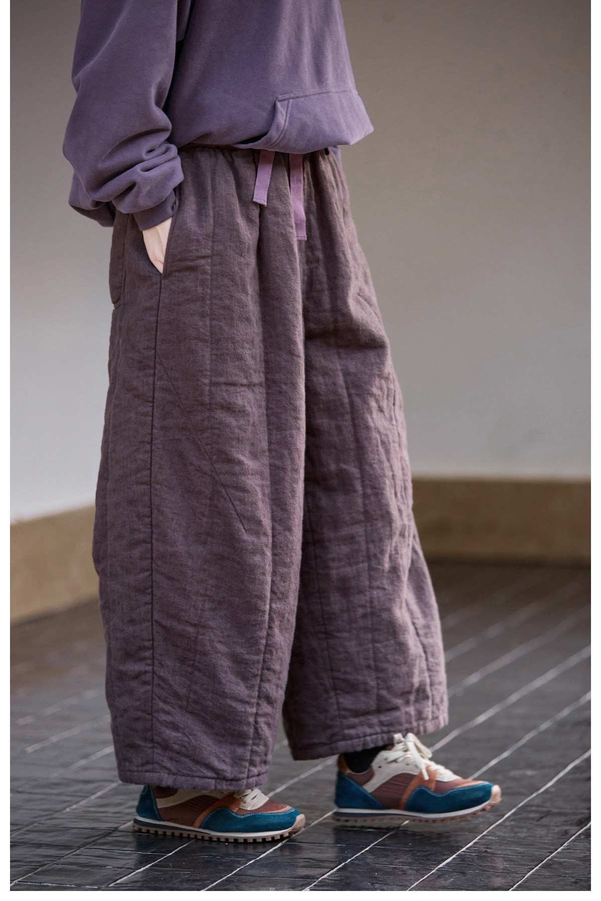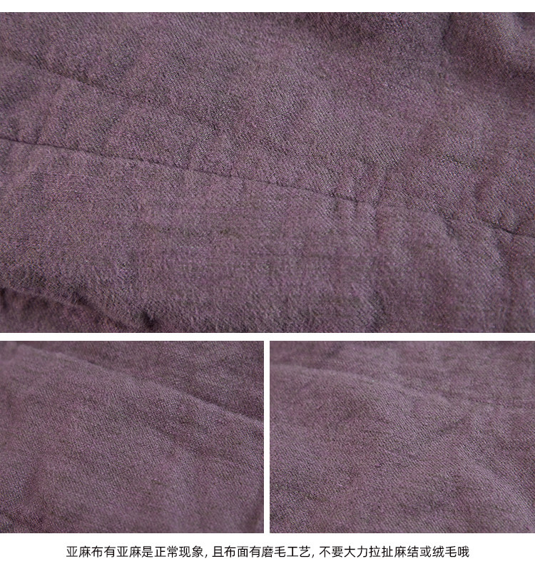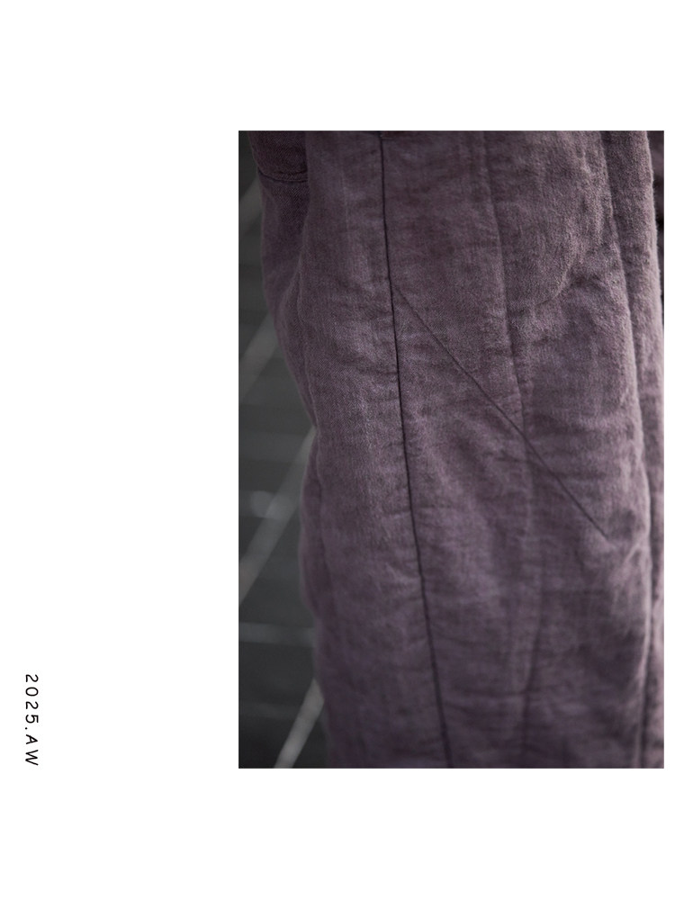 Original [Folk Art] Winter Edition Lilac Purple Linen Brushed High-Quality Warm Elastic Waist Cotton Pants 8583-1B