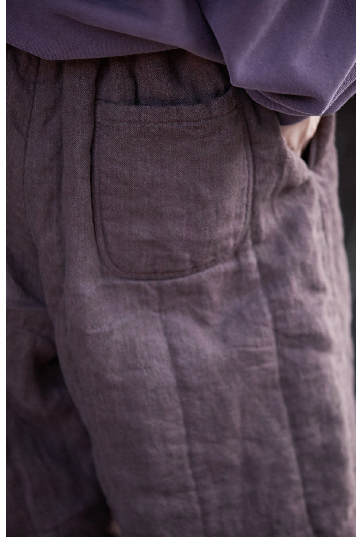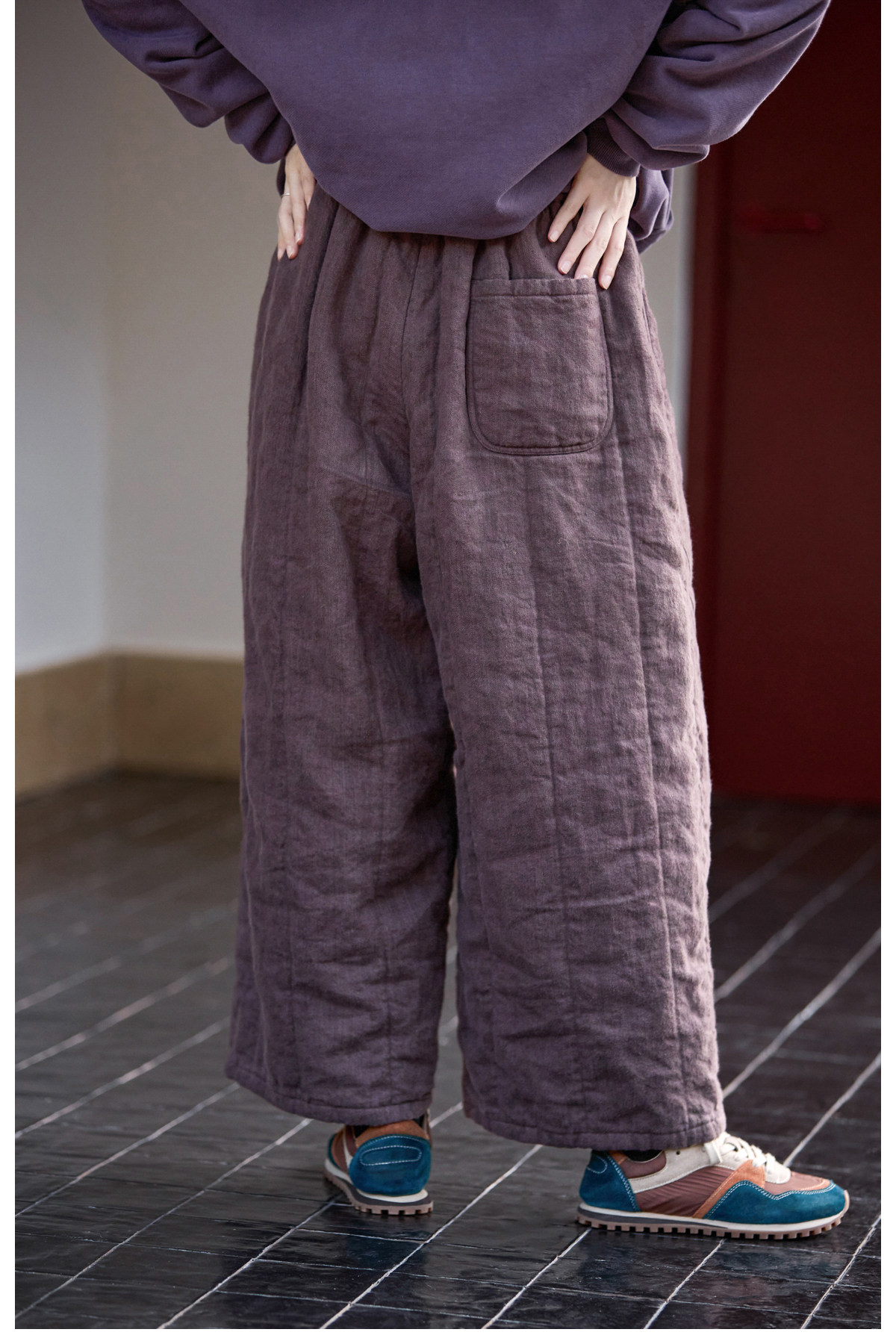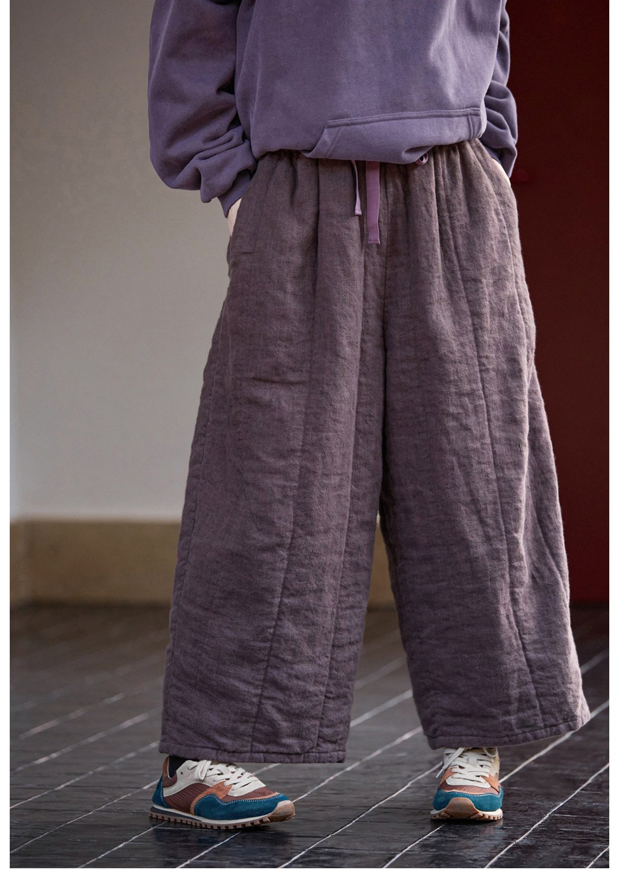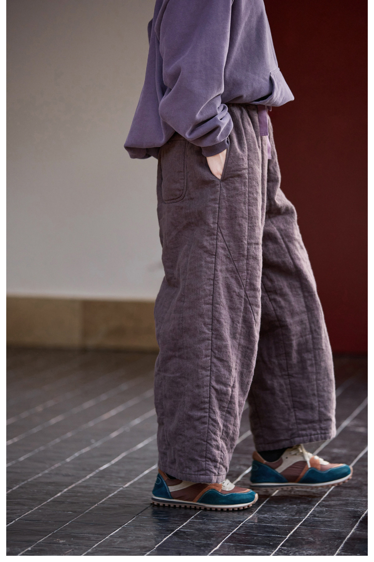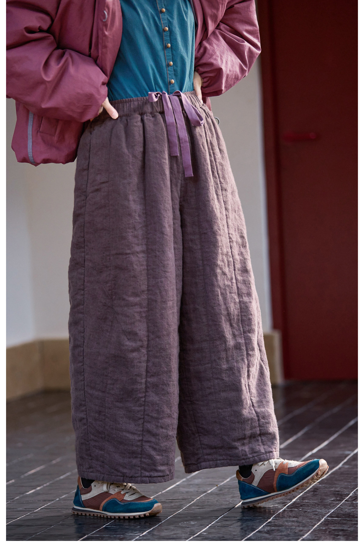 Original [Folk Art] Winter Edition Lilac Purple Linen Brushed High-Quality Warm Elastic Waist Cotton Pants 8583-1B