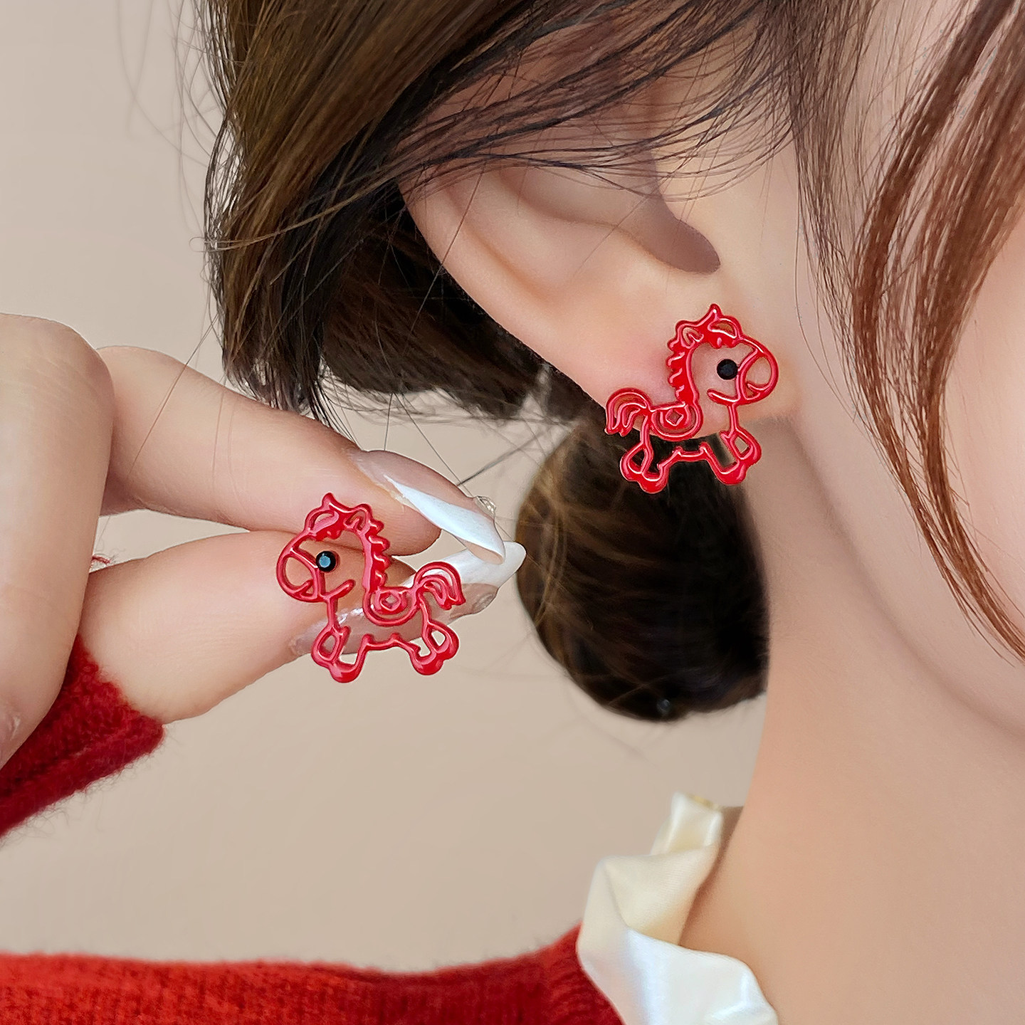 New Year Red Pony Earrings for Women 2025 New Popular Unique Niche High-End Elegant and Stylish Stud Earrings