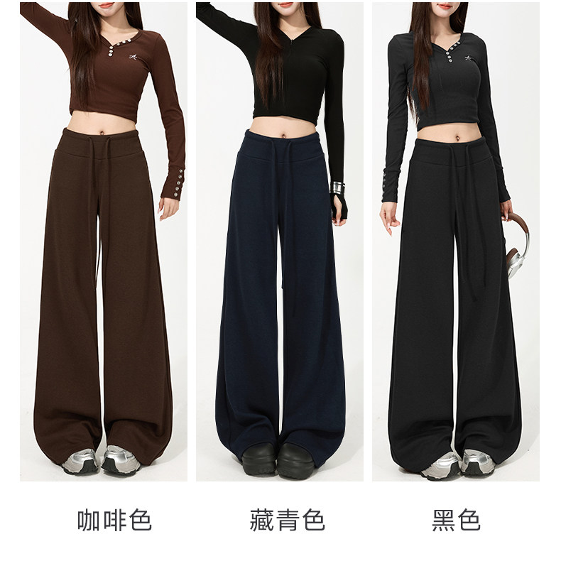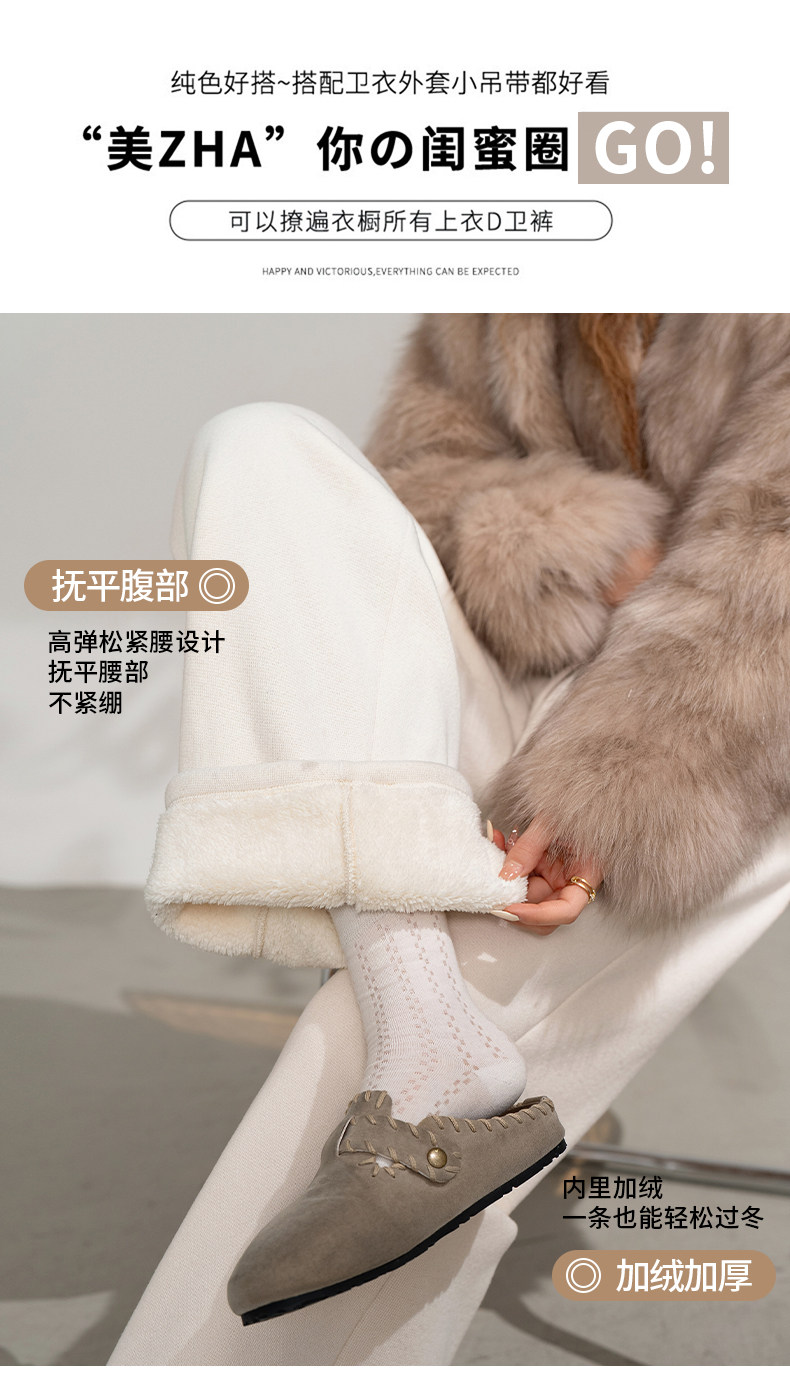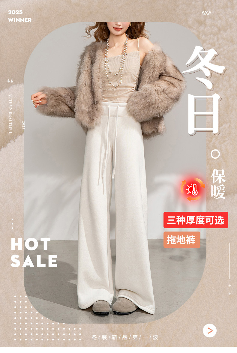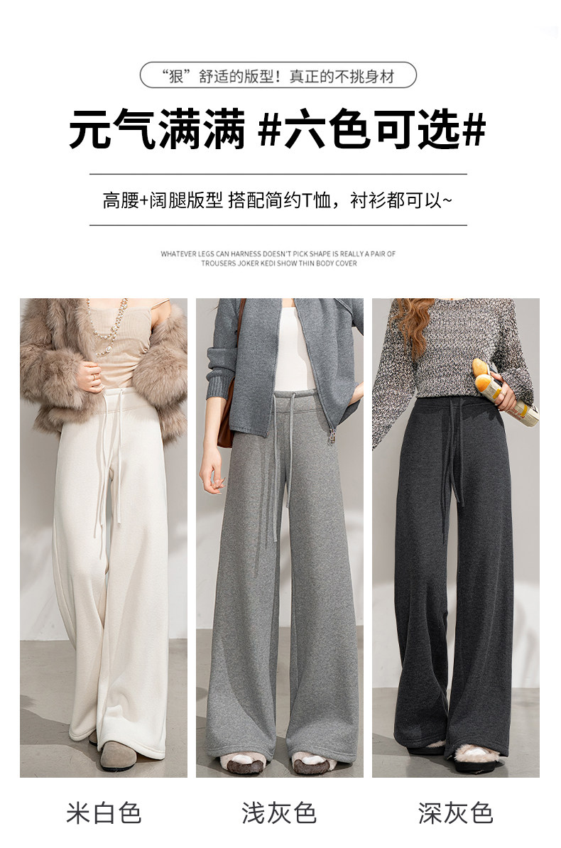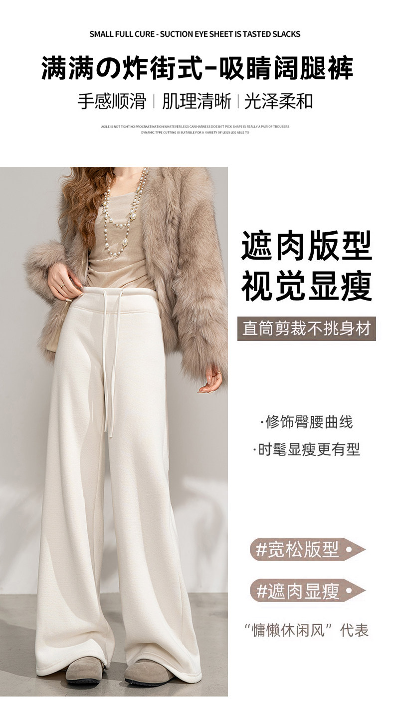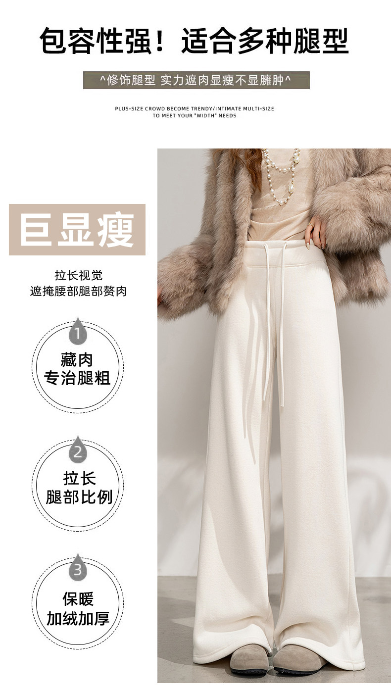 White Fleece-Lined Glutinous Pants for Women, Winter Drapey Soft Narrow Straight-Leg Sweatpants, Thickened Flared Wide-Leg Pants