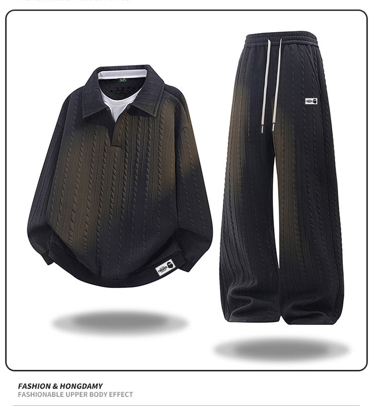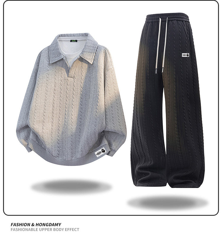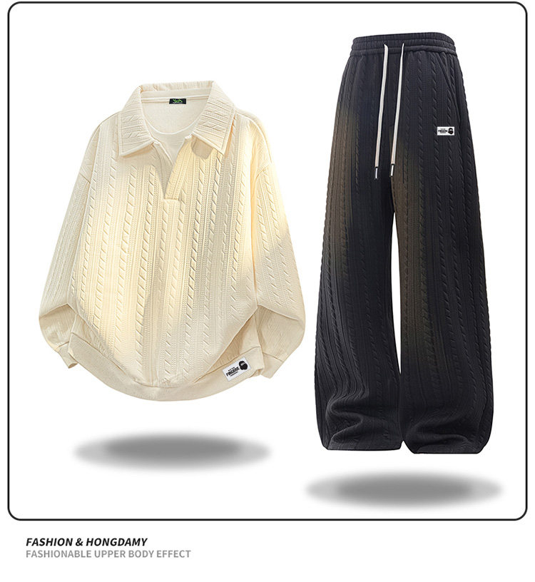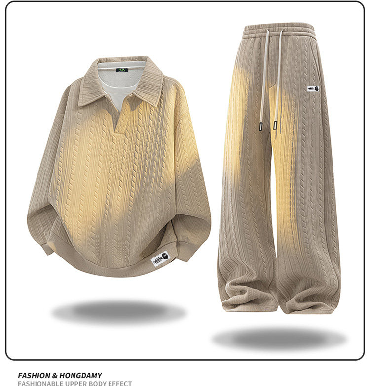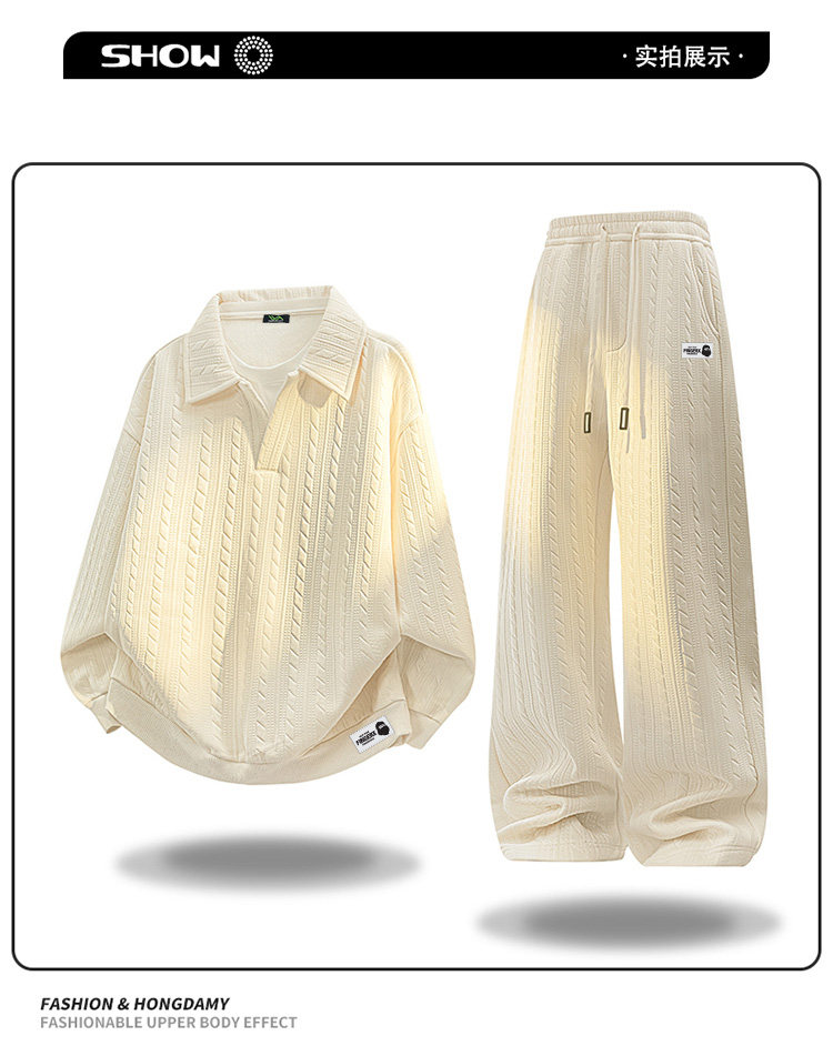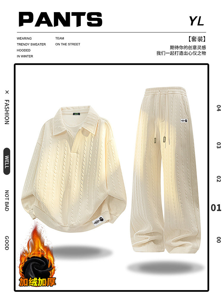 It Fingercroxx Winter Large Size Jacquard Lapel Suit with Velvet Lining and Thickened Casual Sweatshirt and Pants Two-Piece Set