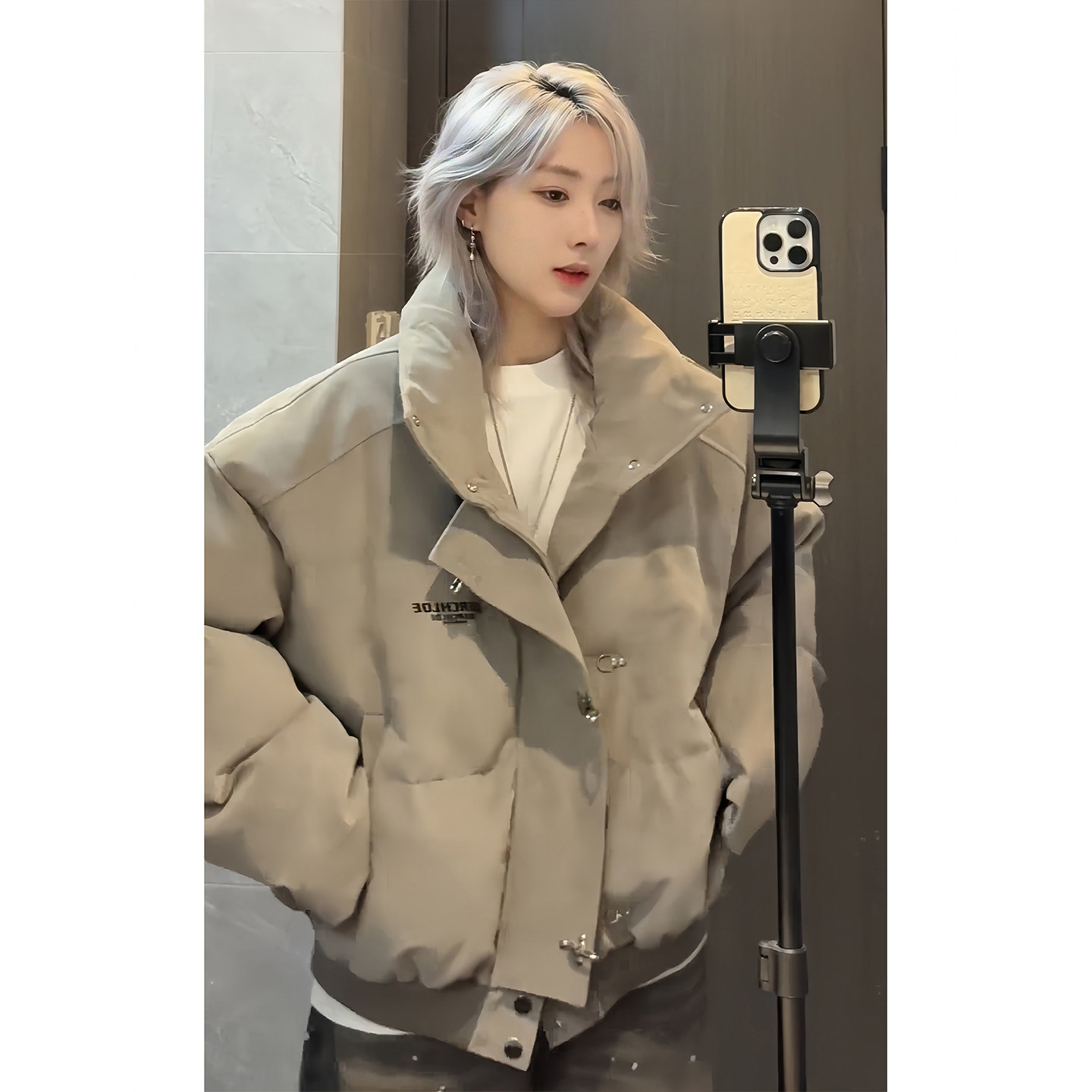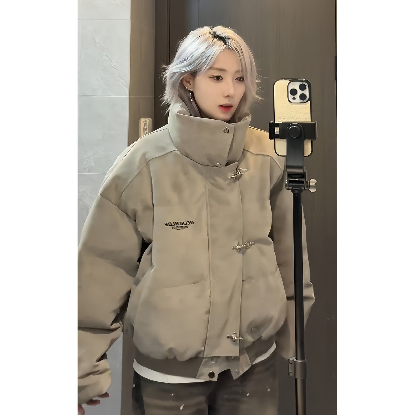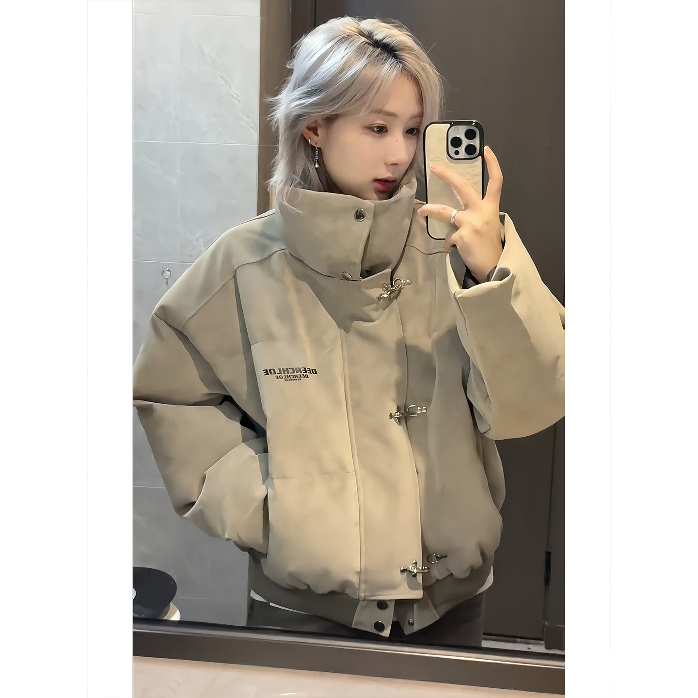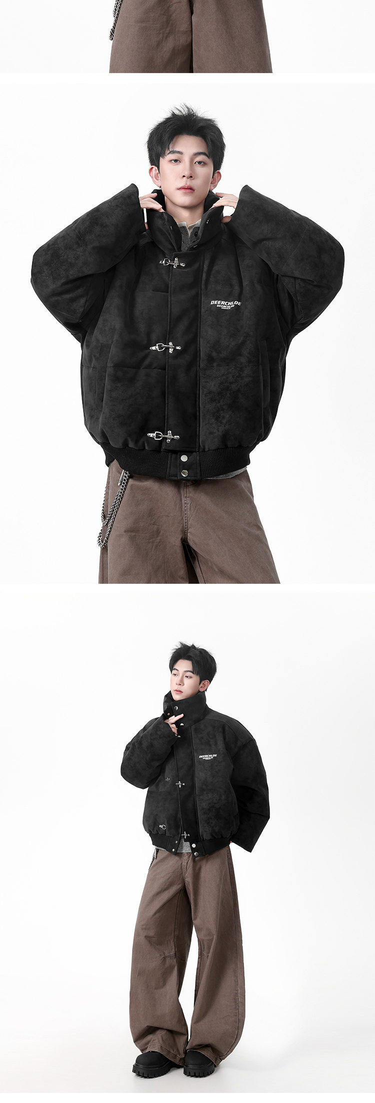 American High Street Style Pu Leather Tie-Dye Cotton Jacket for Men, Winter Trendy Brand, Thickened, Warm, Short, Stand Collar down Cotton Coat