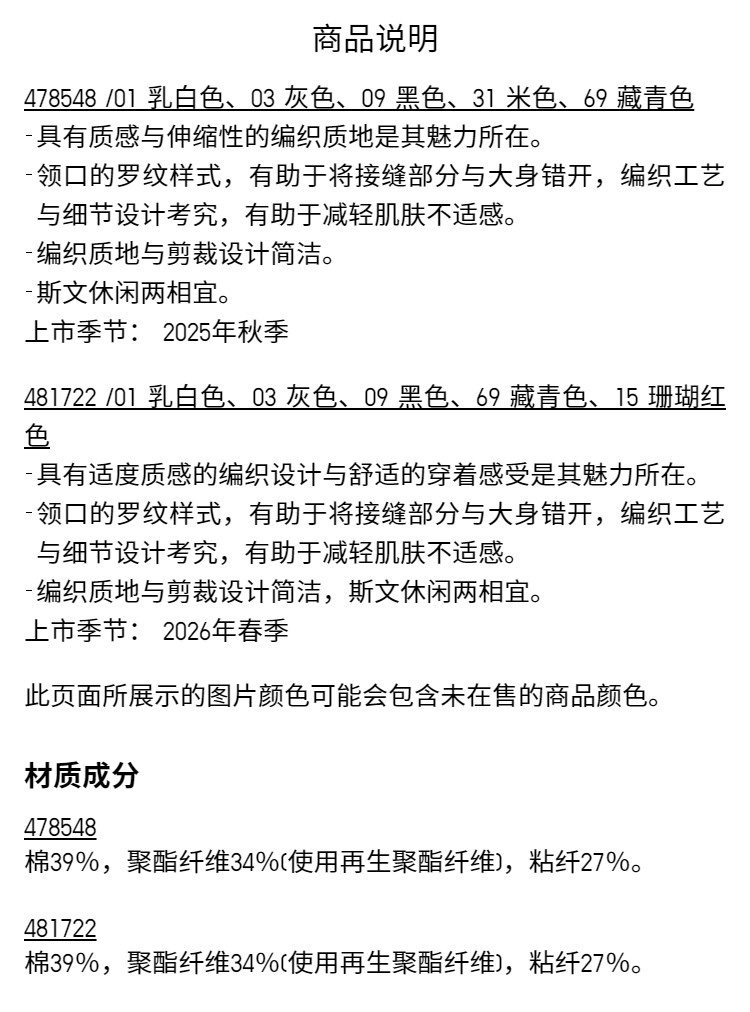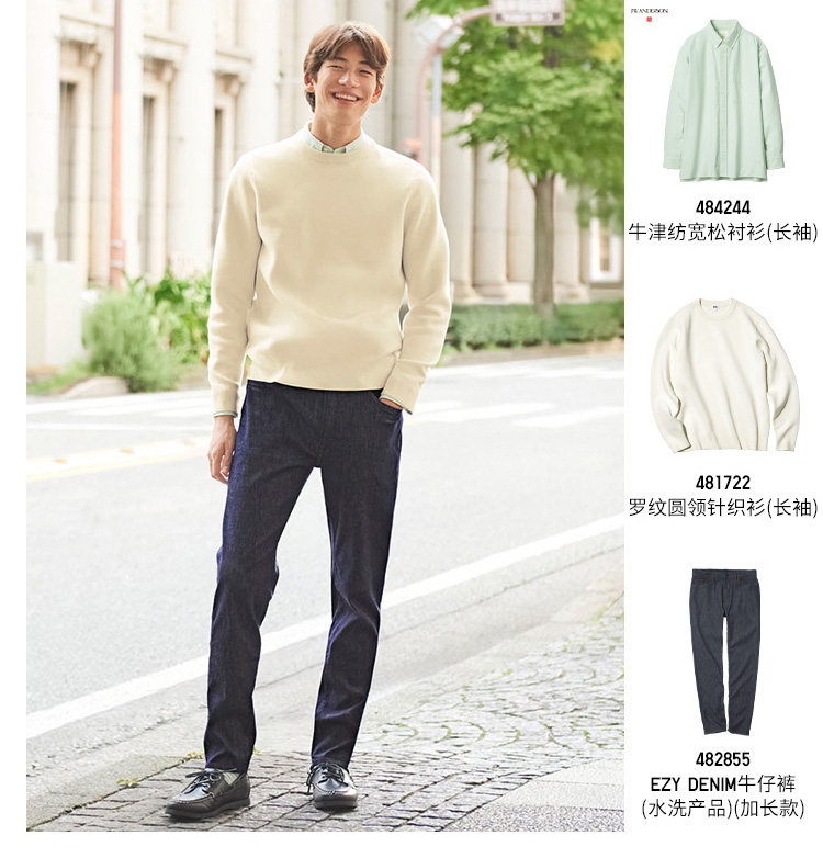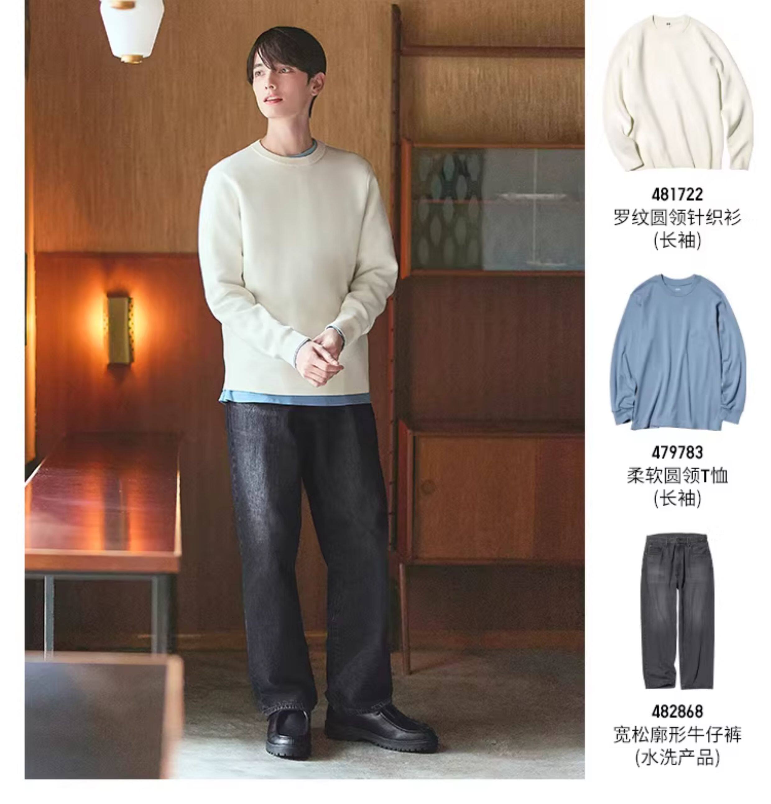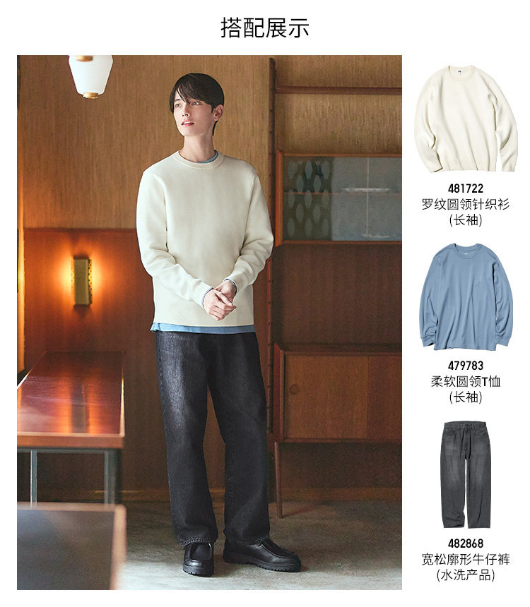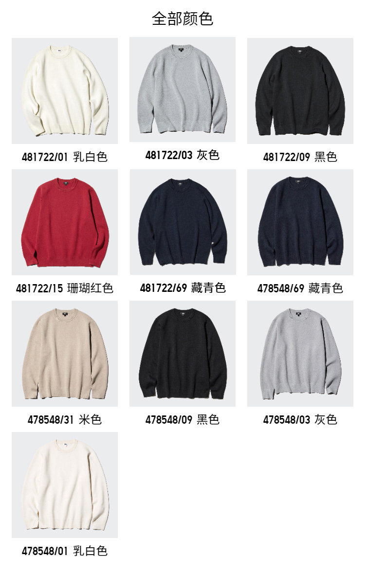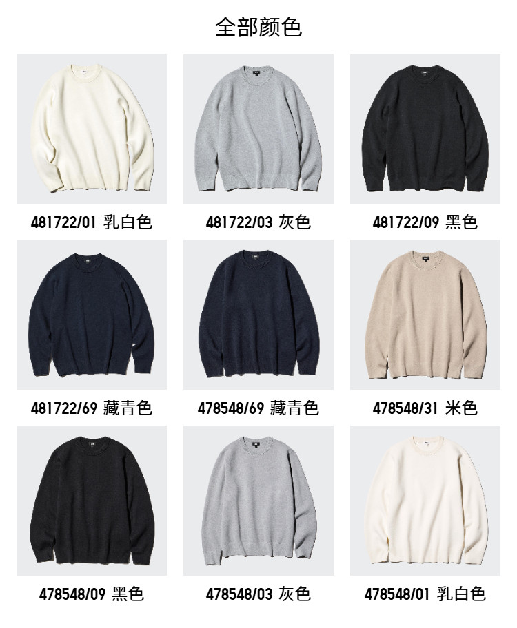 Uniqlo Men's and Women's Ribbed Crew Neck Knitwear/Long-Sleeved Sweater 481722 478548