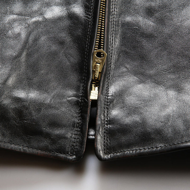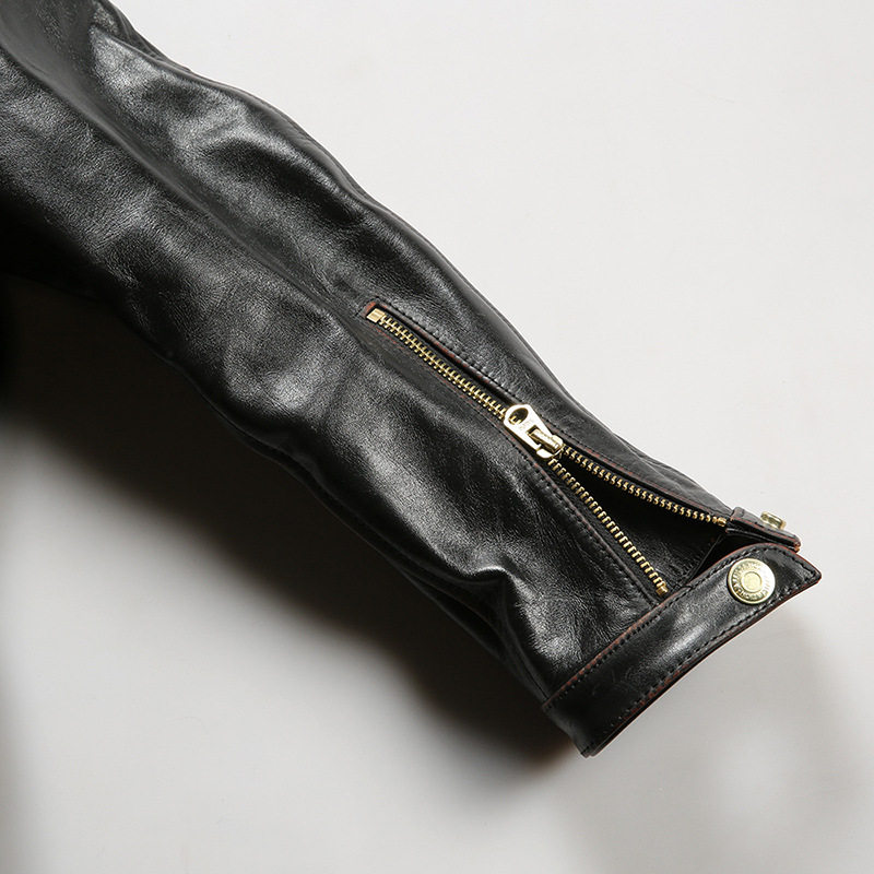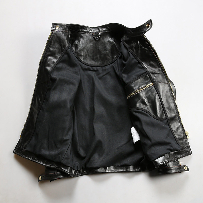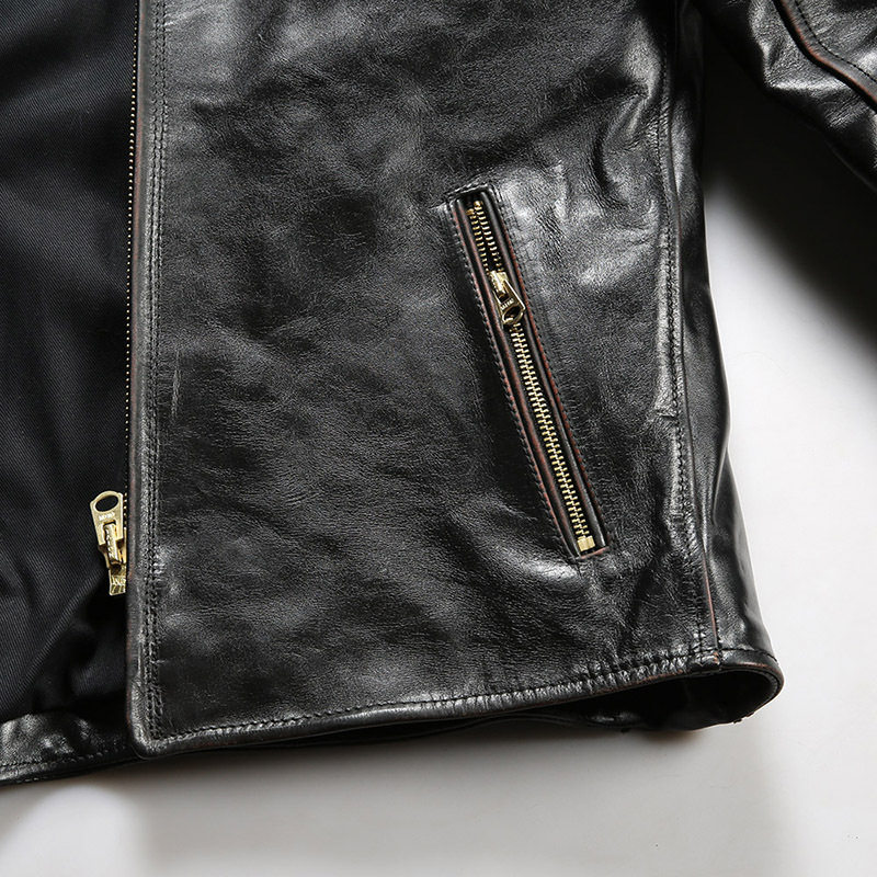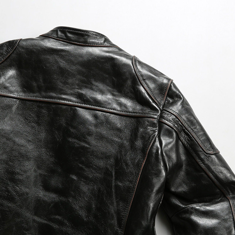Autumn and Winter New Japanese-Style Motorcycle J100 Tea Core Color Horsehide Leather Jacket for Men, Stand Collar, Slim Fit, Short Genuine Leather Jacket