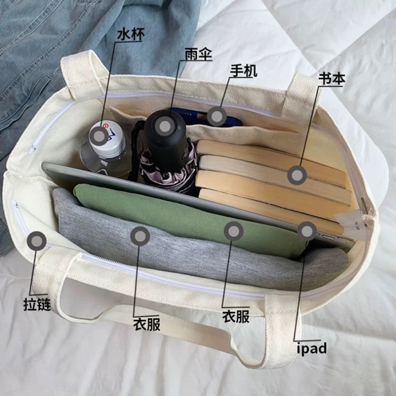 Commuting Tote Bag, Canvas Bag, Large Capacity, Zipper Canvas, Simple Forest Style, New Tote Bag, Outing, Casual, Versatile Bag