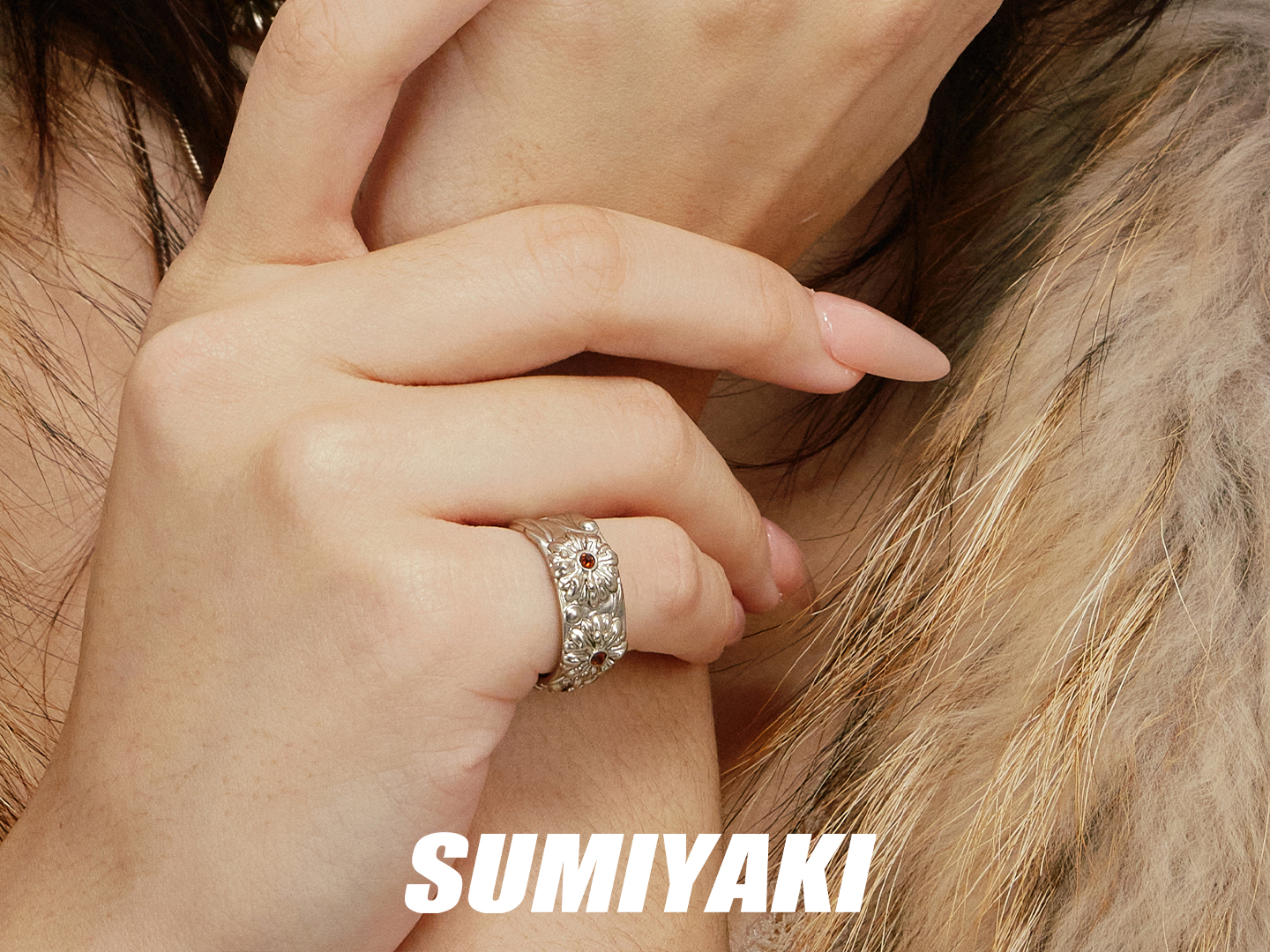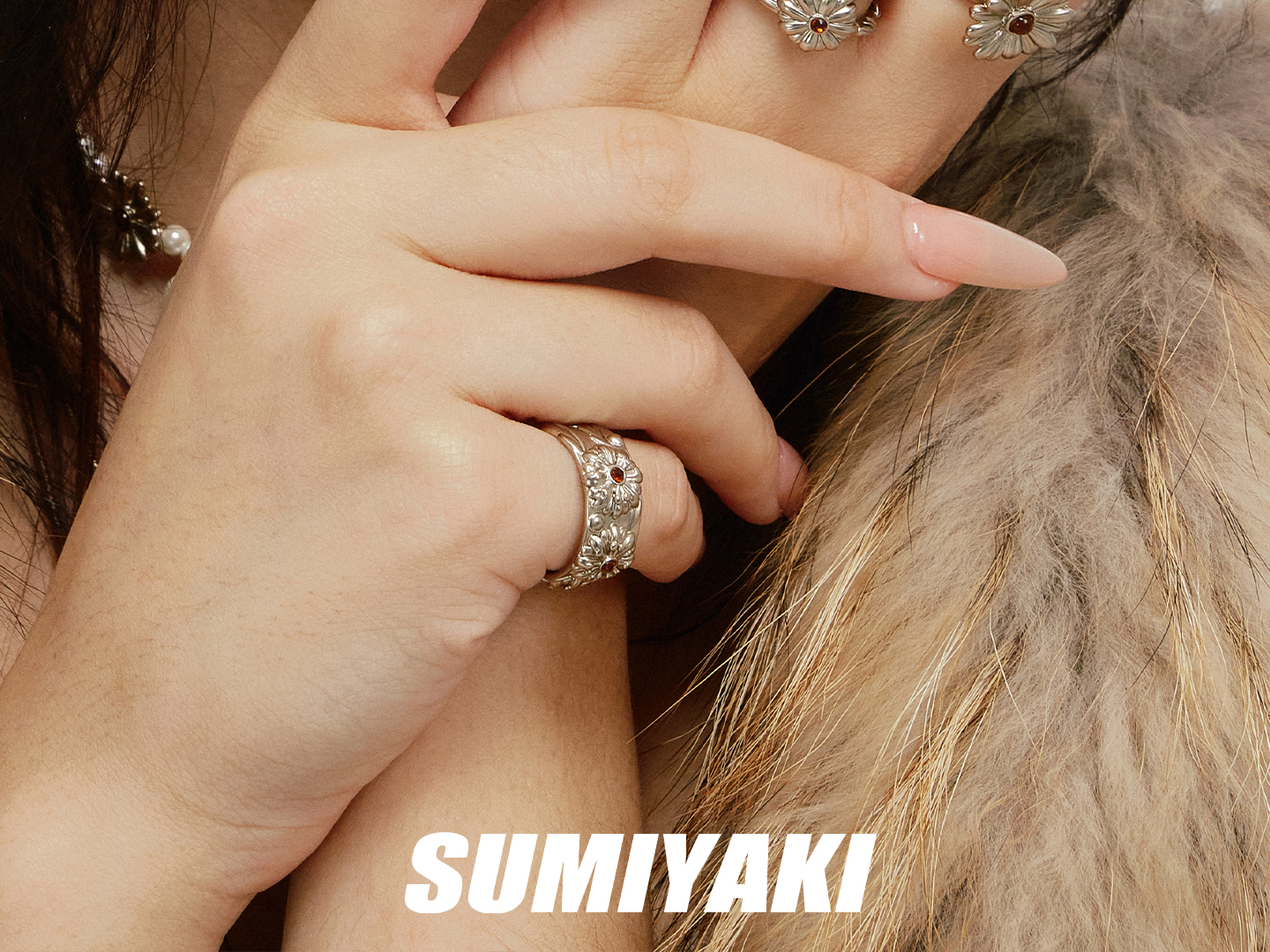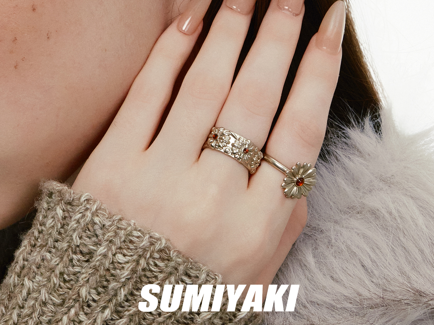 Sumiyaki Daisy Series French Retro Ring with Adjustable Opening