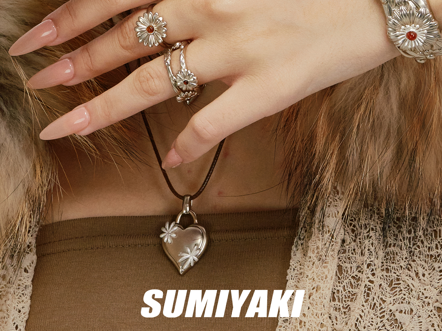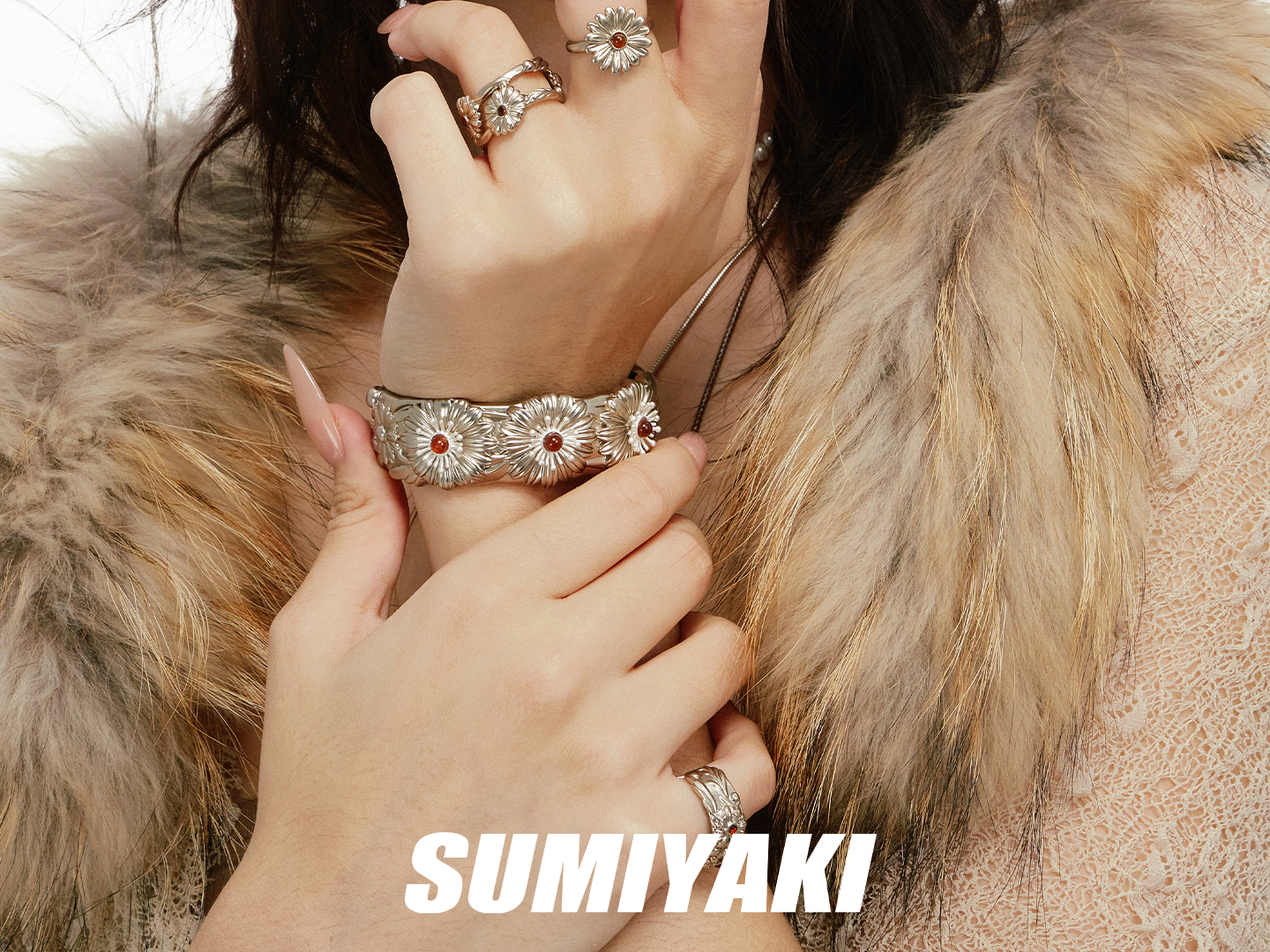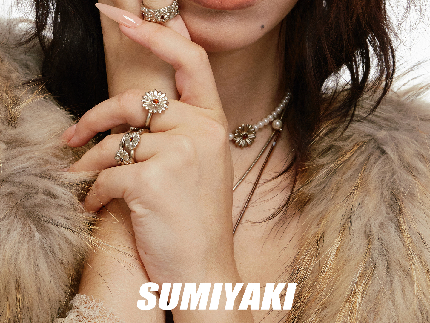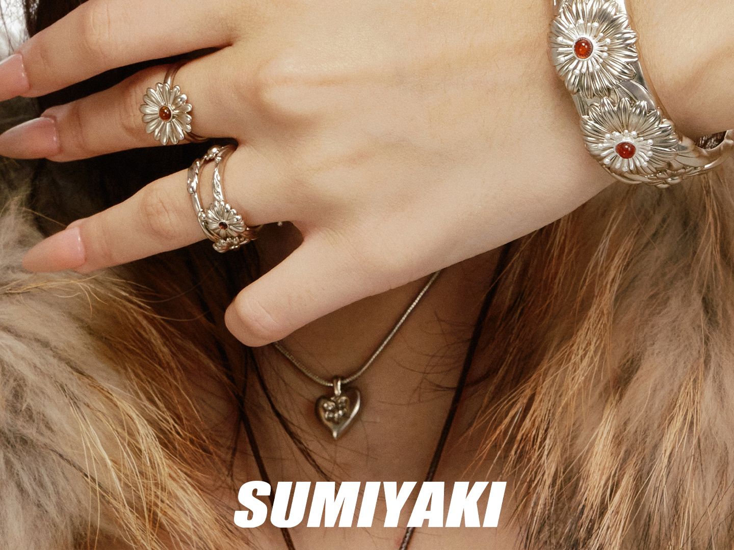 Sumiyaki Daisy Series French Retro Ring with Adjustable Opening