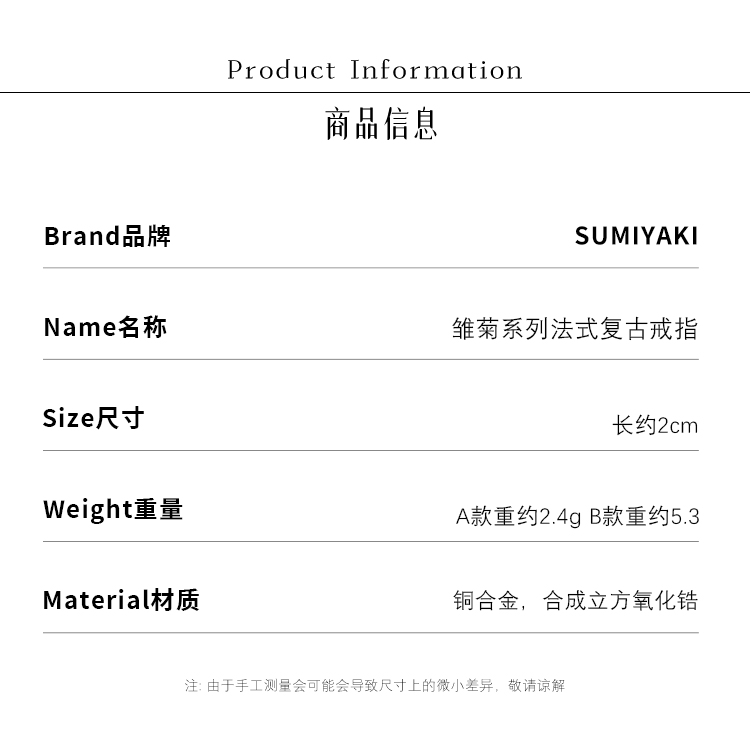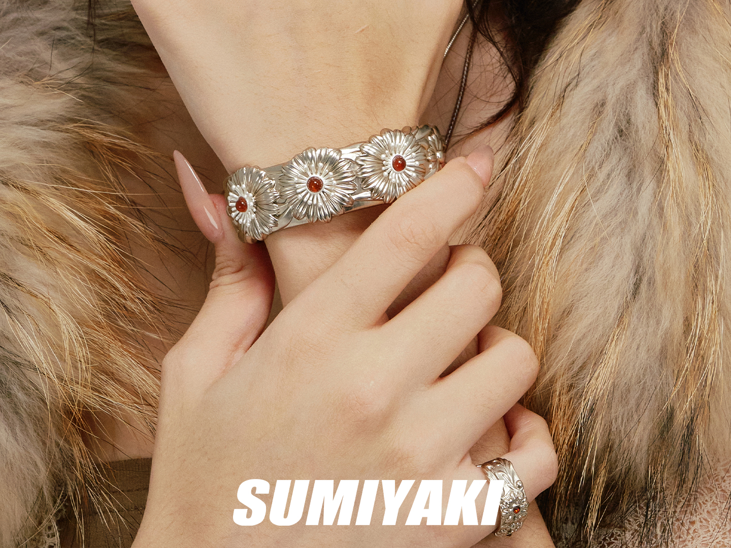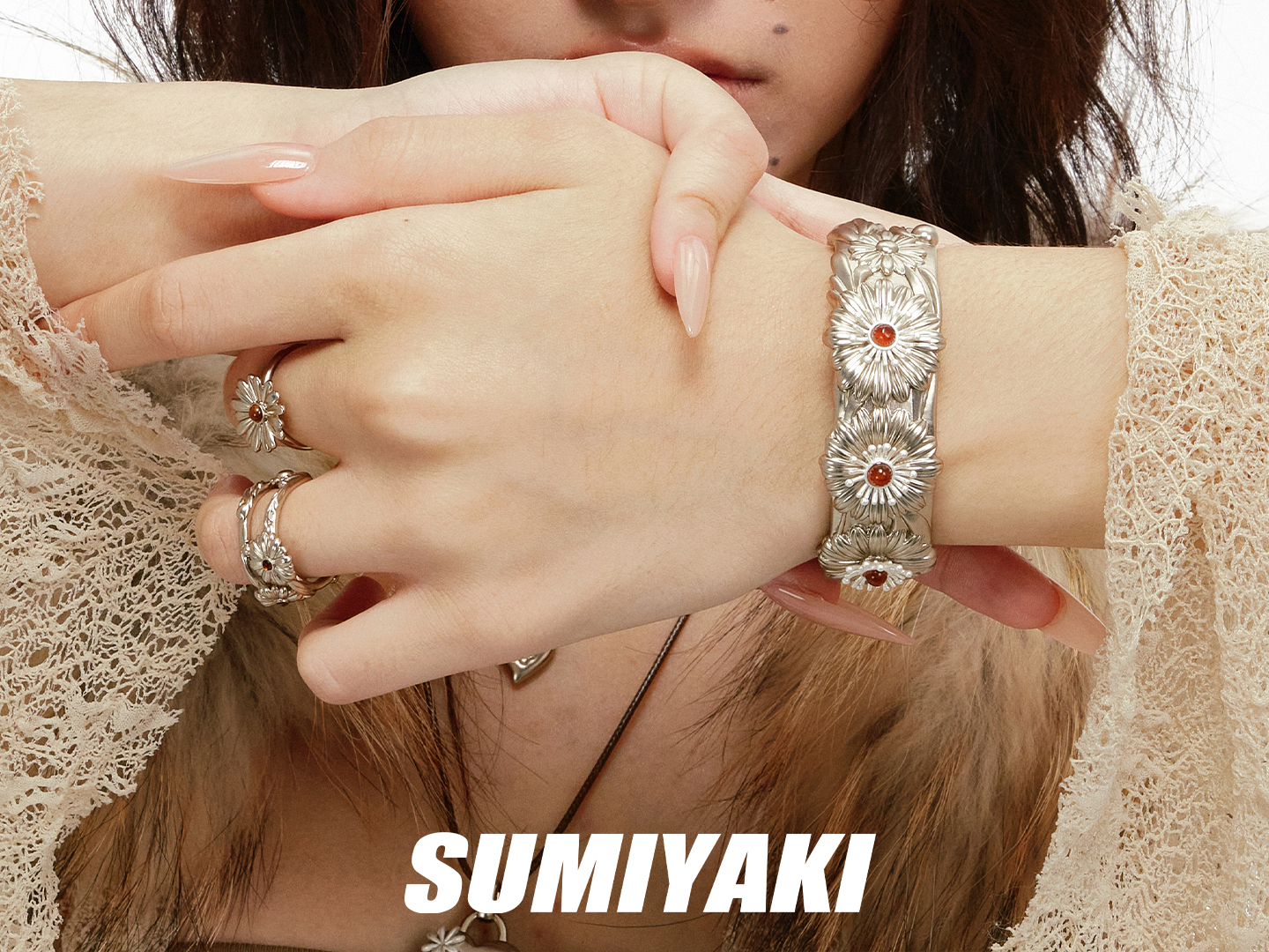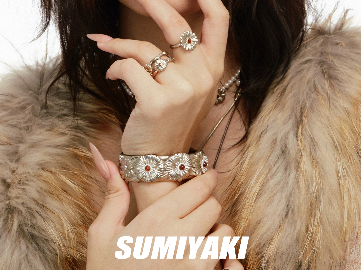 Sumiyaki Daisy Series French Retro Ring with Adjustable Opening