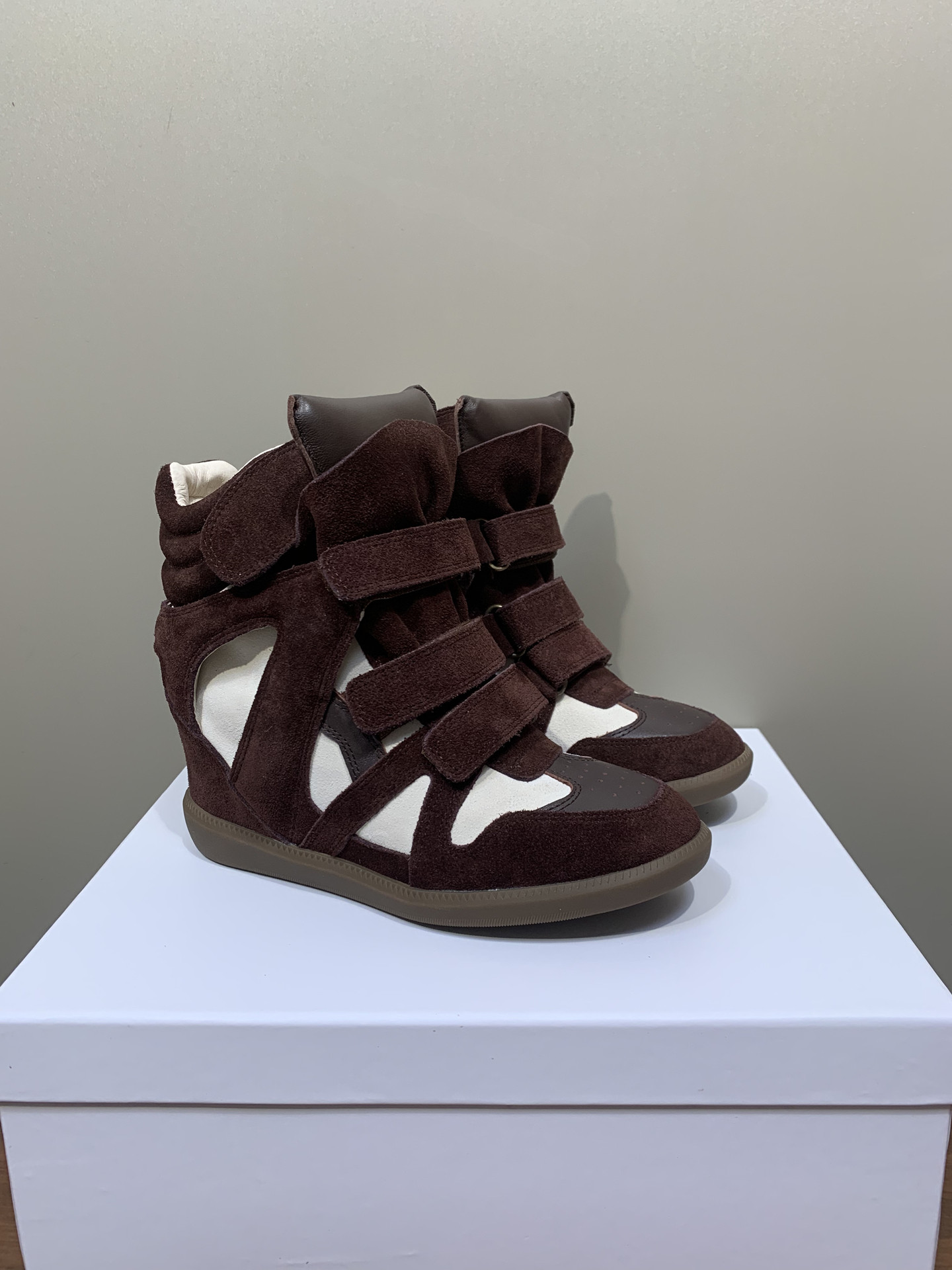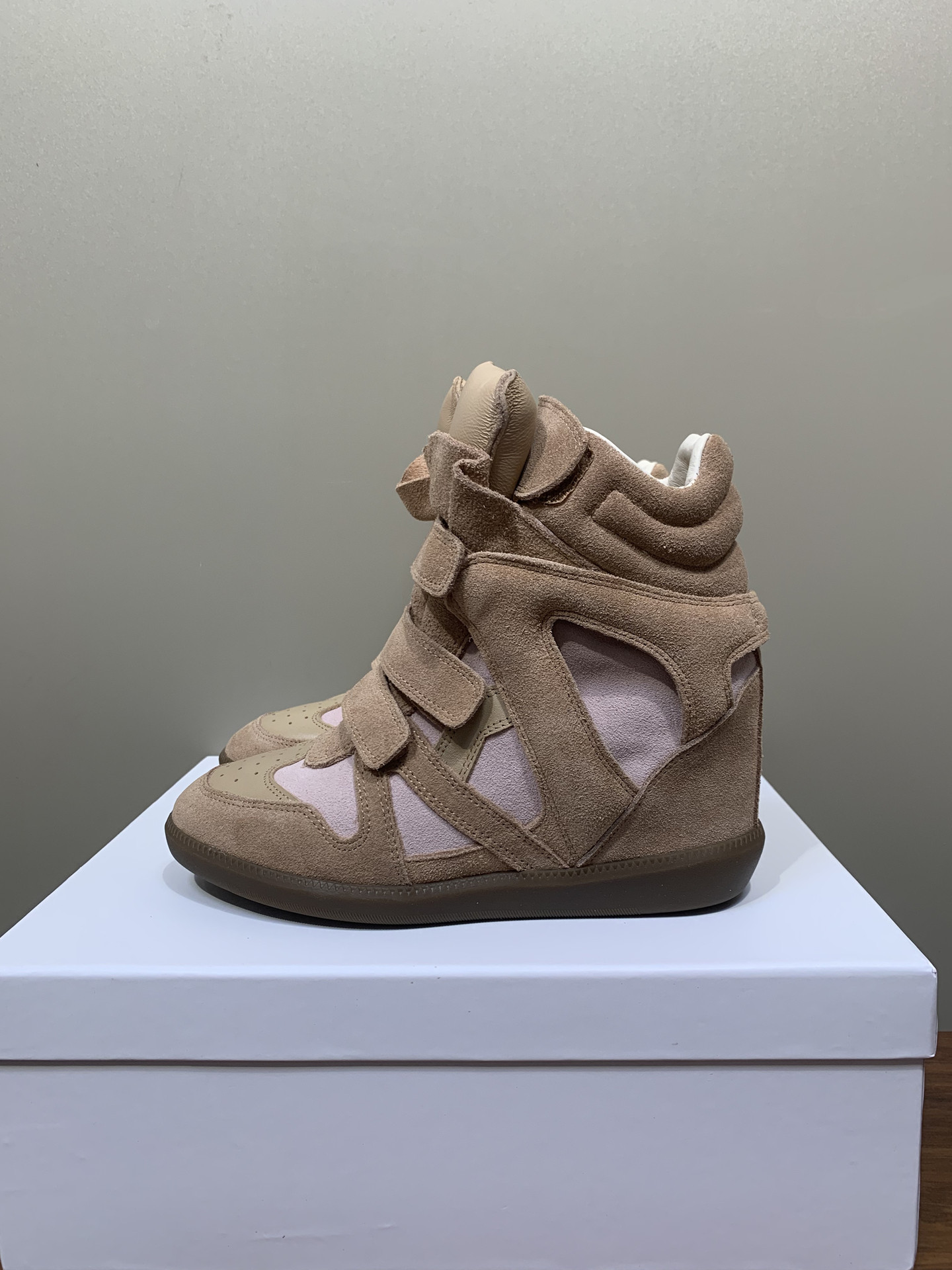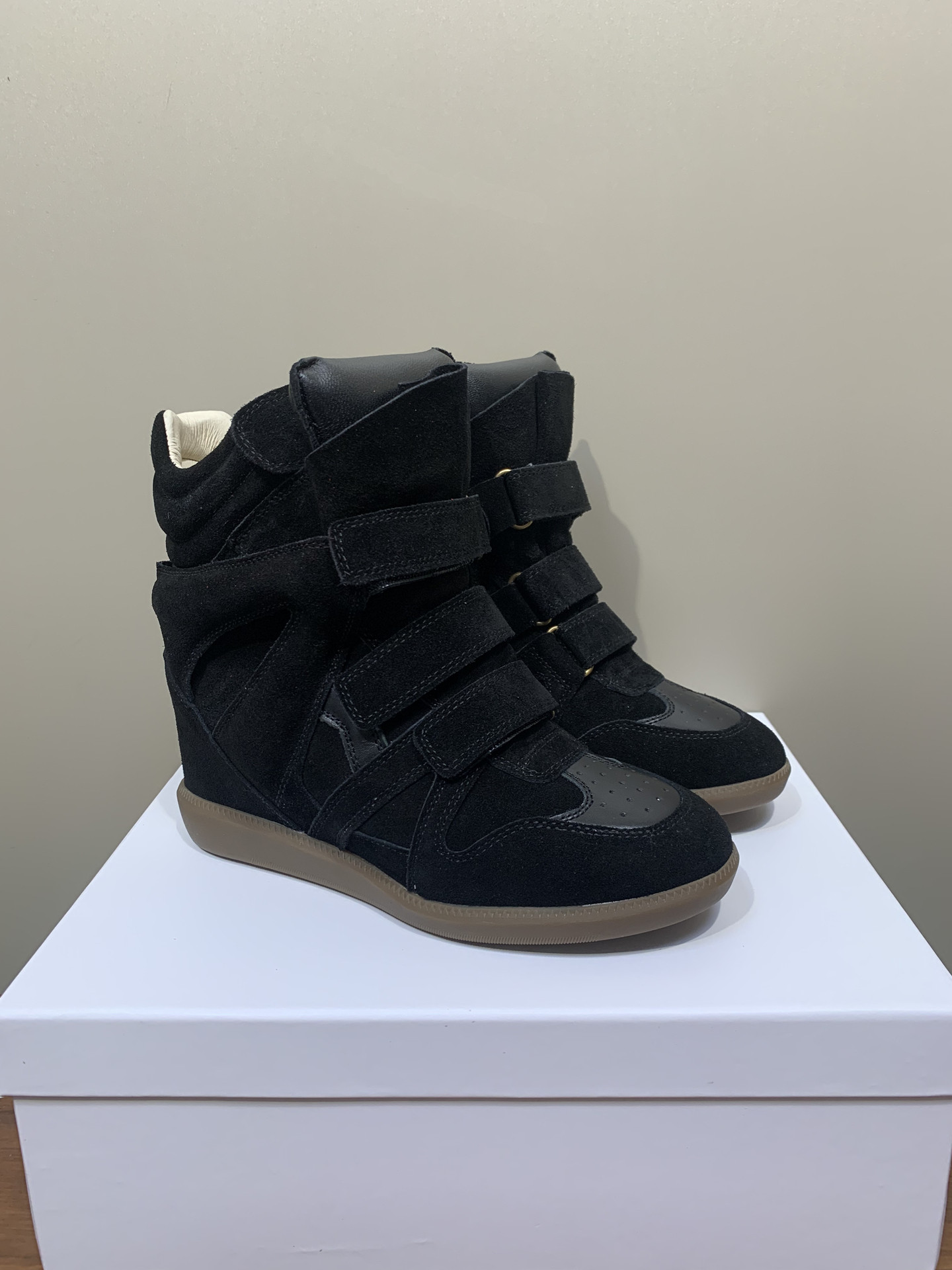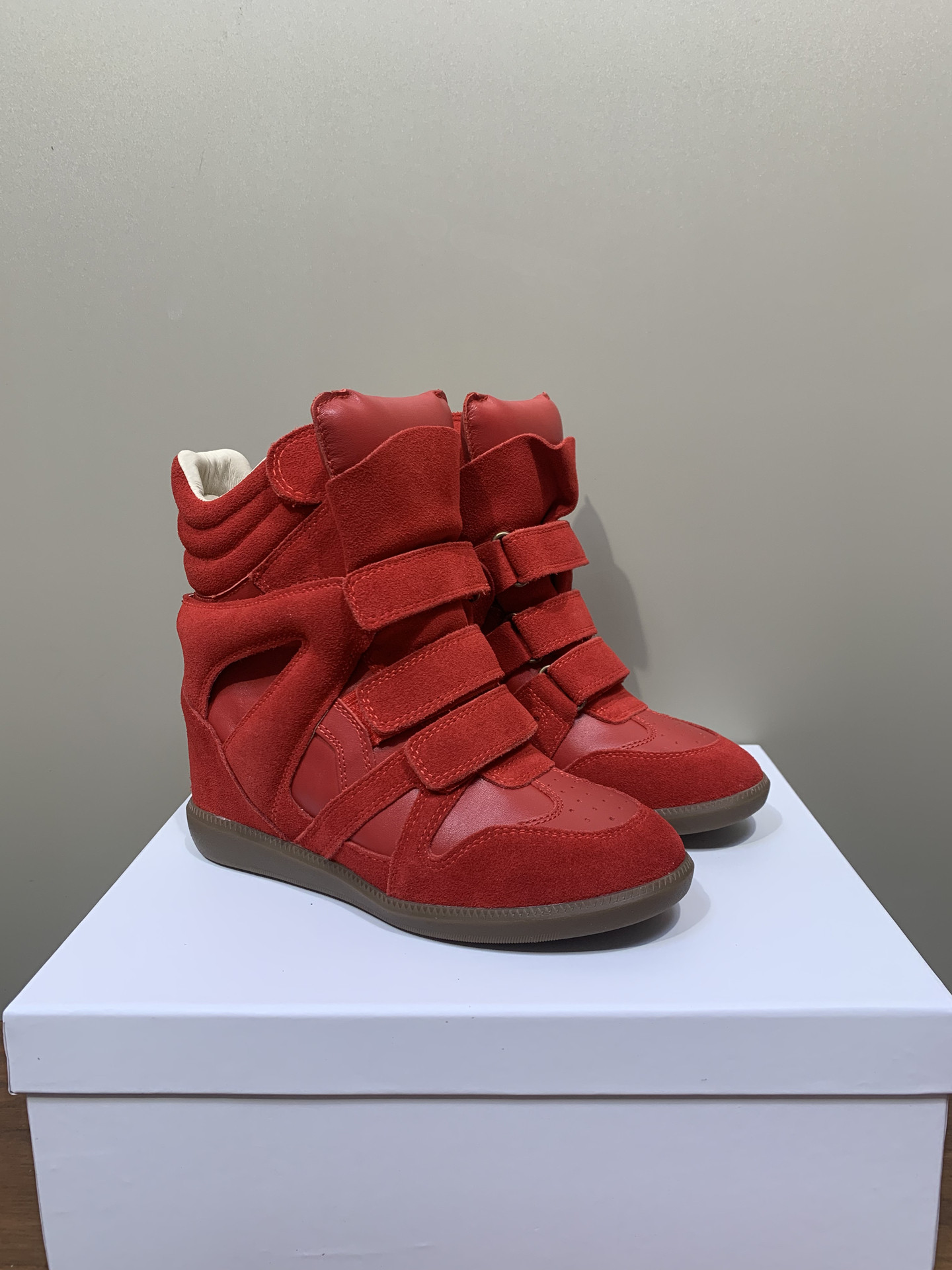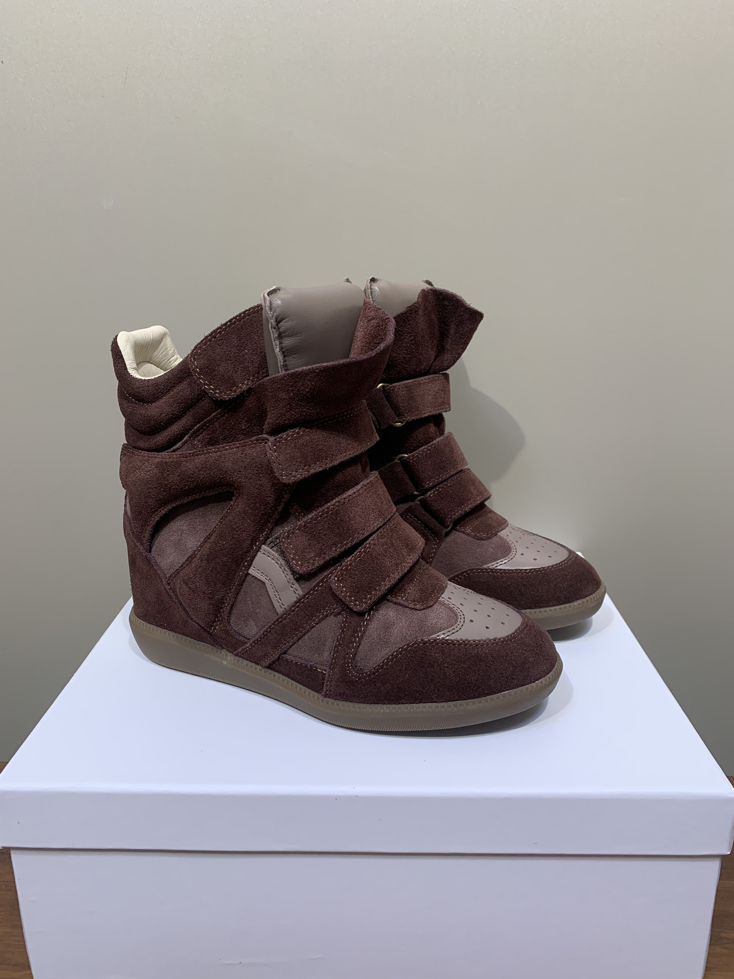 Isa 2025 New Style Hidden Height-Increasing High-Top Women's Shoes, Color-Blocked Casual Velcro Wedge Sneakers for Women