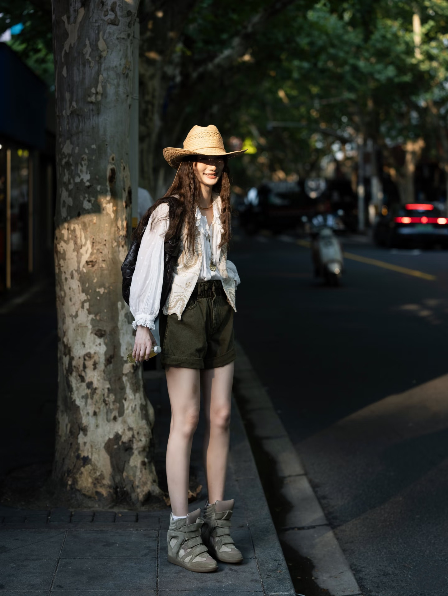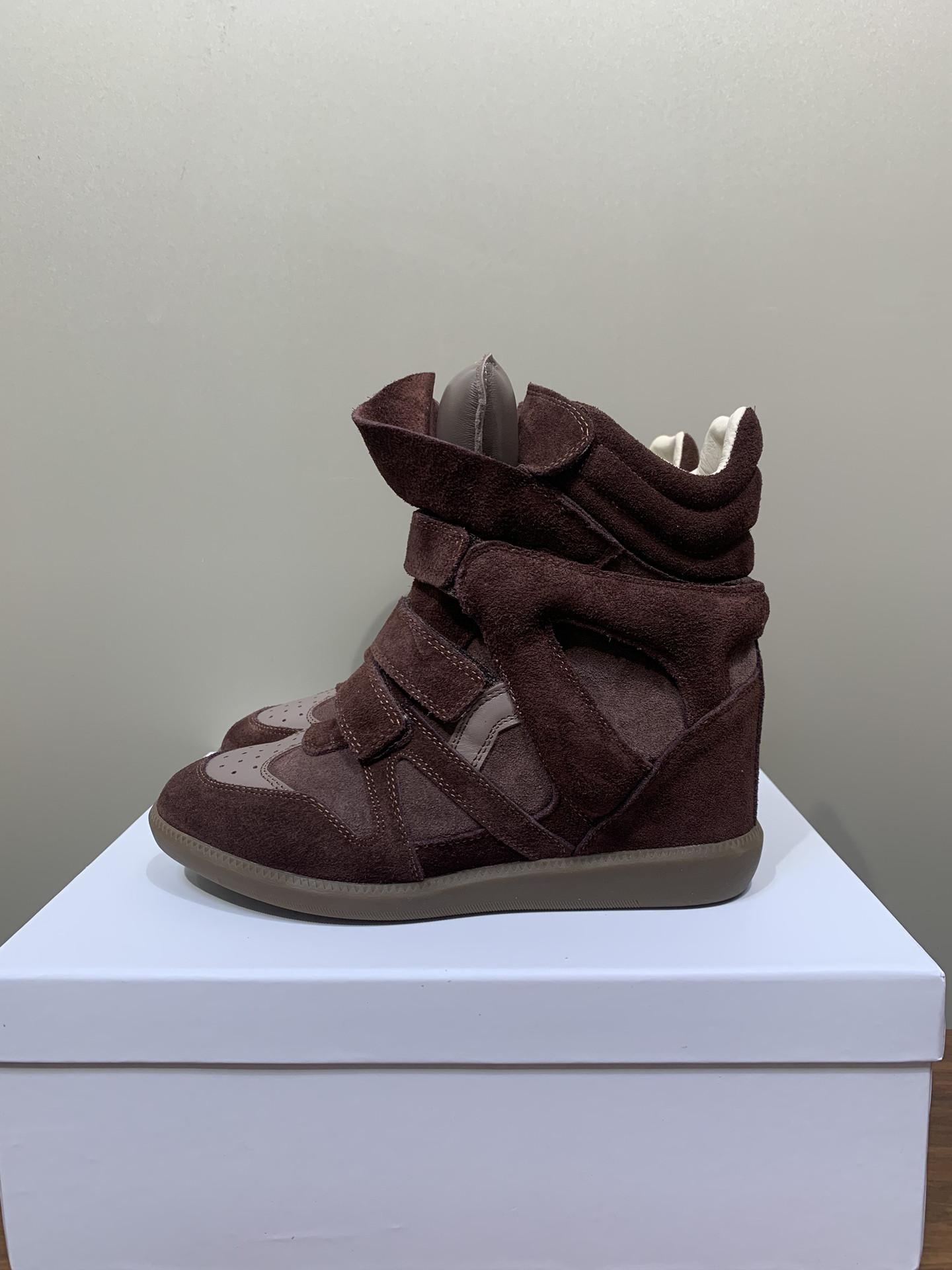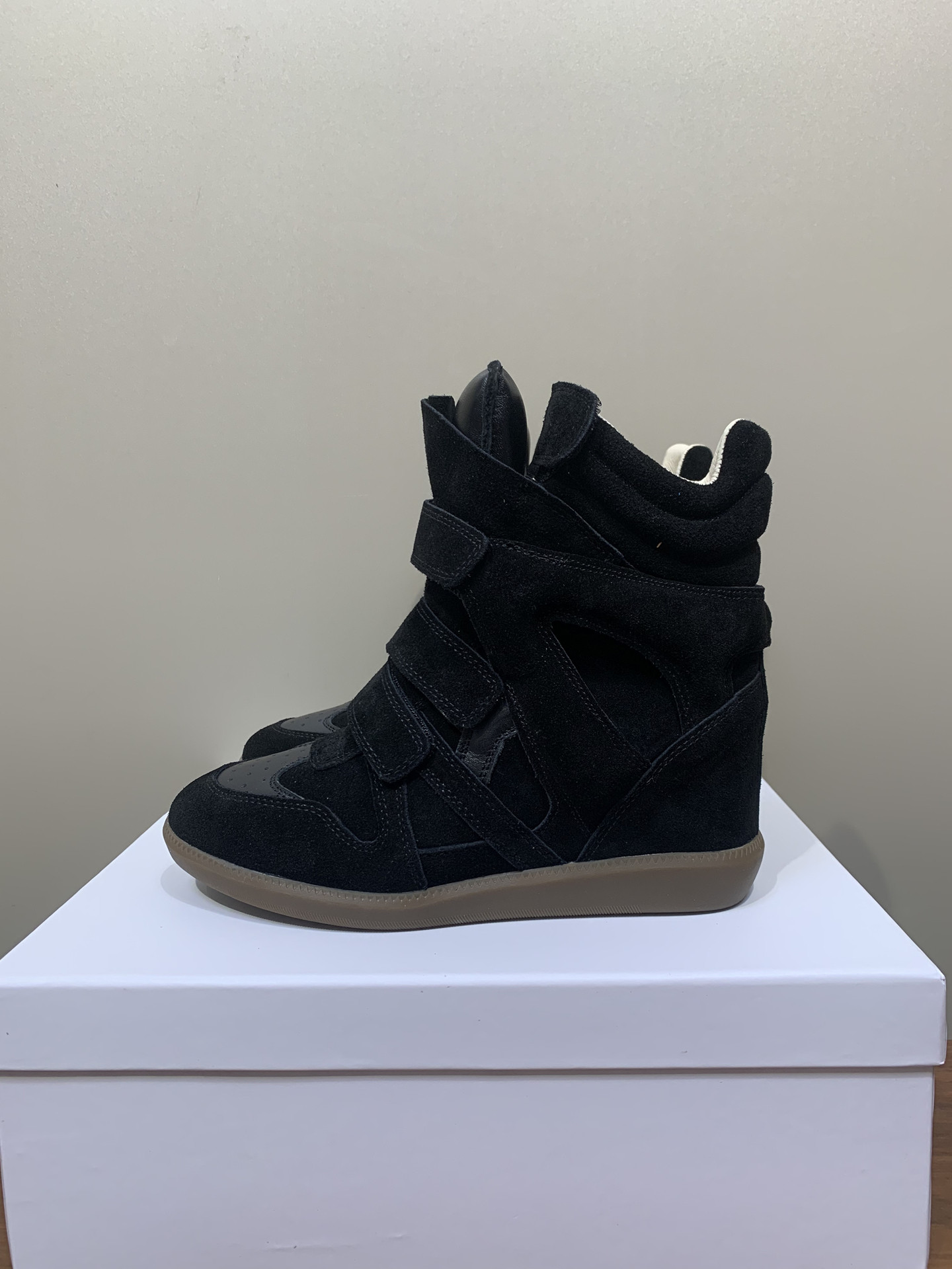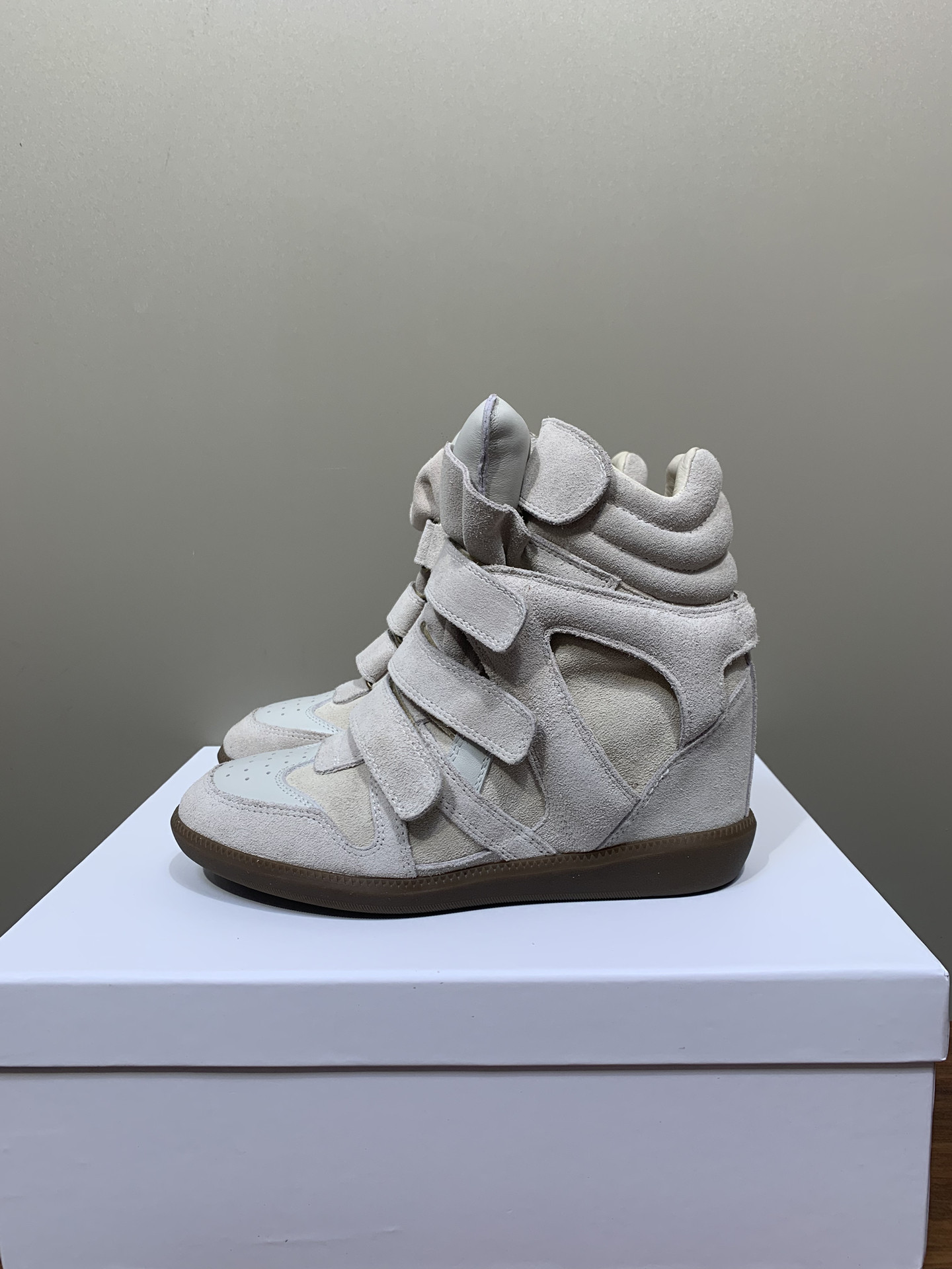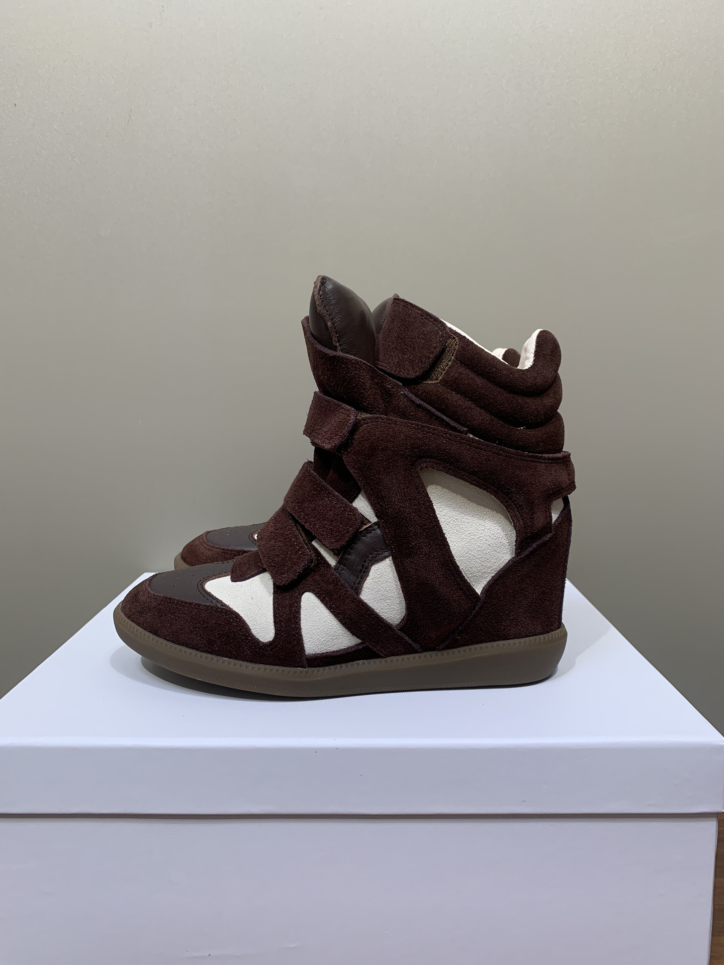 Isa 2025 New Style Hidden Height-Increasing High-Top Women's Shoes, Color-Blocked Casual Velcro Wedge Sneakers for Women