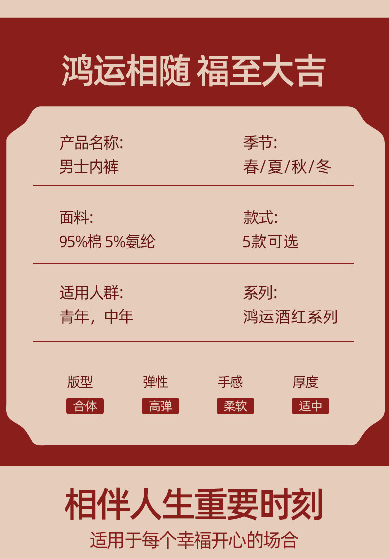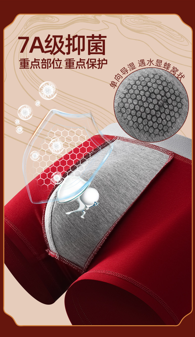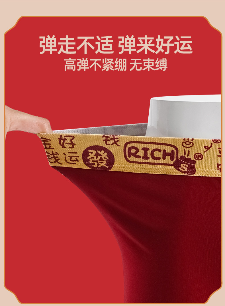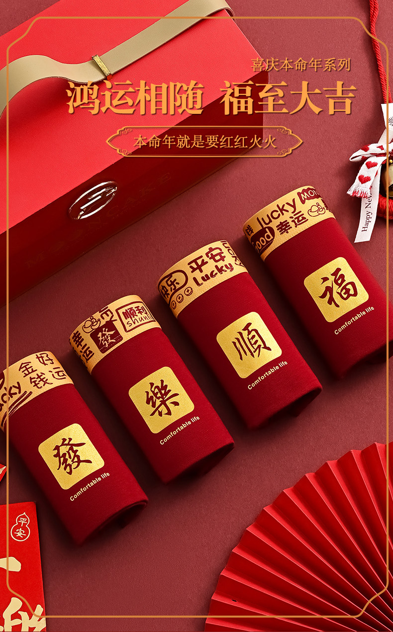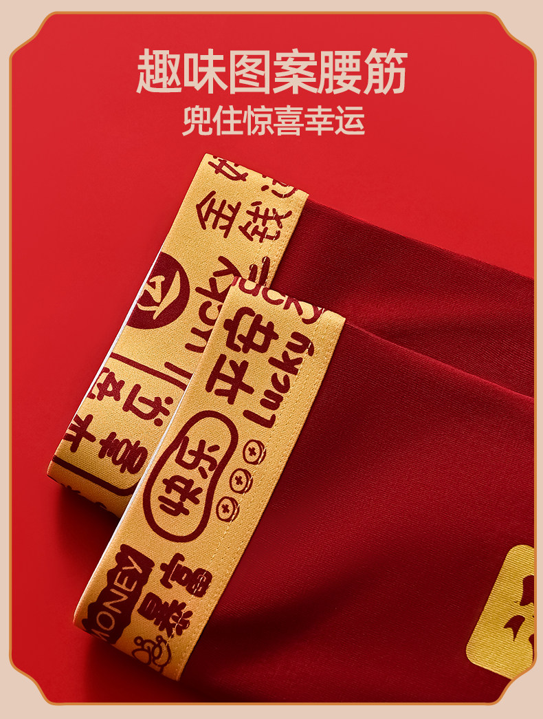 Men's Underwear for the Year of Their Zodiac Sign, Pure Cotton, Red, Festive, Wedding Boxer Briefs, Comfortable, Breathable, Mid-Waist, Men's Boxer Shorts